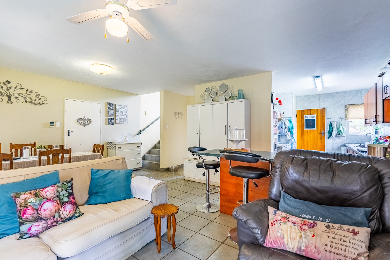 Downstairs, the home features a comfortable lounge that opens onto a covered patio with a built-in braai—ideal for entertaining. The dining area flows seamlessly into the open-plan kitchen, creating a warm and inviting living space for everyday family life.