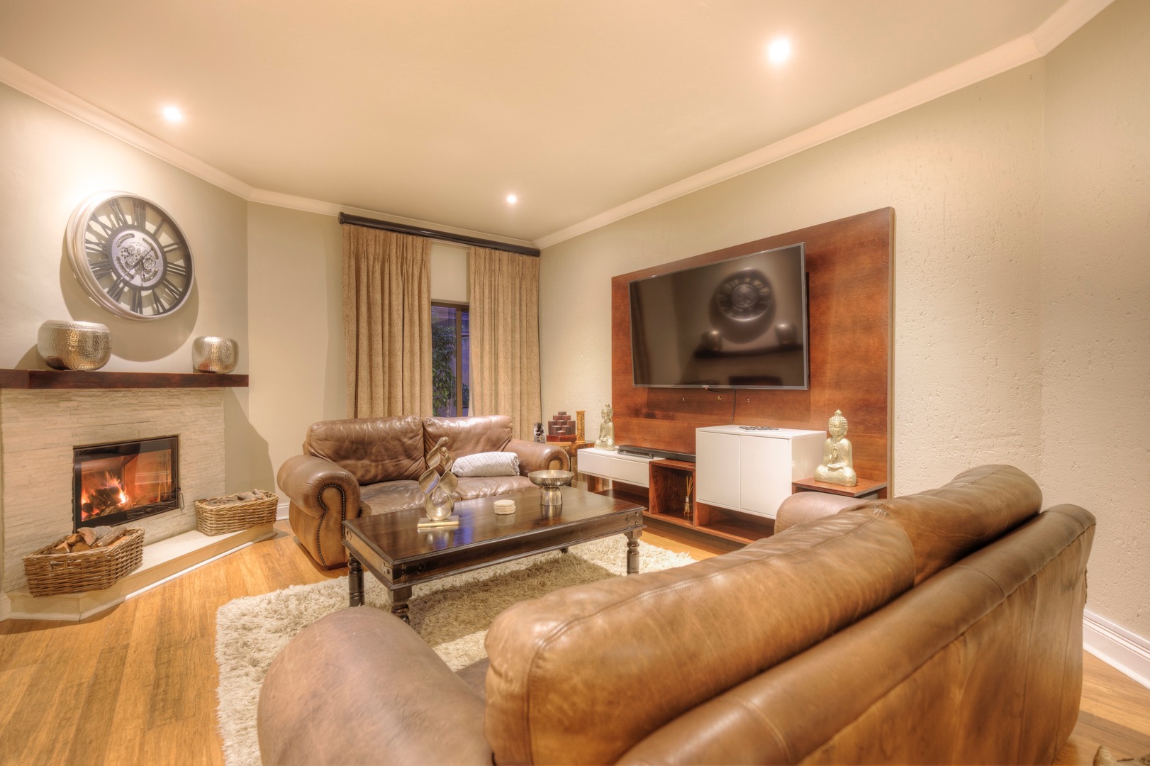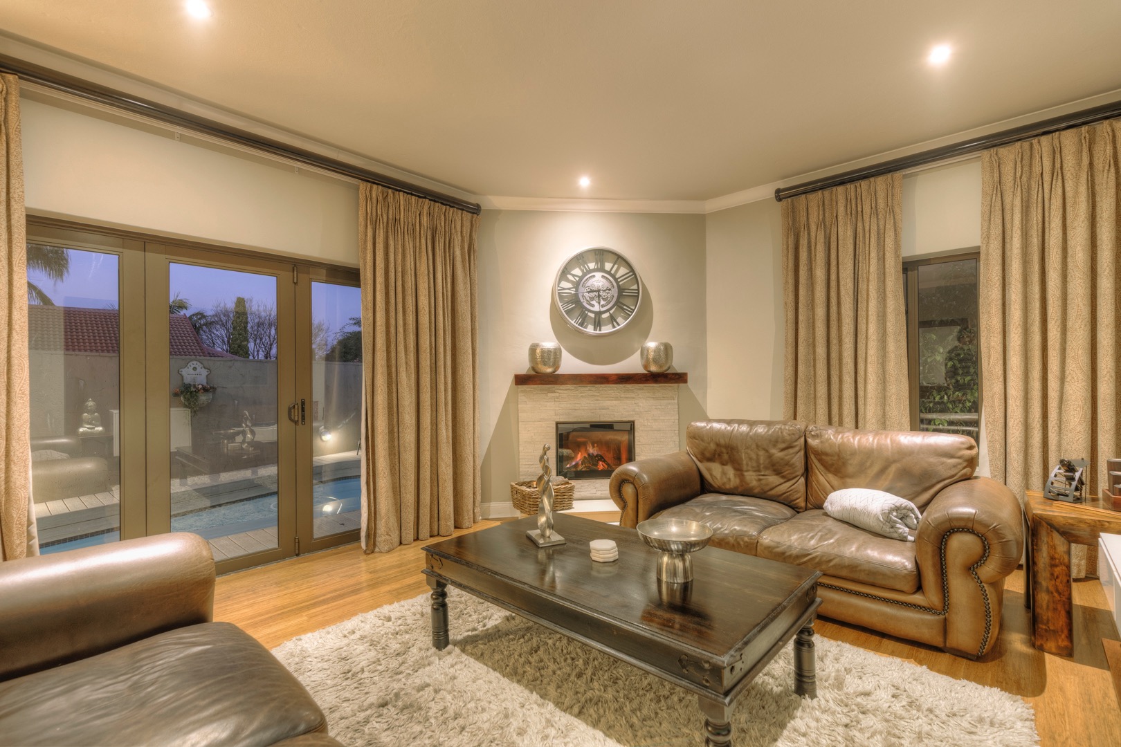 Adjacent to the kitchen, a second informal lounge with a cozy fireplace creates the perfect setting for relaxed evenings or intimate gatherings.