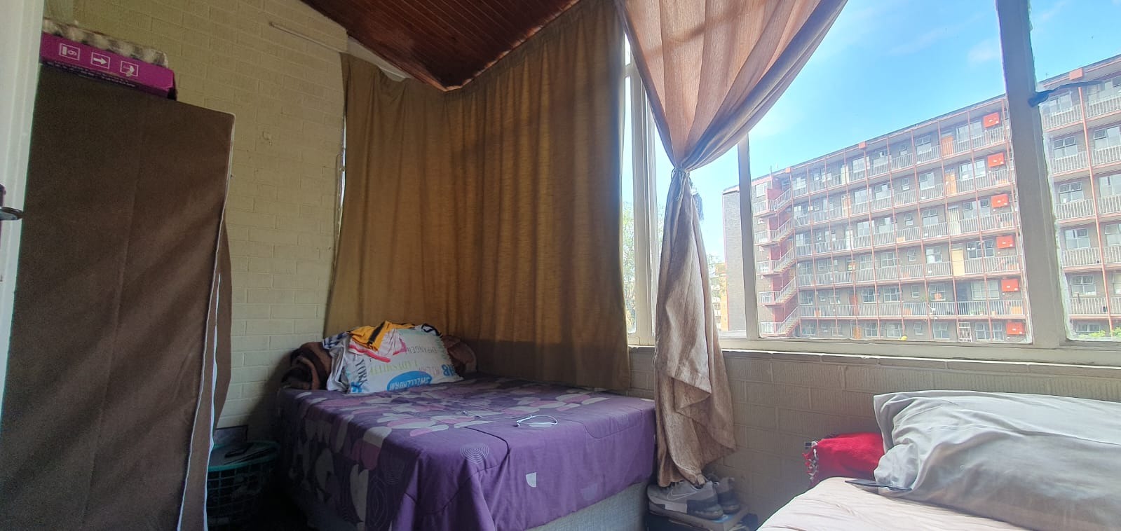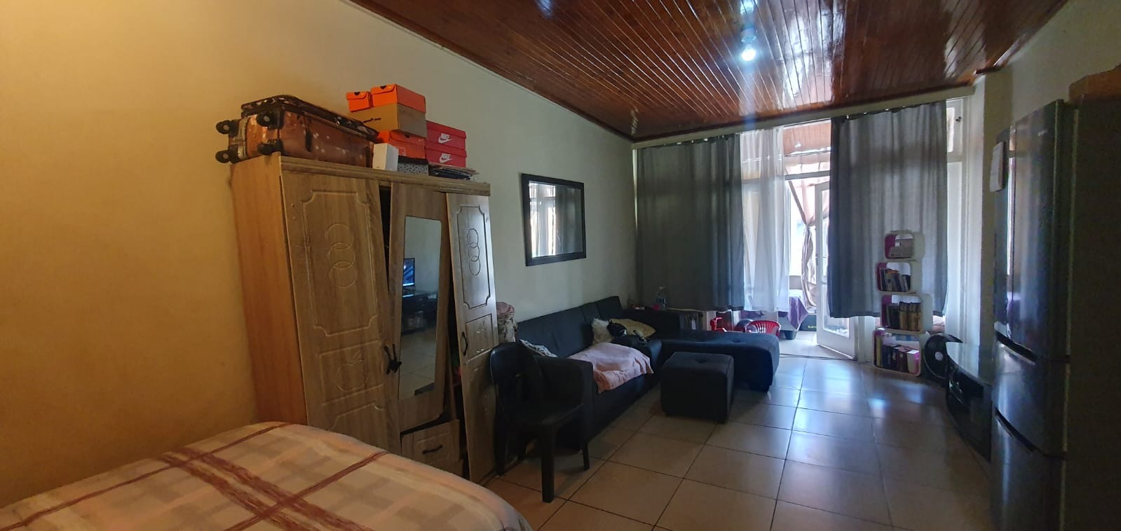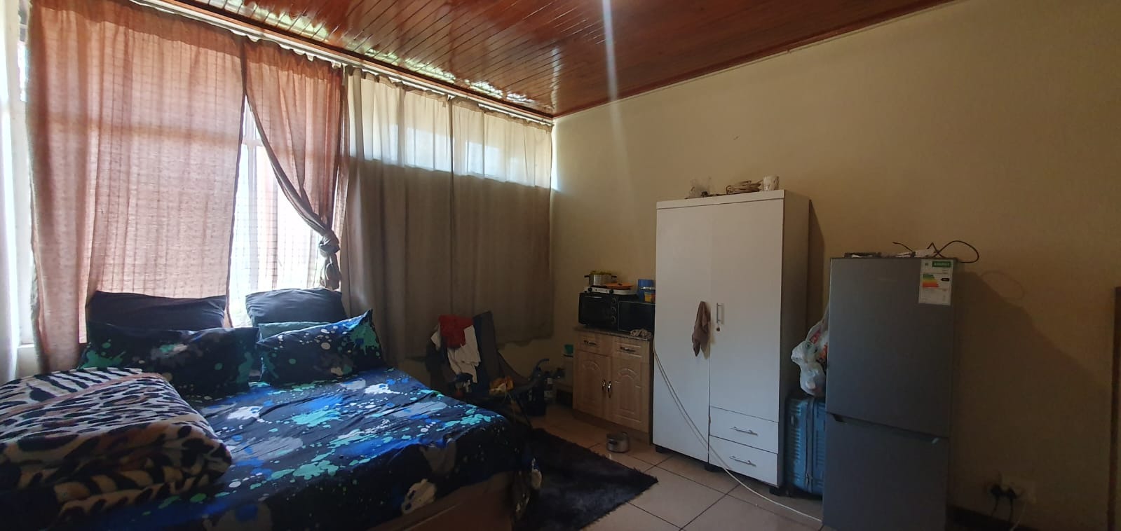 Discover this inviting 63 sqm apartment located in the metropolitan hub of Muckleneuk, Pretoria. This two-story brick building features a durable exterior, complemented by well-maintained grassy lawns and mature trees, creating a pleasant green outlook. Paved walkways and a fenced perimeter enhance security and privacy. Inside, the apartment offers a thoughtfully designed layout with one lounge and a functional kitchen. Living spaces feature durable tiled flooring and distinctive wooden or hardwood panel ceilings, adding character. Large sliding glass doors invite natural light and provide access to an outdoor space, blending indoor and outdoor living. The residence includes one comfortable bedroom and a single bathroom. The bedroom is equipped with built-in cupboards for ample storage, benefiting from natural light through a large window. The functional bathroom features a bathtub, wash basin, toilet, a high window for ventilation, and convenient built-in wall storage. Residents will appreciate the covered outdoor walkway, offering shelter and a connection to the serene surroundings. Security is enhanced by an access gate and the property's fenced perimeter. For modern living, the apartment is fibre-ready, ensuring high-speed internet. A dedicated parking bay is also provided for convenience. Situated in this vibrant metropolitan area of Pretoria, South Africa, the property offers easy access to urban amenities and transport links. Key Features: * 1 Bedroom, 1 Bathroom * 63 sqm Floor Size * 1 Lounge, 1 Kitchen * Tiled Flooring & Wooden Ceilings * Built-in Cupboards * Covered Outdoor Walkway * Fenced Perimeter & Access Gate * Fibre Ready * 1 Parking Bay * Scenic View