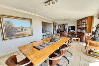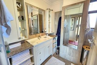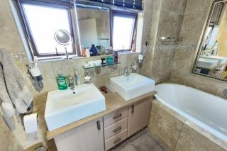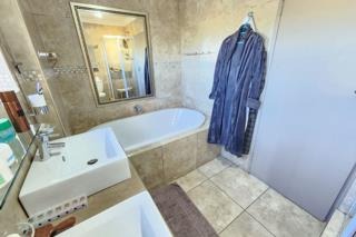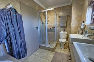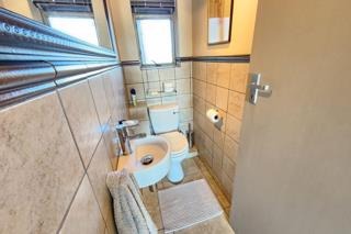 Accommodation comprises three serene bedrooms, including a luxurious en-suite master, complemented by an additional full bathroom and a convenient guest toilet, ensuring privacy and comfort for all residents. Outside, a charming all round patio and a built-in braai area invite alfresco enjoyment, with access to a communal braai area for larger social events. Practical amenities include two garages and two additional parking spaces, ensuring ample provision for vehicles.