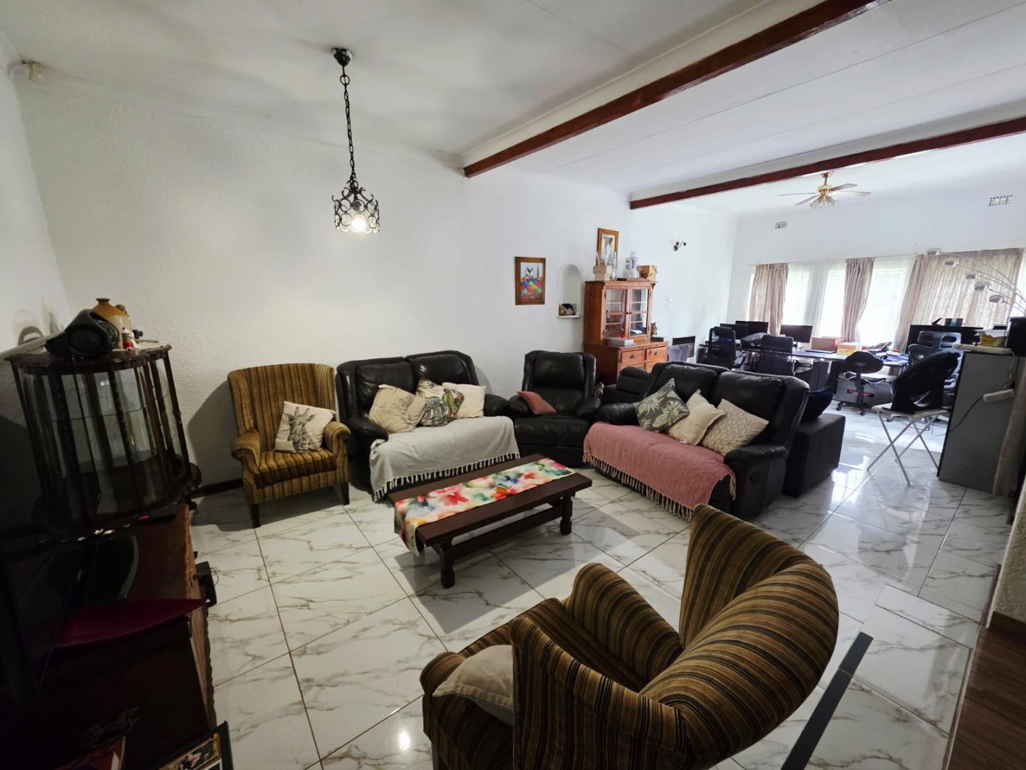 Discover this inviting family home situated within a secure gated community in the desirable suburban area of Murrayfield, Pretoria. This property offers a comfortable and practical living environment, ideal for families seeking space and convenience in South Africa. The interior of the home features three well-proportioned bedrooms and two bathrooms, providing ample accommodation. The layout includes a dedicated lounge and a separate dining room, offering distinct areas for relaxation and entertaining. A functional kitchen caters to daily needs, while the inclusion of a study provides a versatile space perfect for a home office or quiet retreat. Set on a generous 1745 sqm erf, the outdoor area is designed for enjoyment and utility. A private swimming pool offers a refreshing escape, complemented by a well-maintained garden. The property boasts three garages, ensuring secure parking and additional storage. Practical amenities include staff quarters and paved areas, enhancing the overall functionality of the home. Pets are permitted, making it suitable for animal lovers. Security is a key feature, with the property located within a gated community and equipped with a security gate, providing peace of mind for residents. Murrayfield is a well-established suburb known for its family-friendly atmosphere and convenient access to local amenities, schools, and major routes in Pretoria. Key Features: * 3 Bedrooms, 2 Bathrooms * 1 Lounge, 1 Dining Room * Dedicated Study * Private Swimming Pool * Expansive Garden * 3 Garages * Staff Quarters * Gated Community with Security Gate
