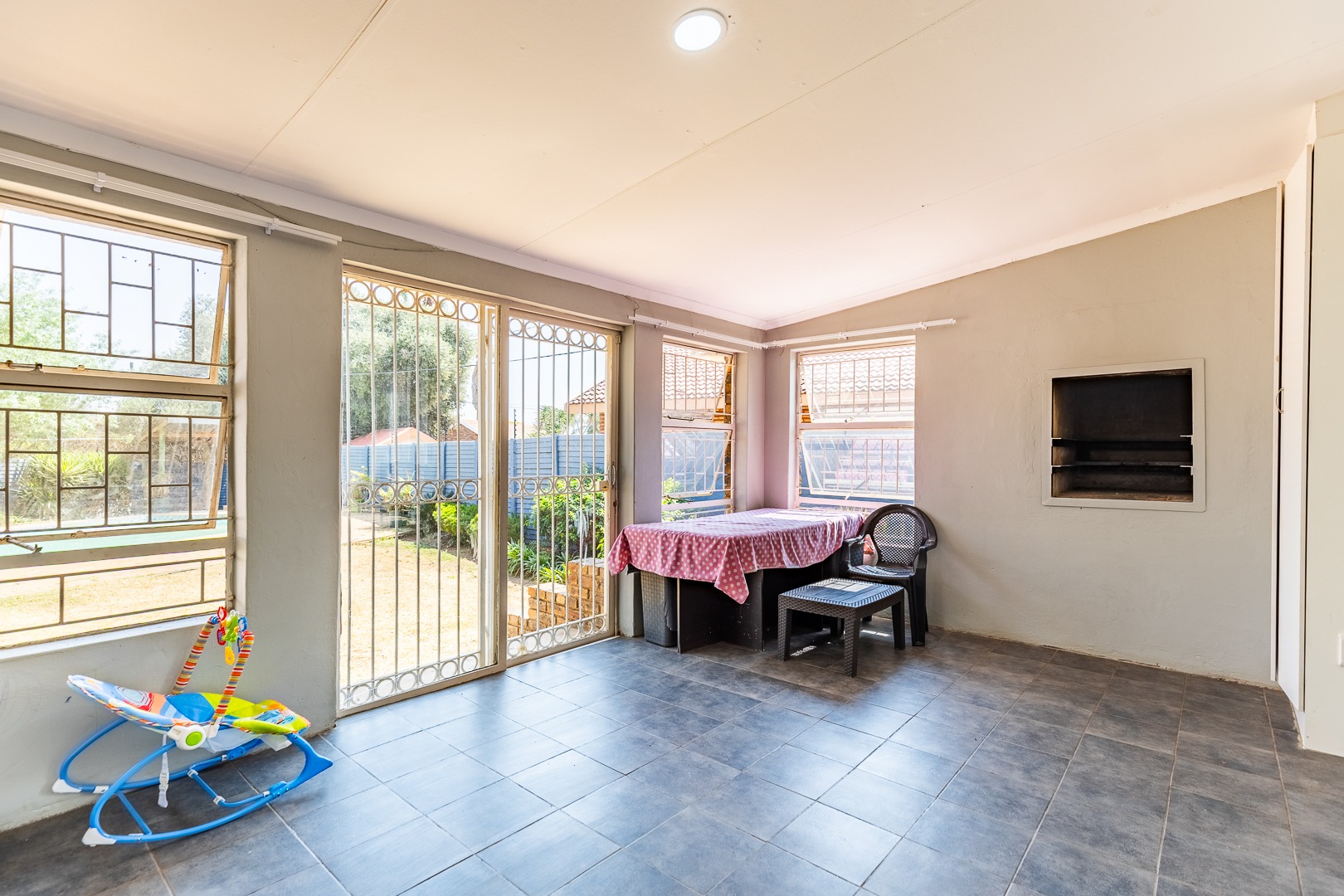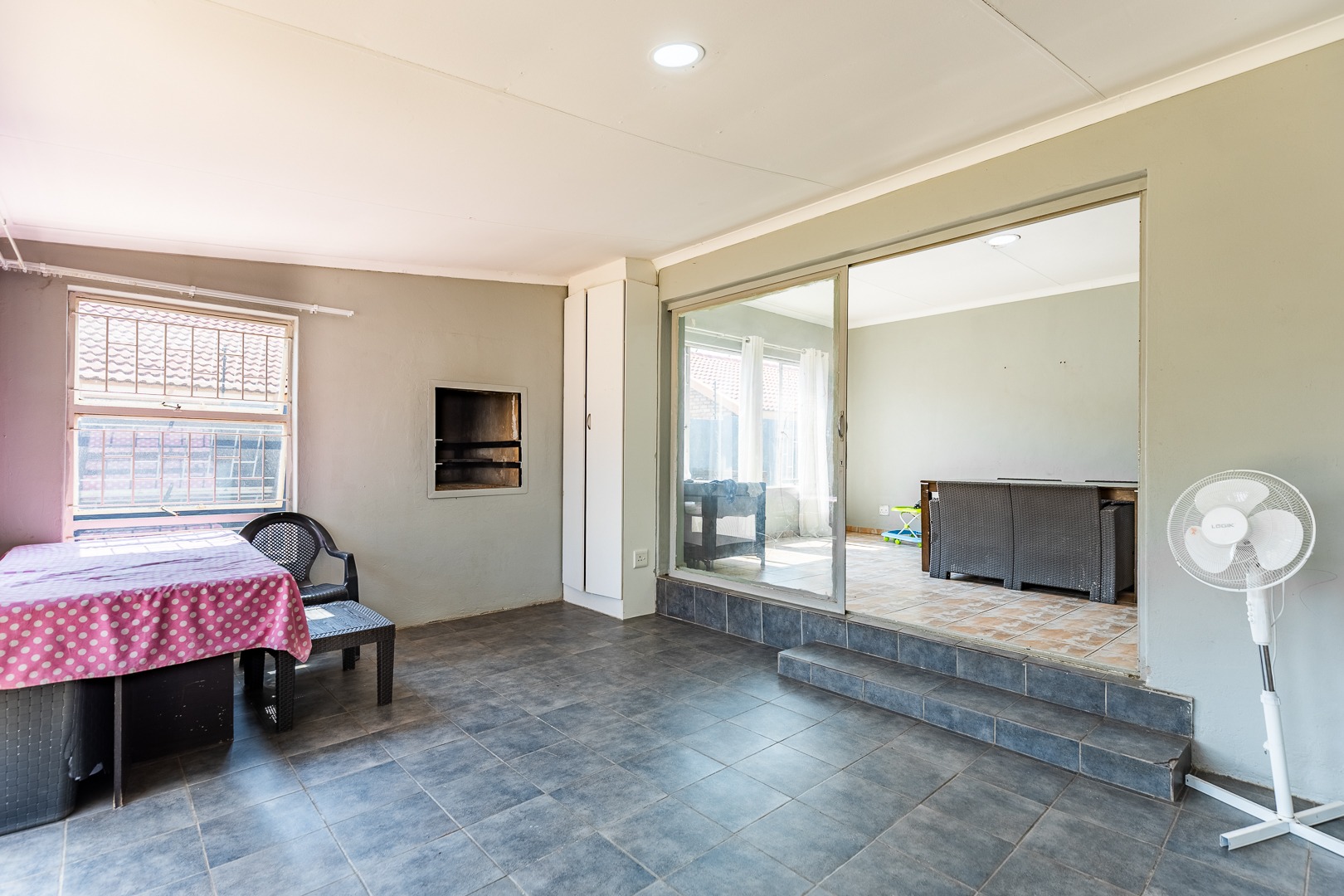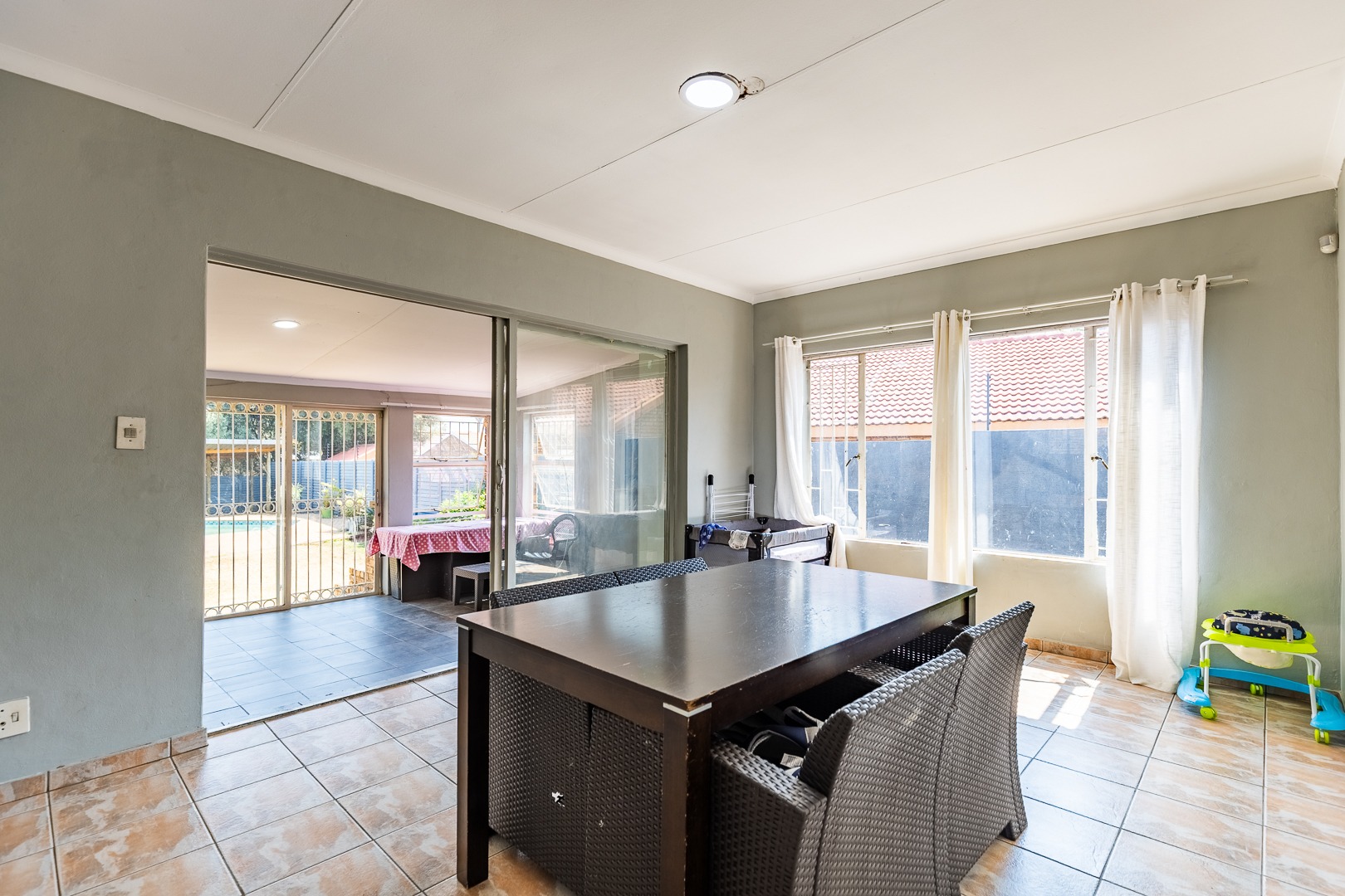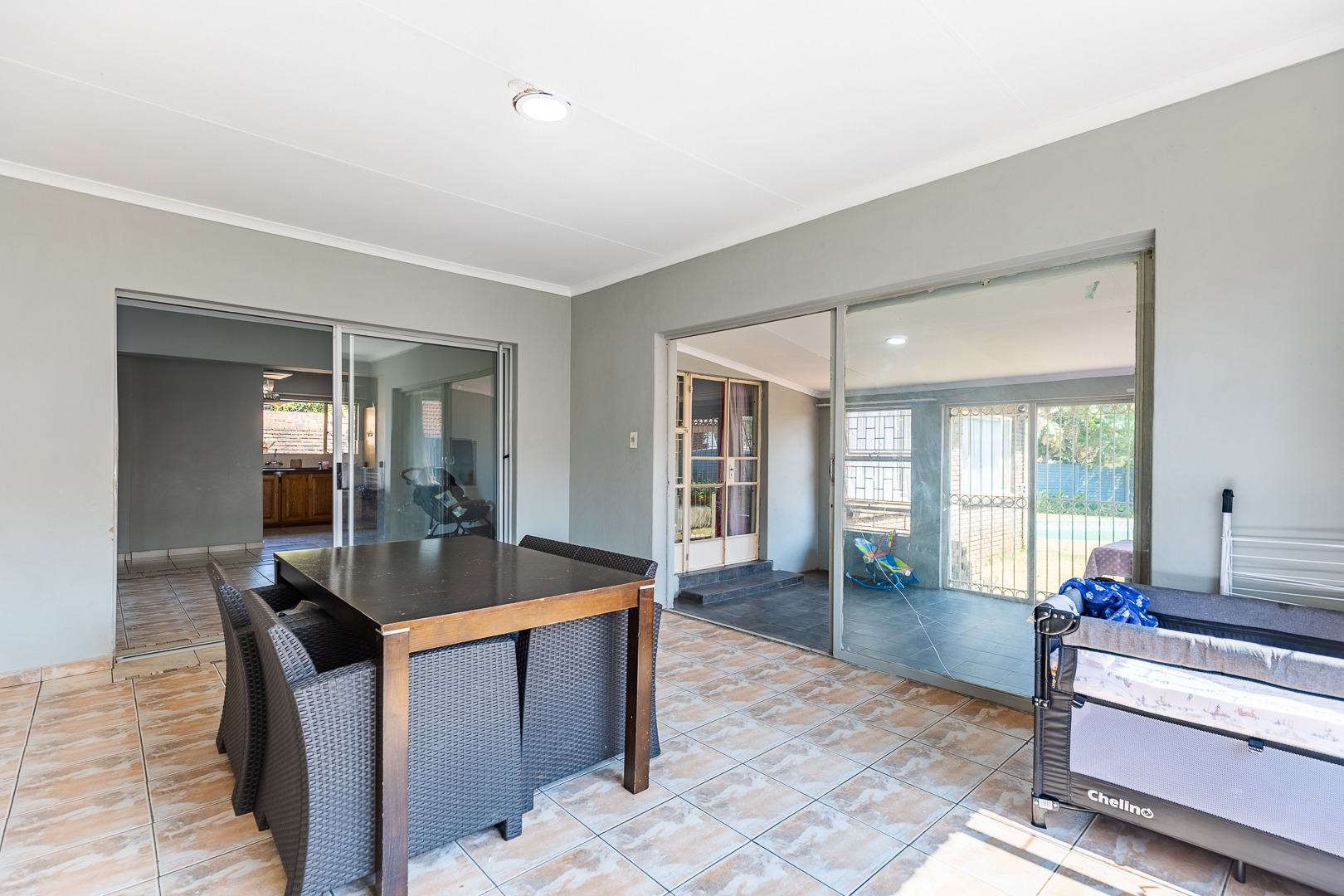 - Second dining area flowing into an enclosed entertainment room with built-in braai and views of the pool.