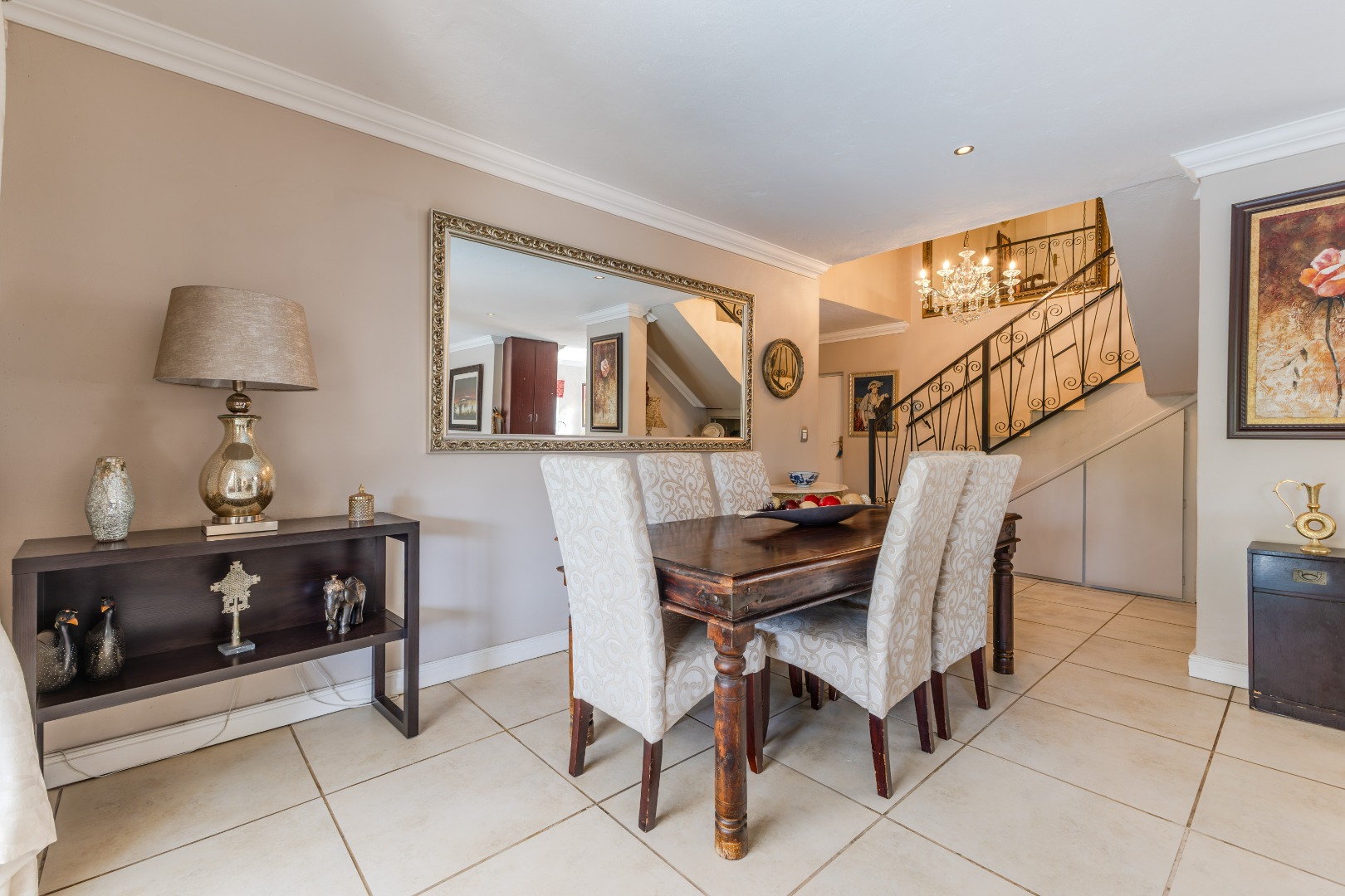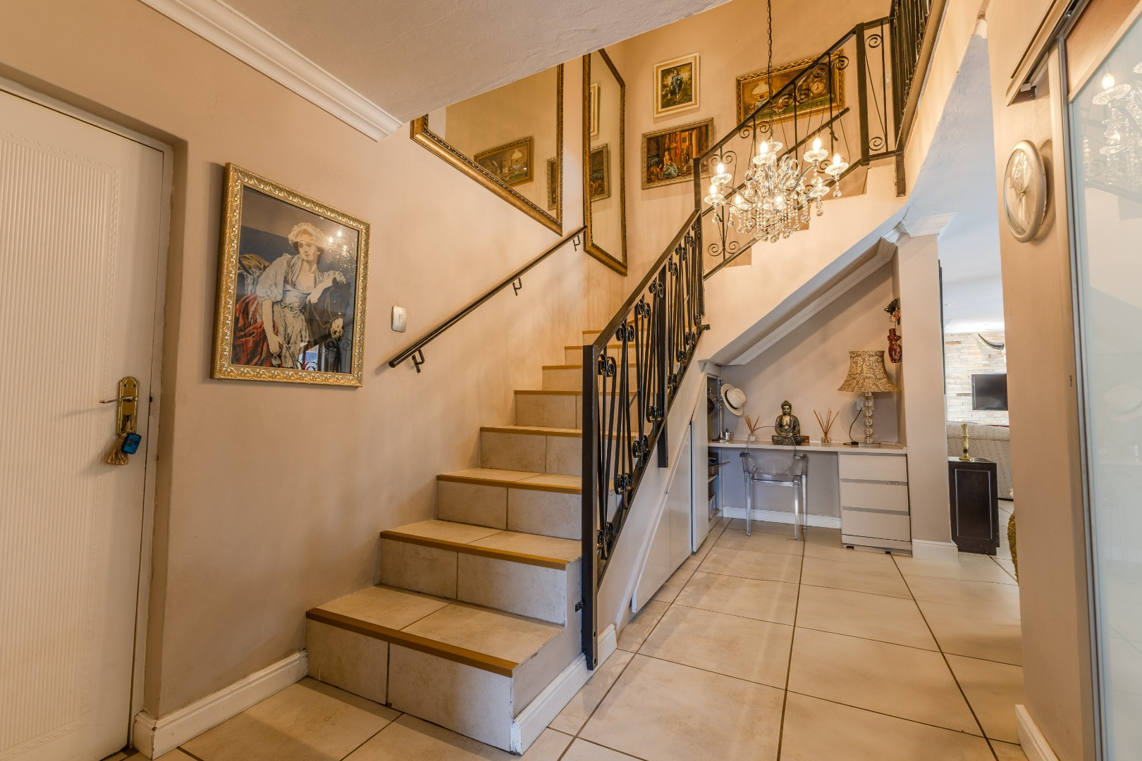 Step into sophistication with this beautifully crafted 326 m² residence, nestled in the prestigious Newmark Estate. A dramatic double-volume entrance, complete with a sweeping staircase and statement chandelier, sets the tone for a home that blends grandeur with comfort. Designed with modern family living in mind, the layout offers three spacious bedrooms upstairs, a versatile study, and generous open-plan living areas that flow seamlessly from one space to the next.