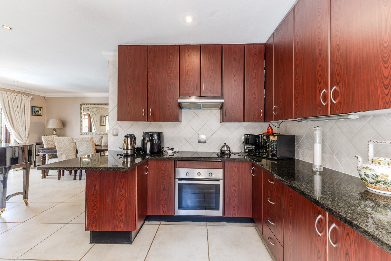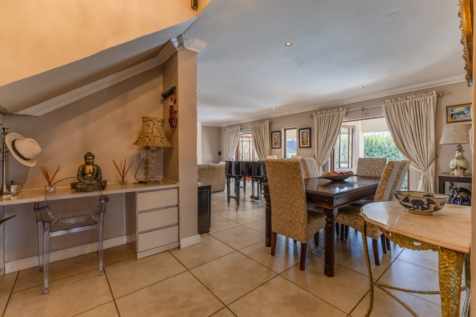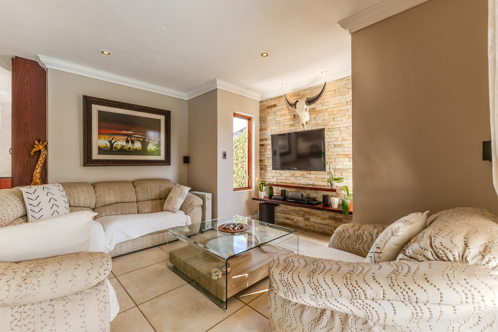 A standout feature is the detached outside building, complete with its own en-suite bedroom and a sizeable storeroom, offering endless potential – ideal as a flatlet, office, or creative studio. With three garages, ample driveway space, a solar power system, and refined finishes throughout, this home is as practical as it is impressive. Stylish, flexible, and packed with lifestyle perks – this is where your next chapter begins.