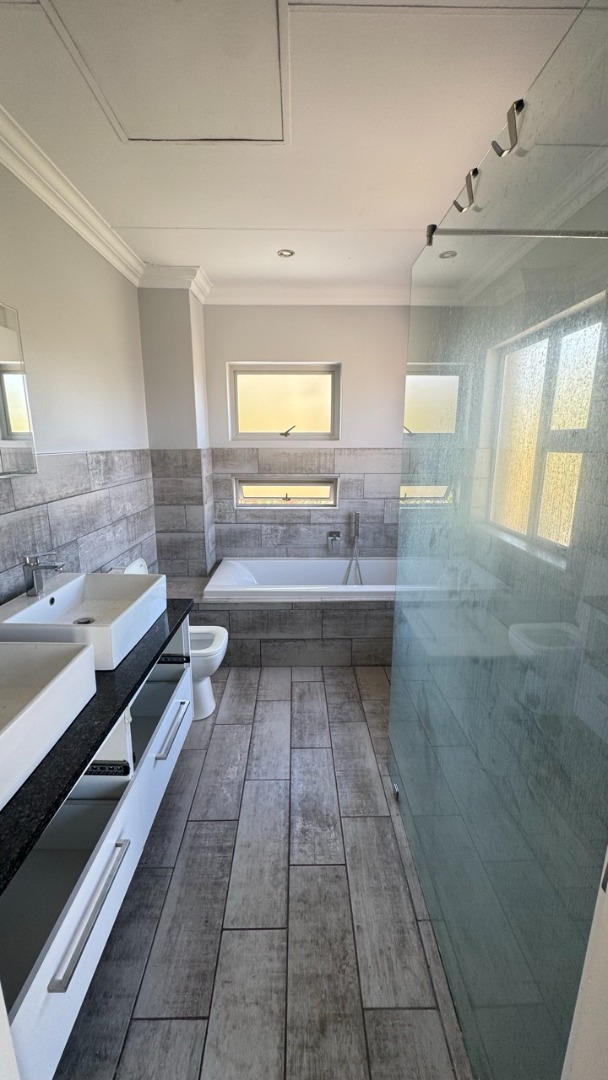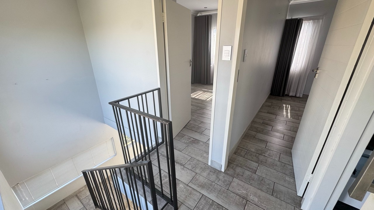 Externally, the property boasts a private garden, a patio, and a balcony, offering various options for outdoor relaxation and entertaining. A refreshing swimming pool provides a perfect escape during warmer months. The 200 sqm erf includes a garage and additional parking, along with paving and a driveway for ease of access. This pet-friendly estate ensures a harmonious living experience for all residents.