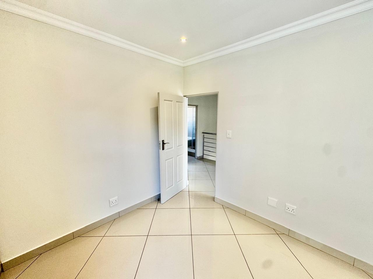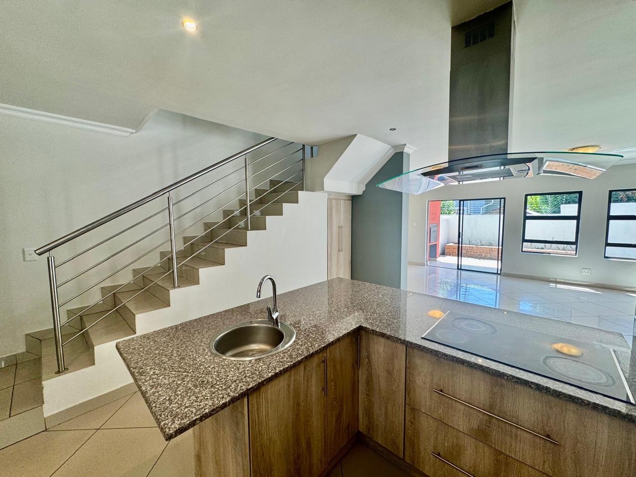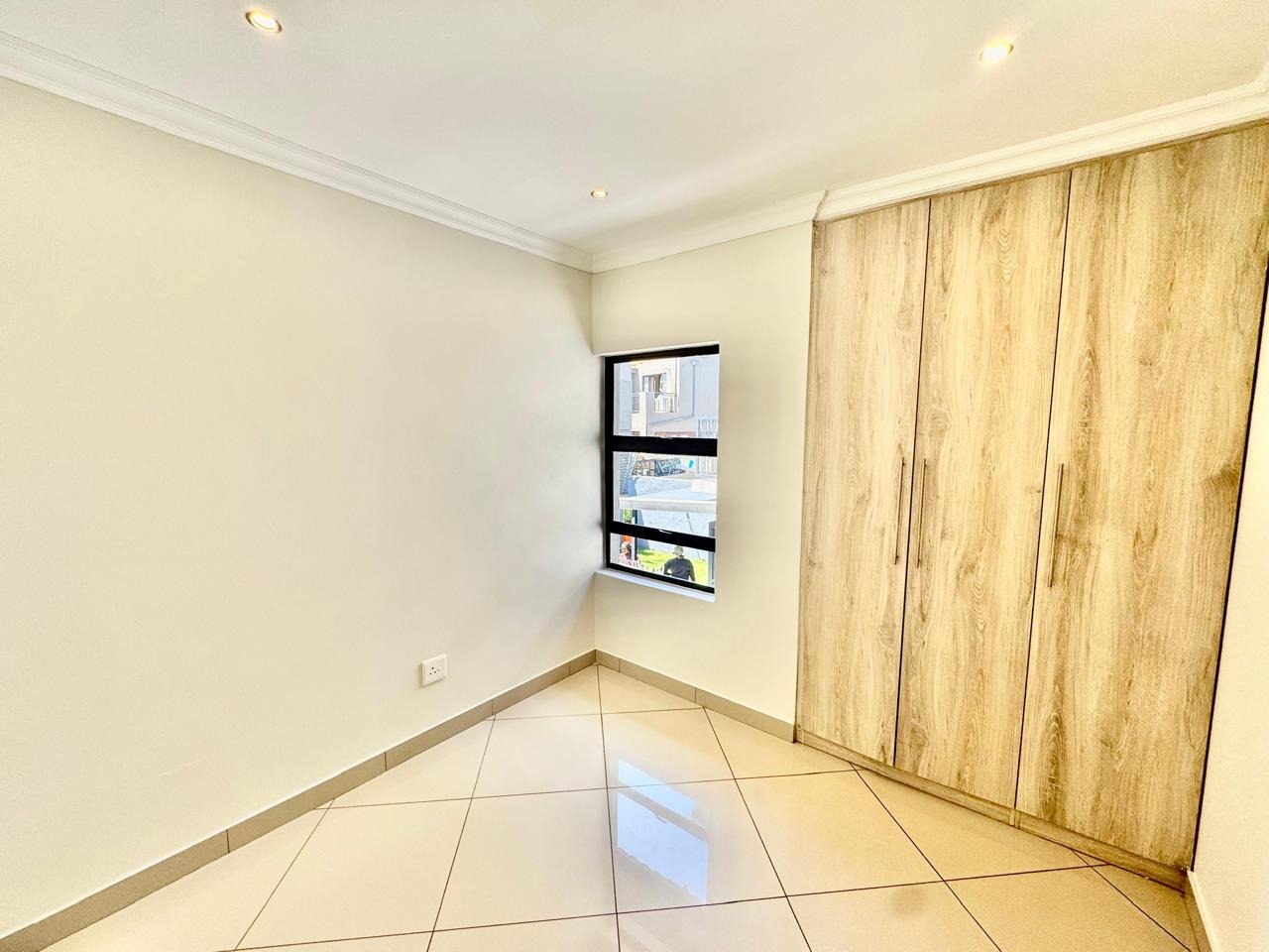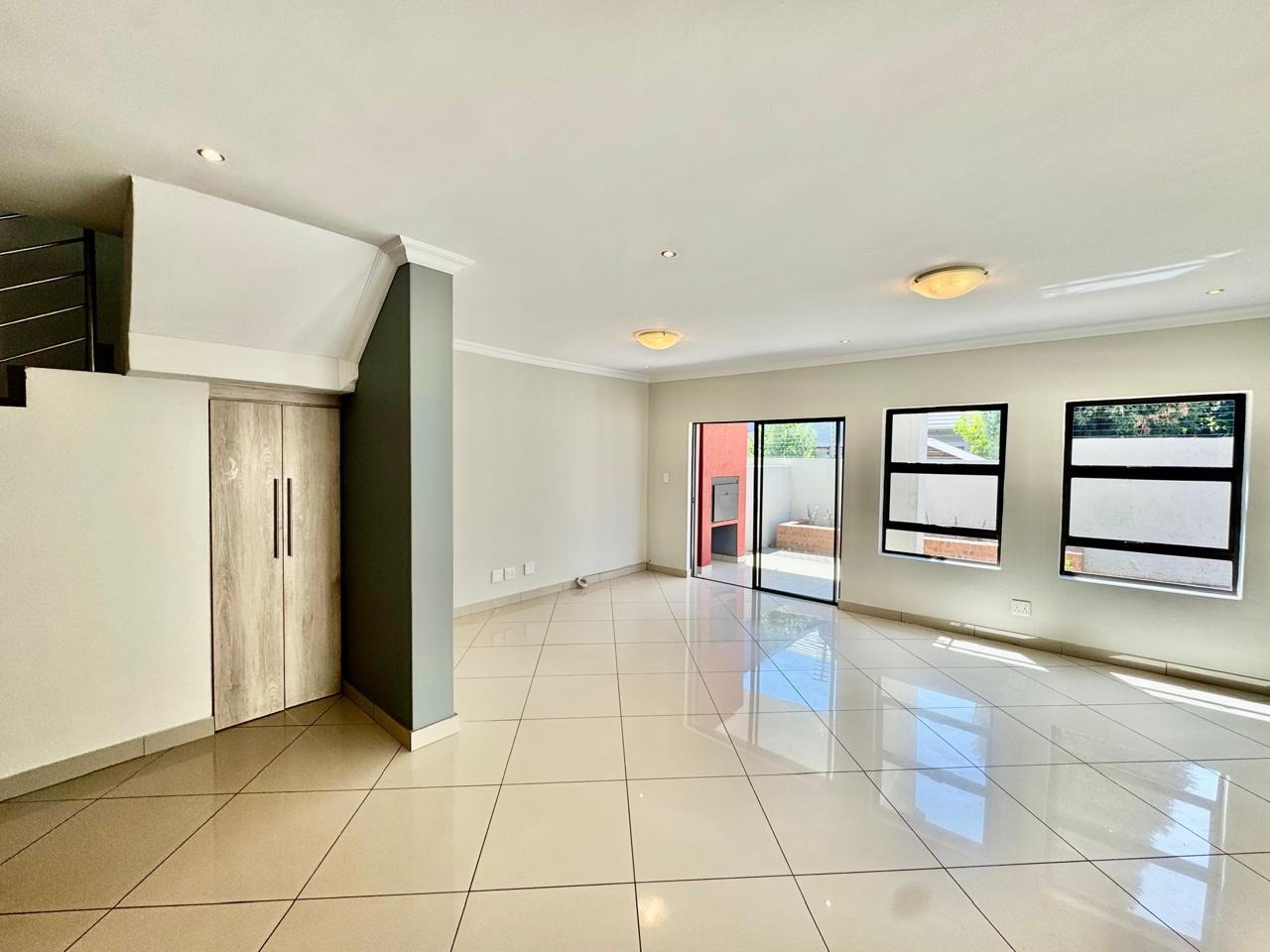 A convenient sliding door leads to a patio with a built in braai and a private, low maintenance garden.