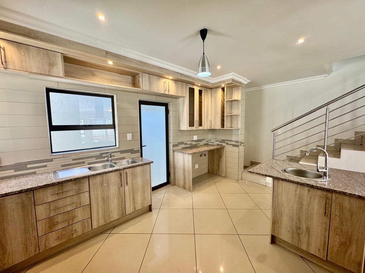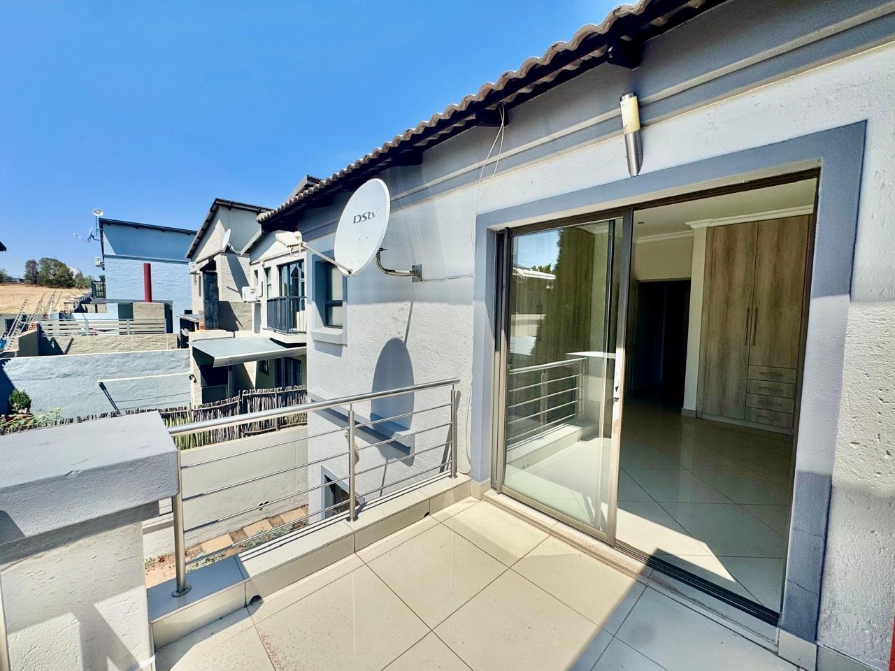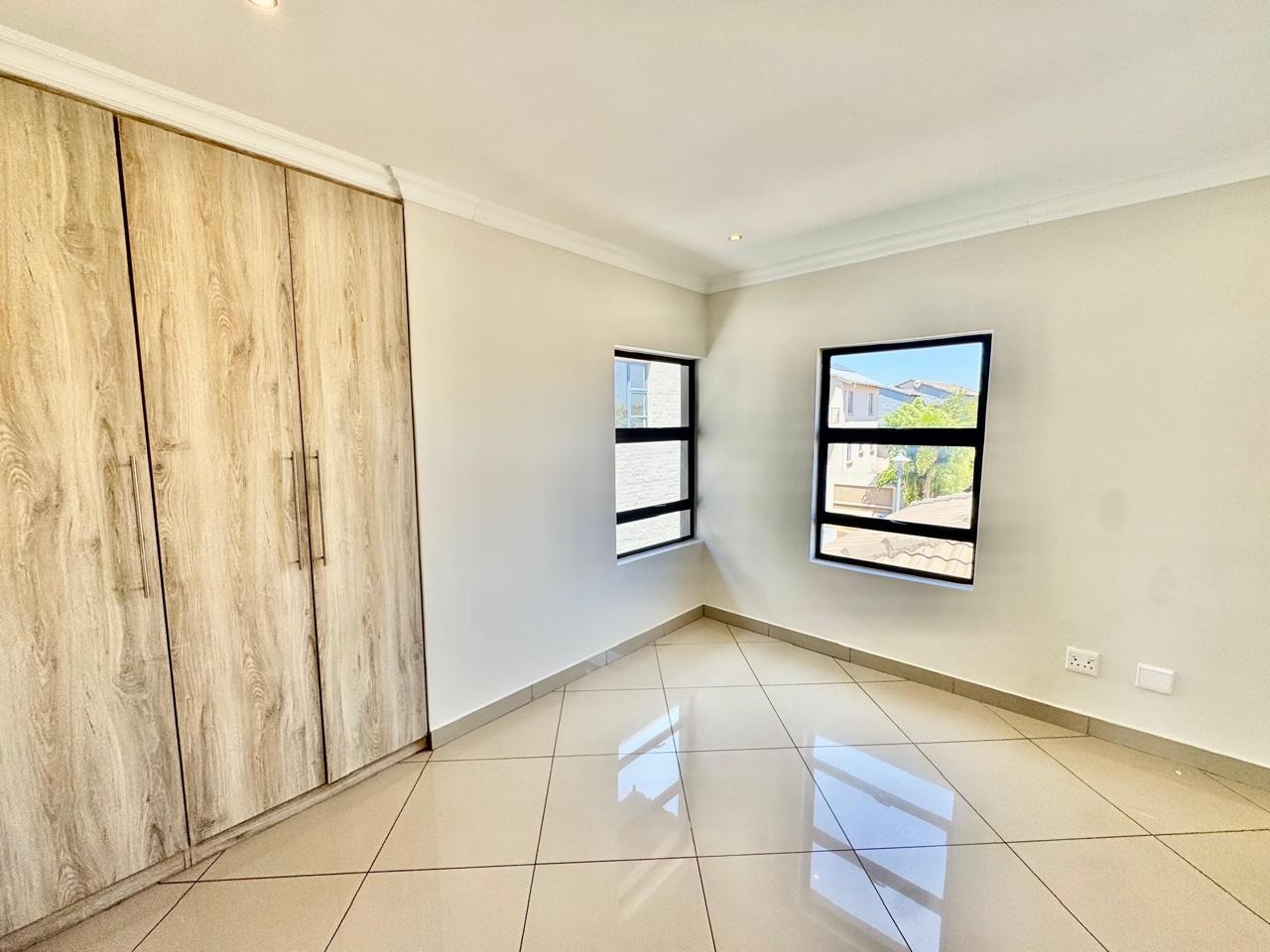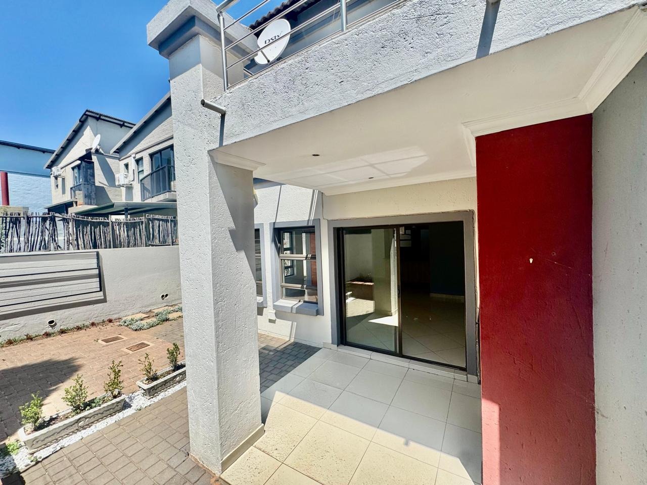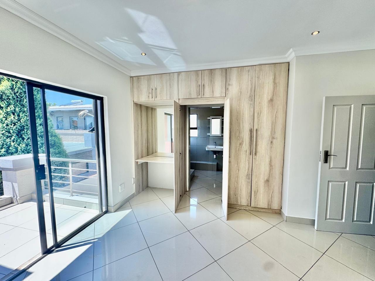A convenient sliding door leads to a patio with a built in braai and a private, low maintenance garden.