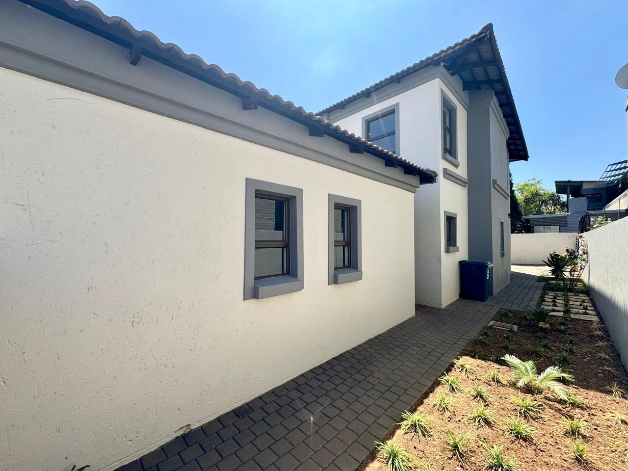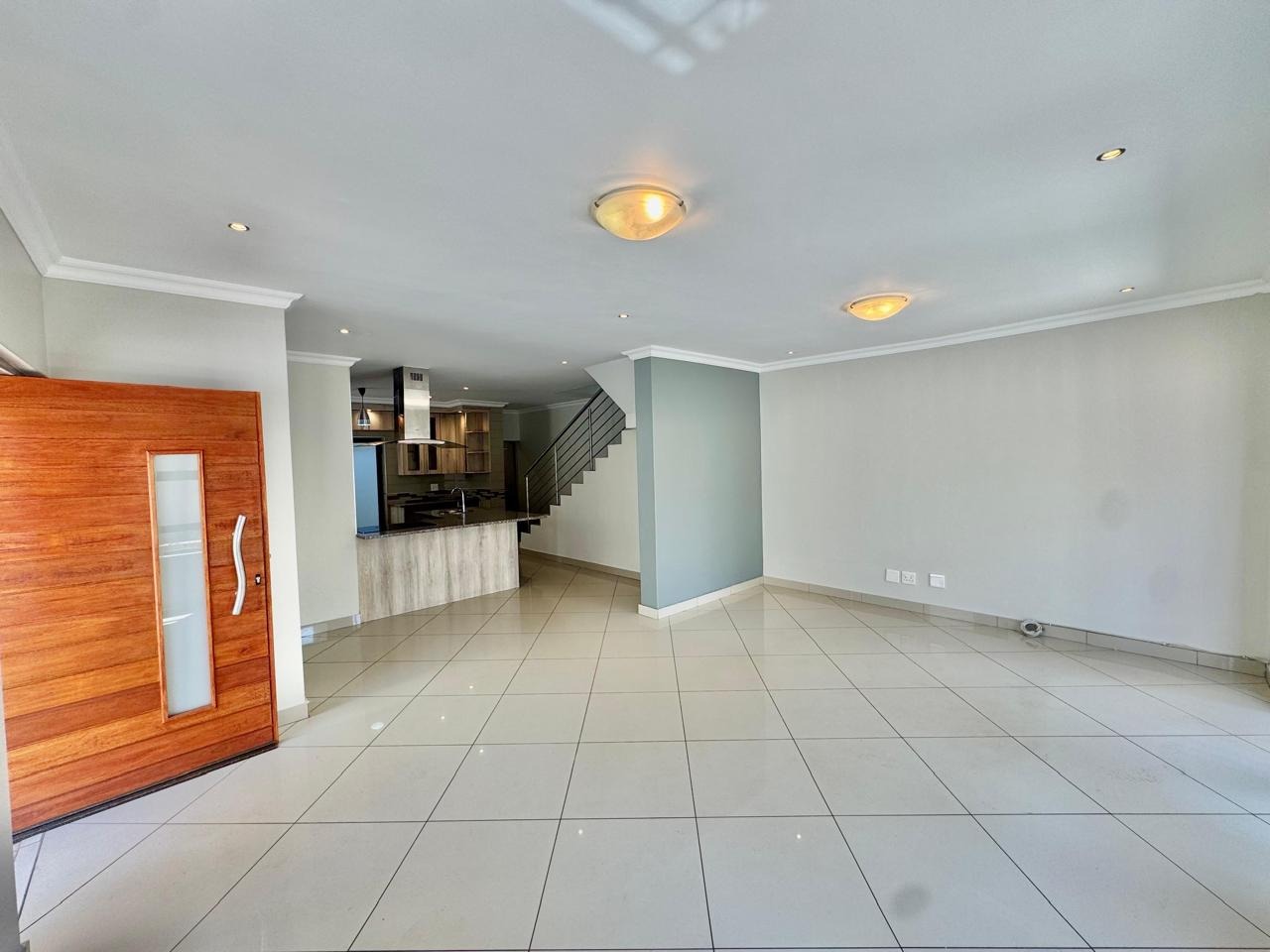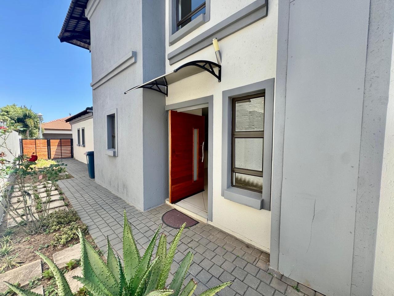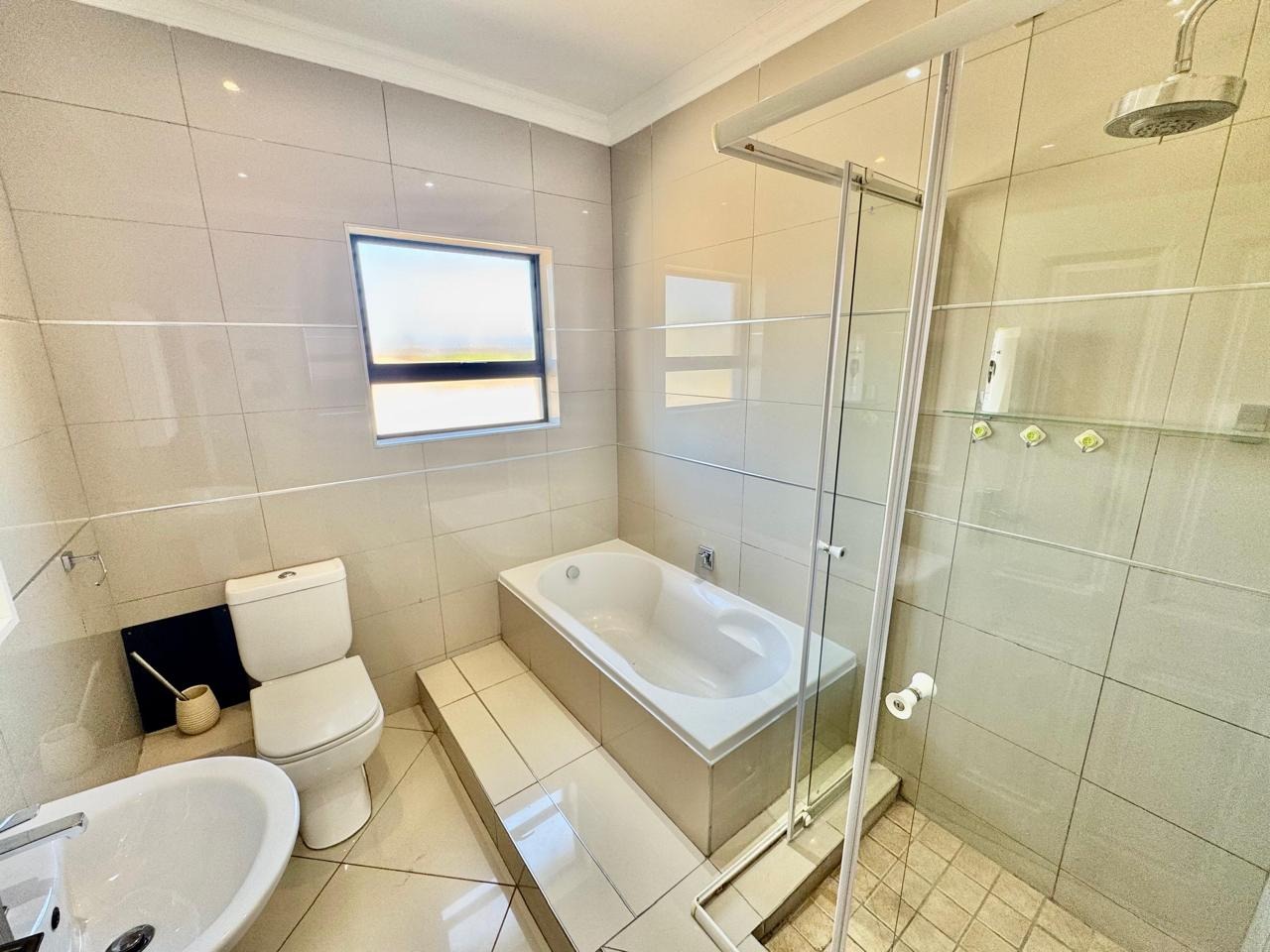 A convenient sliding door leads to a patio with a built in braai and a private, low maintenance garden.