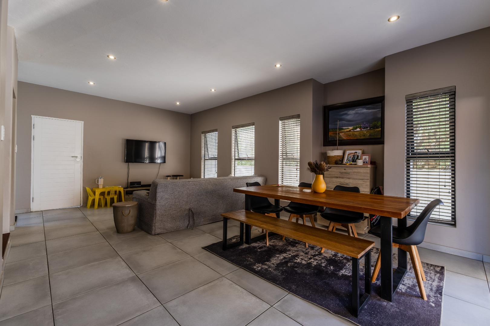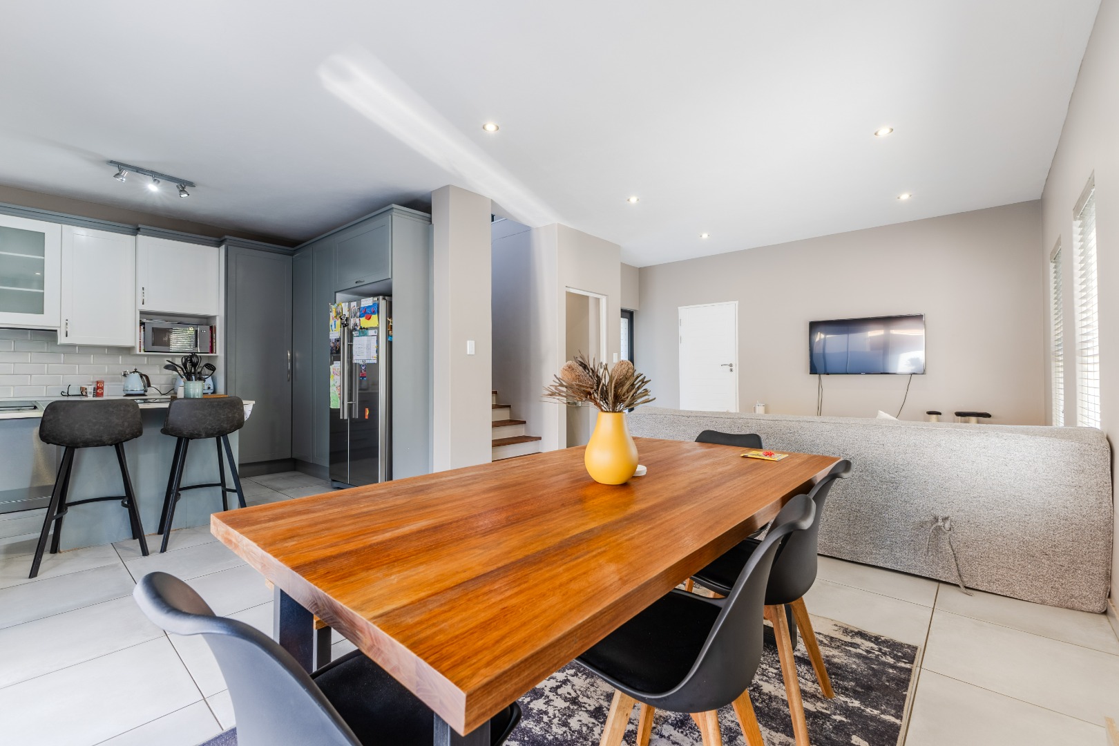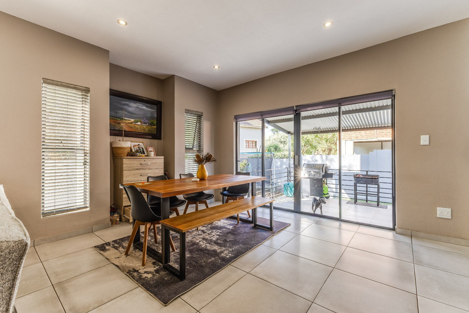 This contemporary 3-bedroom, 2.5-bathroom home presents an exceptional residential sale opportunity within a desirable estate in Olympus AH, Pretoria. Spanning 179 sqm, this property combines comfort with modern living, ideal for families seeking a secure and convenient lifestyle. The interior boasts a well-designed layout featuring a spacious lounge and a dedicated dining room, providing ample space for relaxation and entertaining. The functional kitchen is central to the home's flow. Sliding doors open onto a private patio, perfect for al fresco dining. Air conditioning ensures year-round comfort, complemented by a convenient guest toilet. The residence comprises three comfortable bedrooms, offering private retreats. The 2.5 bathrooms include well-appointed facilities, catering to both family needs and guest convenience. Outdoor living is enhanced by a private garden, providing a green space for leisure and for pets, as the property is pet-friendly. A double garage offers secure parking and additional storage. Paved areas contribute to the neat and low-maintenance appeal. Embrace sustainable living with solar panels and a battery inverter, significantly reducing electricity costs and ensuring power continuity. Fibre connectivity is available, supporting modern work-from-home and entertainment needs. Situated within an estate, the property offers a sense of community and enhanced security. Olympus AH is a sought-after Pretoria suburb, known for its tranquil environment and convenient access to local amenities, schools, and major routes. This location provides a balanced lifestyle, combining suburban peace with urban accessibility. Key Features: * 3 Bedrooms, 2.5 Bathrooms * 179 sqm Floor Size * Double Garage * Private Garden & Patio * Air Conditioning * Pet-Friendly * Fibre Ready * Solar Panels & Battery Inverter * Estate Living
