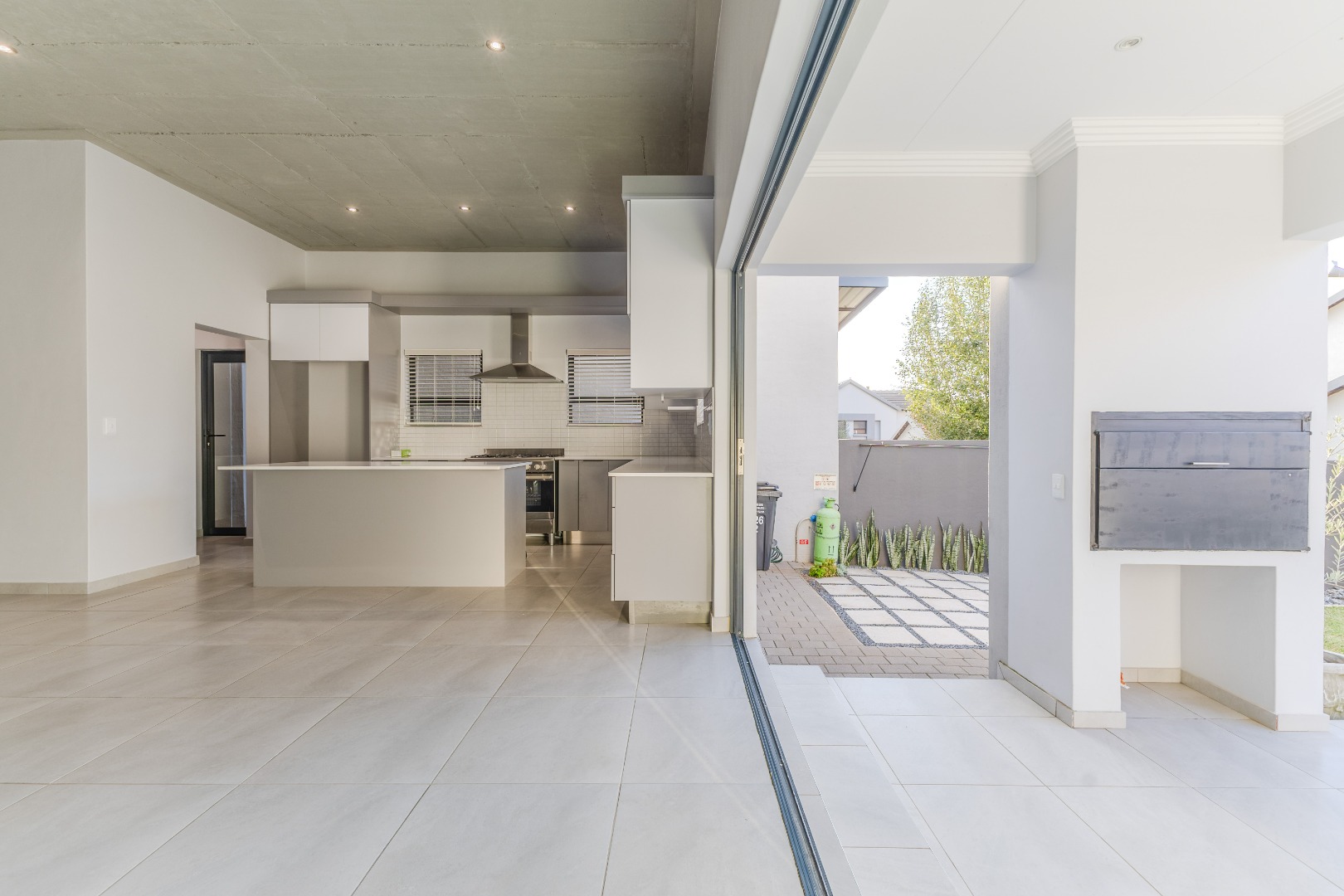Outdoor living is equally appealing. The home features a built-in braai area, ideal for entertaining and enjoying the South African lifestyle, while the beautifully landscaped lawns create a welcoming and tranquil outdoor setting.