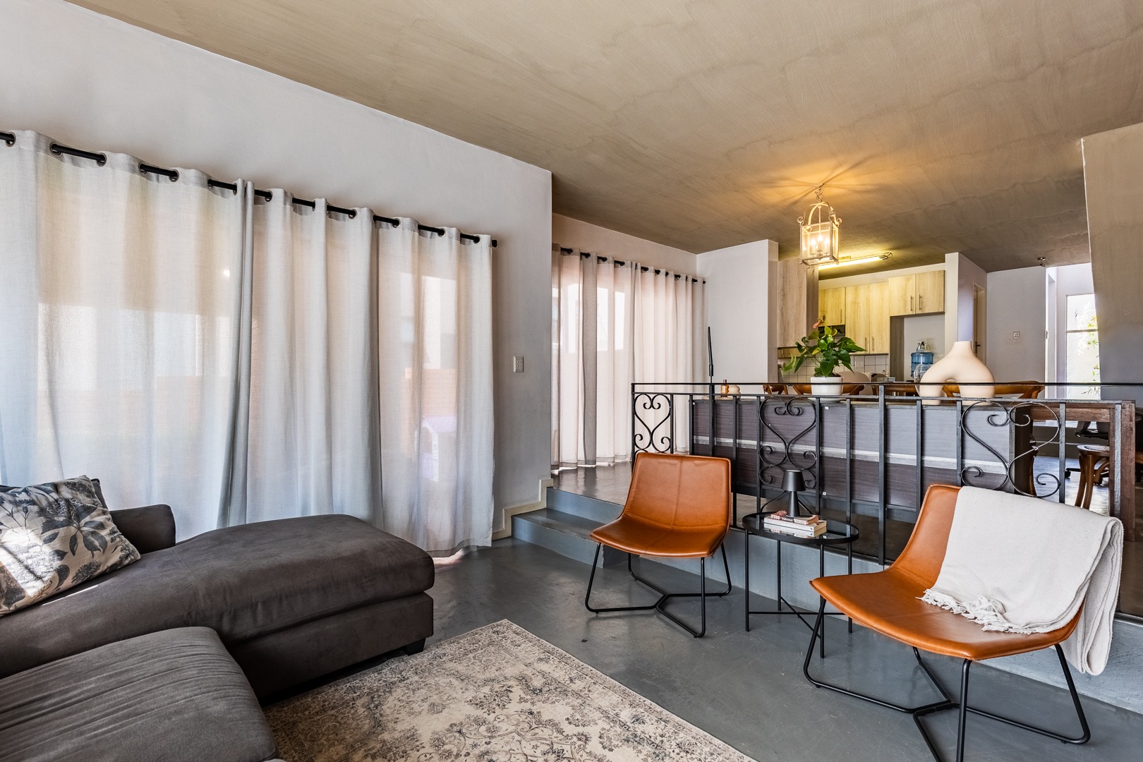 This welcoming area serves as the heart of daily relaxation and seamlessly connects to the outdoors through sliding doors that open onto a private patio, effortlessly extending your living space.