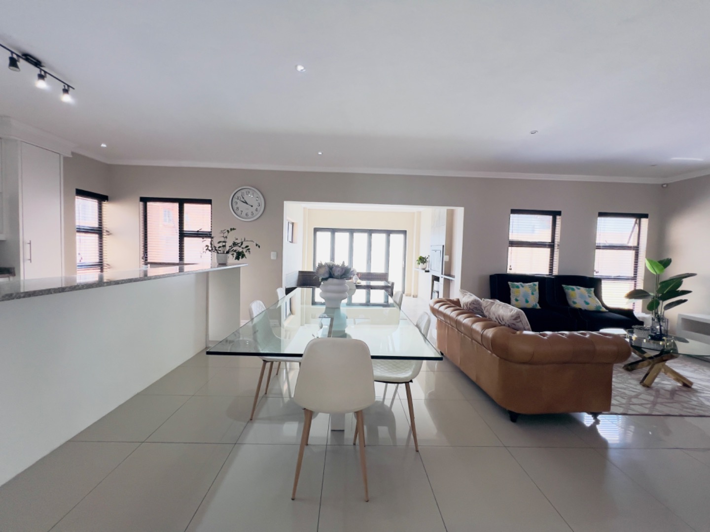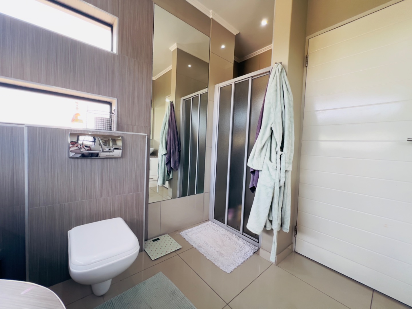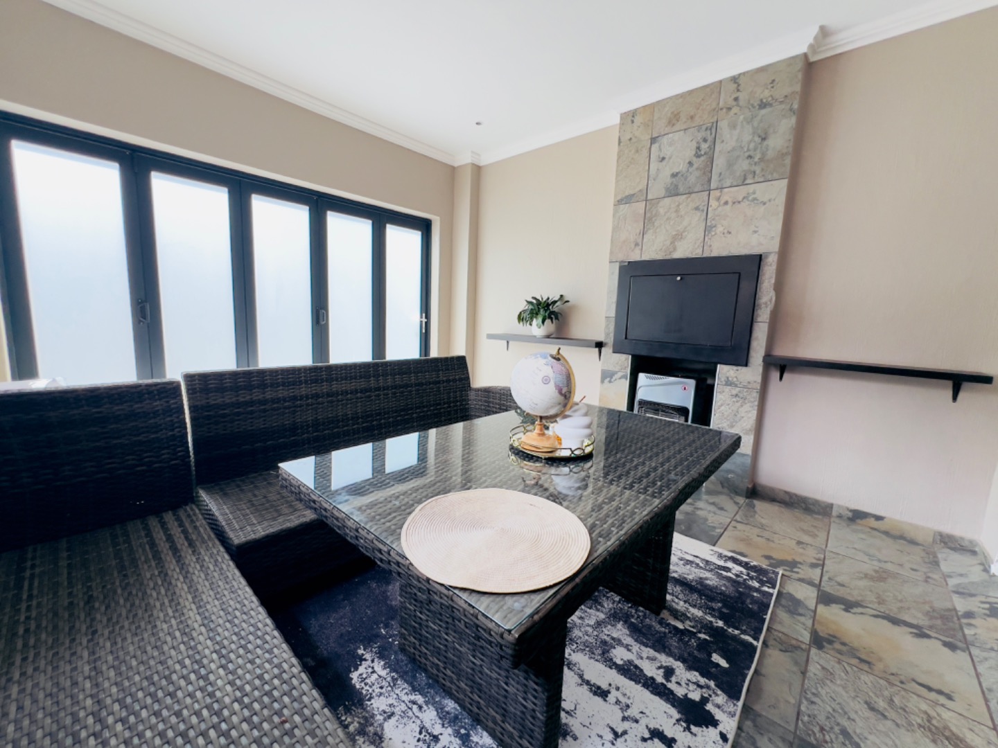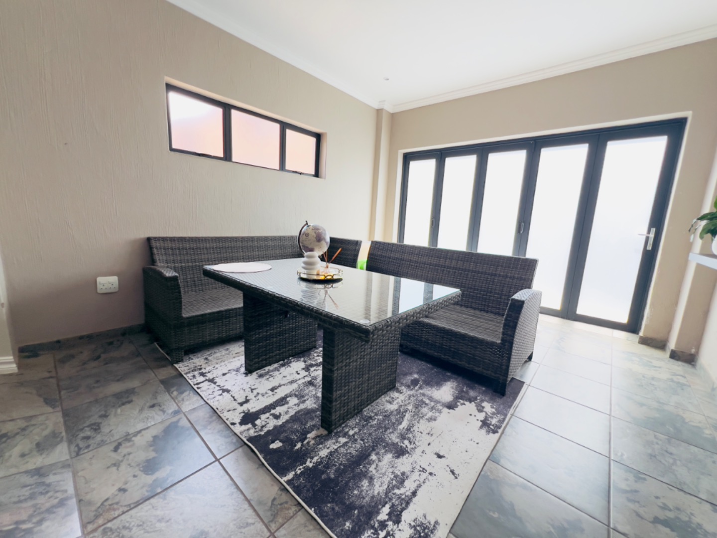 The property's interior is further enhanced by the indoor patio, which features a fixed braai and can be opened up to create a seamless indoor-outdoor living experience. A study room located downstairs provides a quiet space for work or study. The property also boasts a double garage and a beautiful garden area, perfect for outdoor relaxation. Located in a tight and secure area with 24-hour guarding, this property offers peace of mind and a safe living environment. With its perfect blend of style, functionality, and security, this property is a must-view for anyone looking to upgrade their lifestyle.