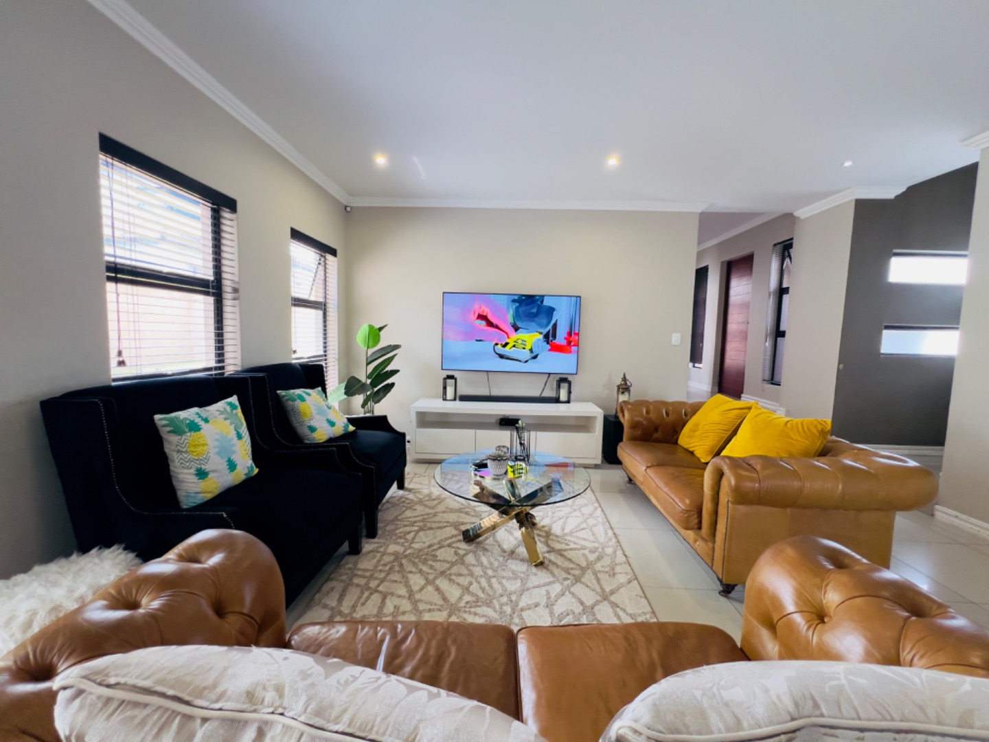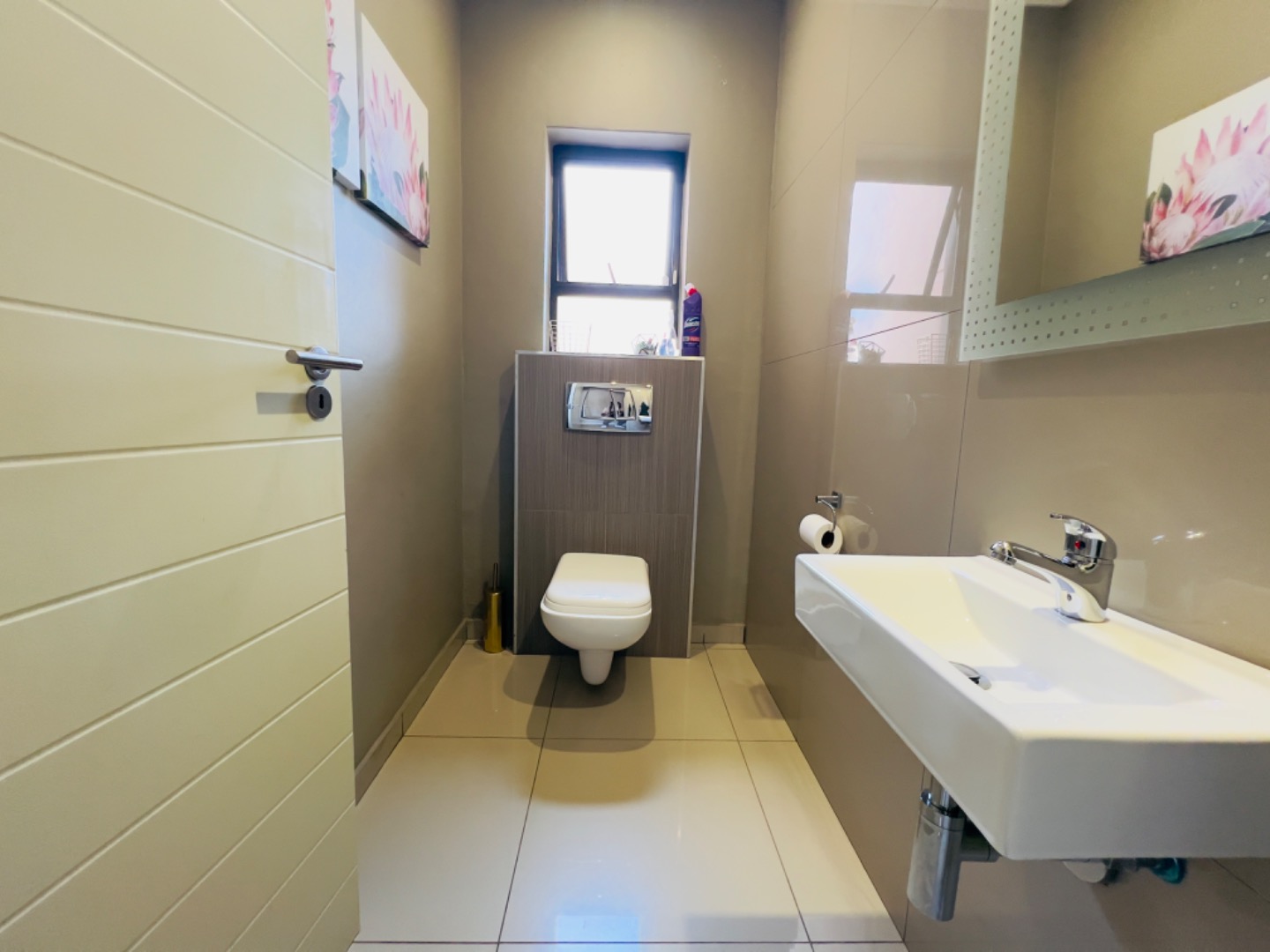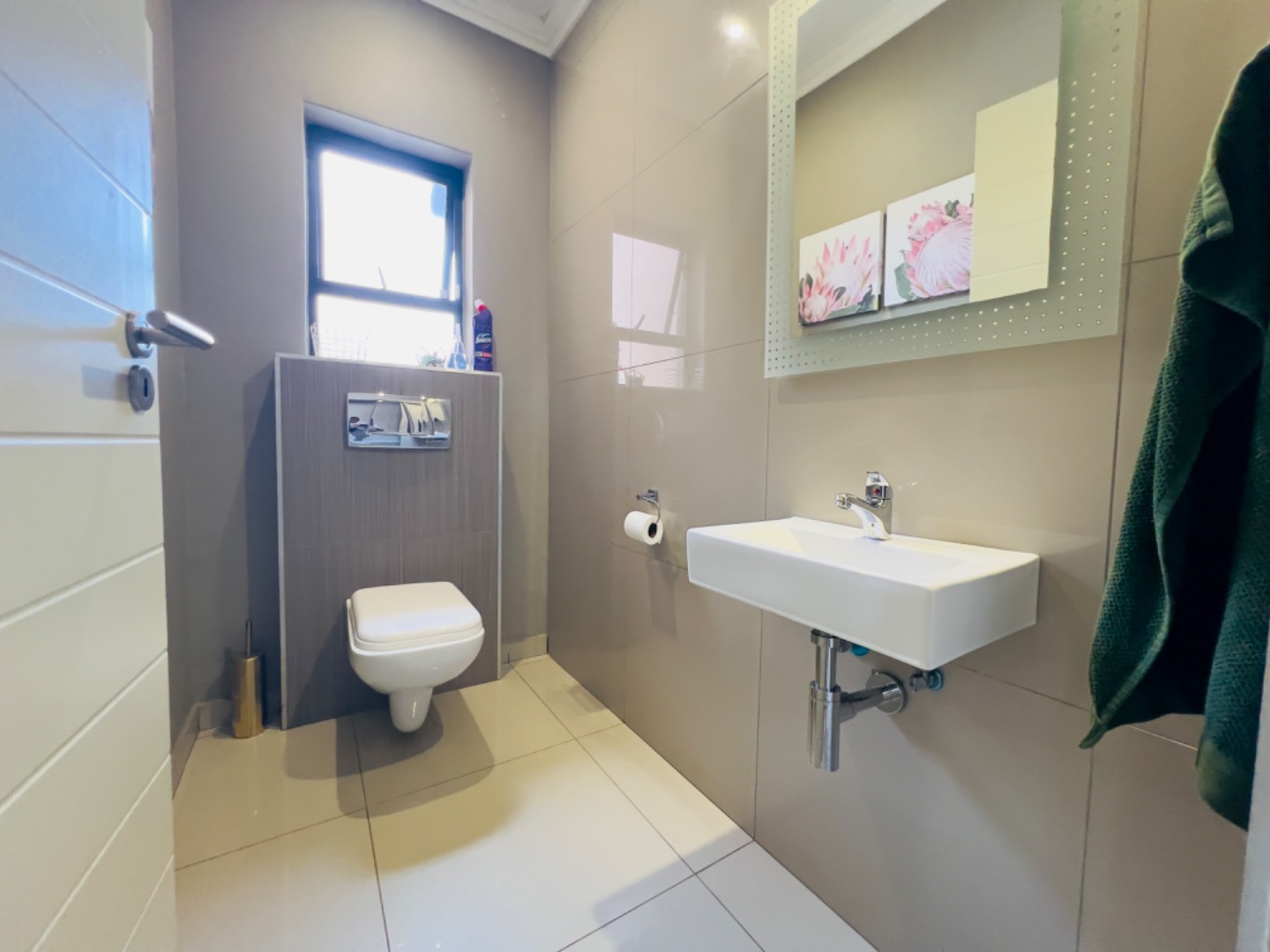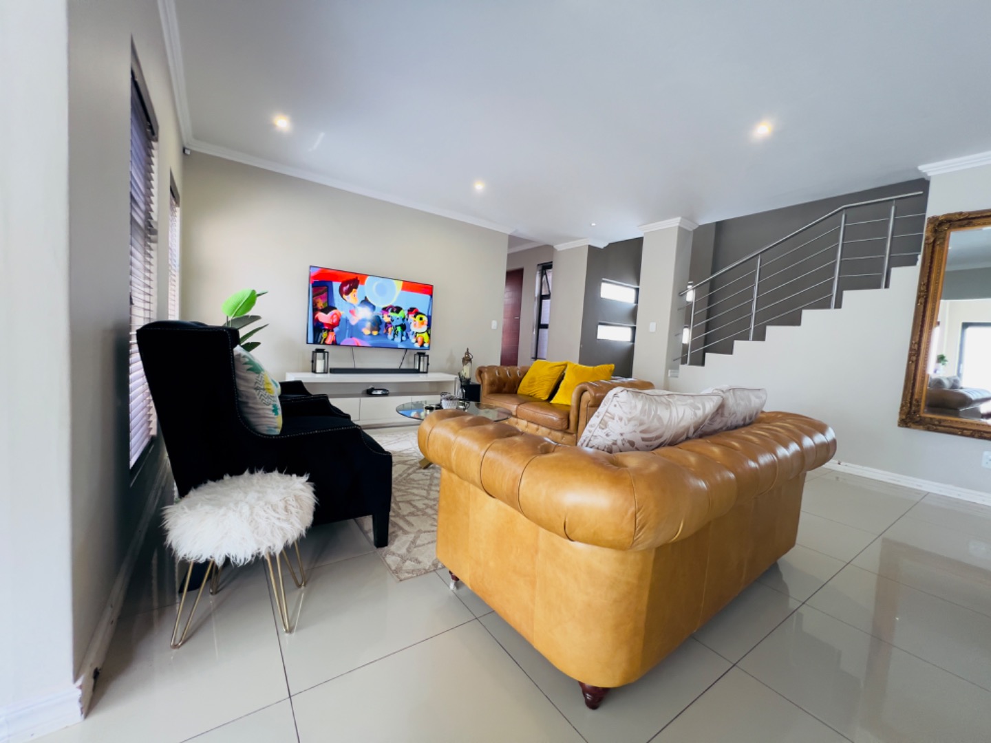 The property's interior is further enhanced by the indoor patio, which features a fixed braai and can be opened up to create a seamless indoor-outdoor living experience. A study room located downstairs provides a quiet space for work or study. The property also boasts a double garage and a beautiful garden area, perfect for outdoor relaxation. Located in a tight and secure area with 24-hour guarding, this property offers peace of mind and a safe living environment. With its perfect blend of style, functionality, and security, this property is a must-view for anyone looking to upgrade their lifestyle.