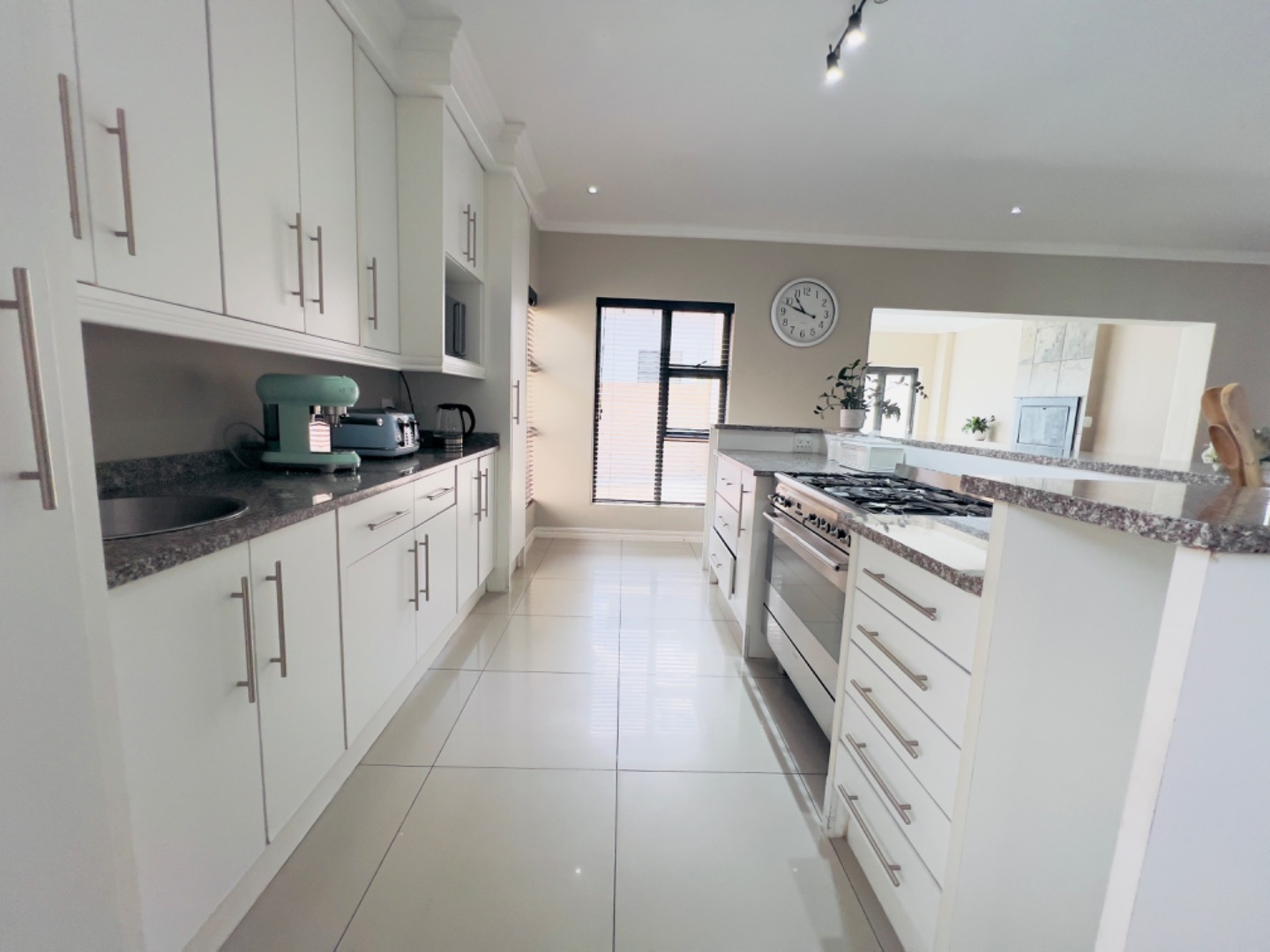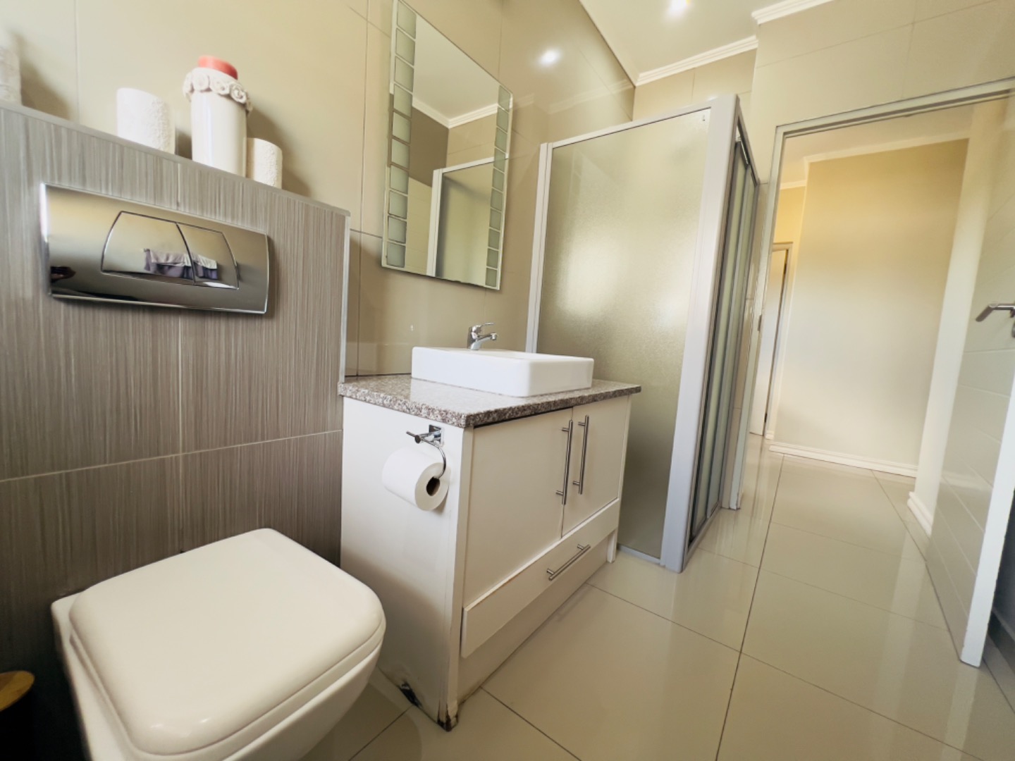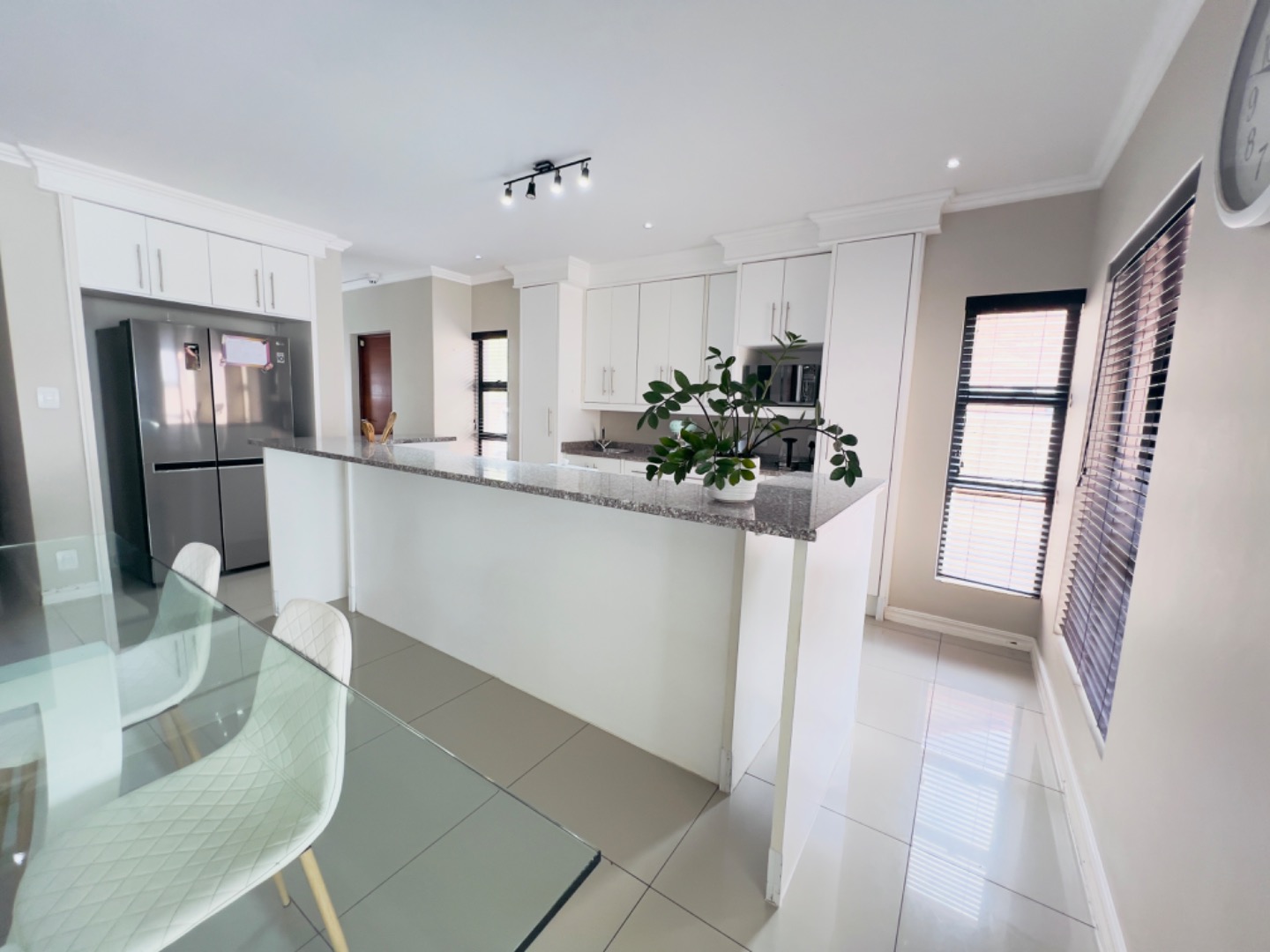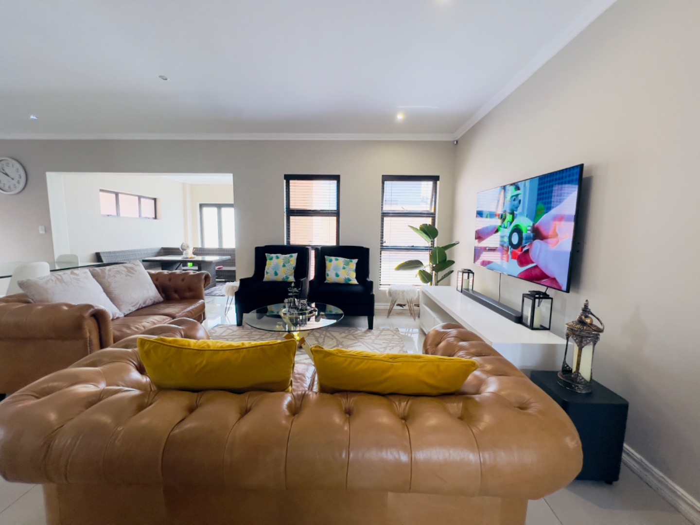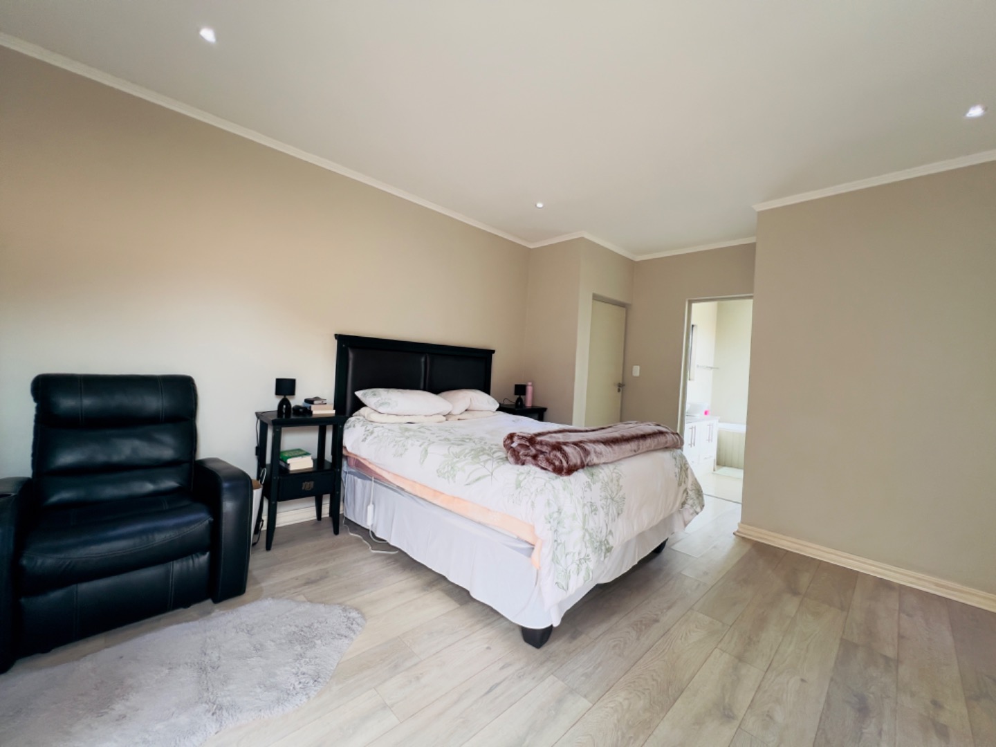 The property's interior is further enhanced by the indoor patio, which features a fixed braai and can be opened up to create a seamless indoor-outdoor living experience. A study room located downstairs provides a quiet space for work or study. The property also boasts a double garage and a beautiful garden area, perfect for outdoor relaxation. Located in a tight and secure area with 24-hour guarding, this property offers peace of mind and a safe living environment. With its perfect blend of style, functionality, and security, this property is a must-view for anyone looking to upgrade their lifestyle.