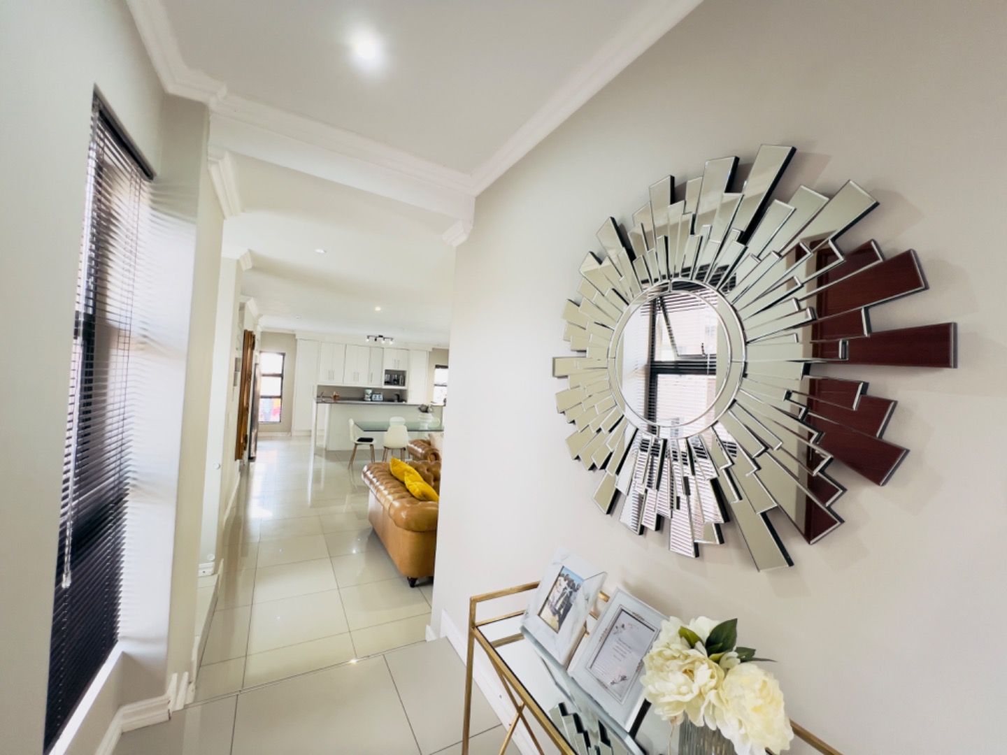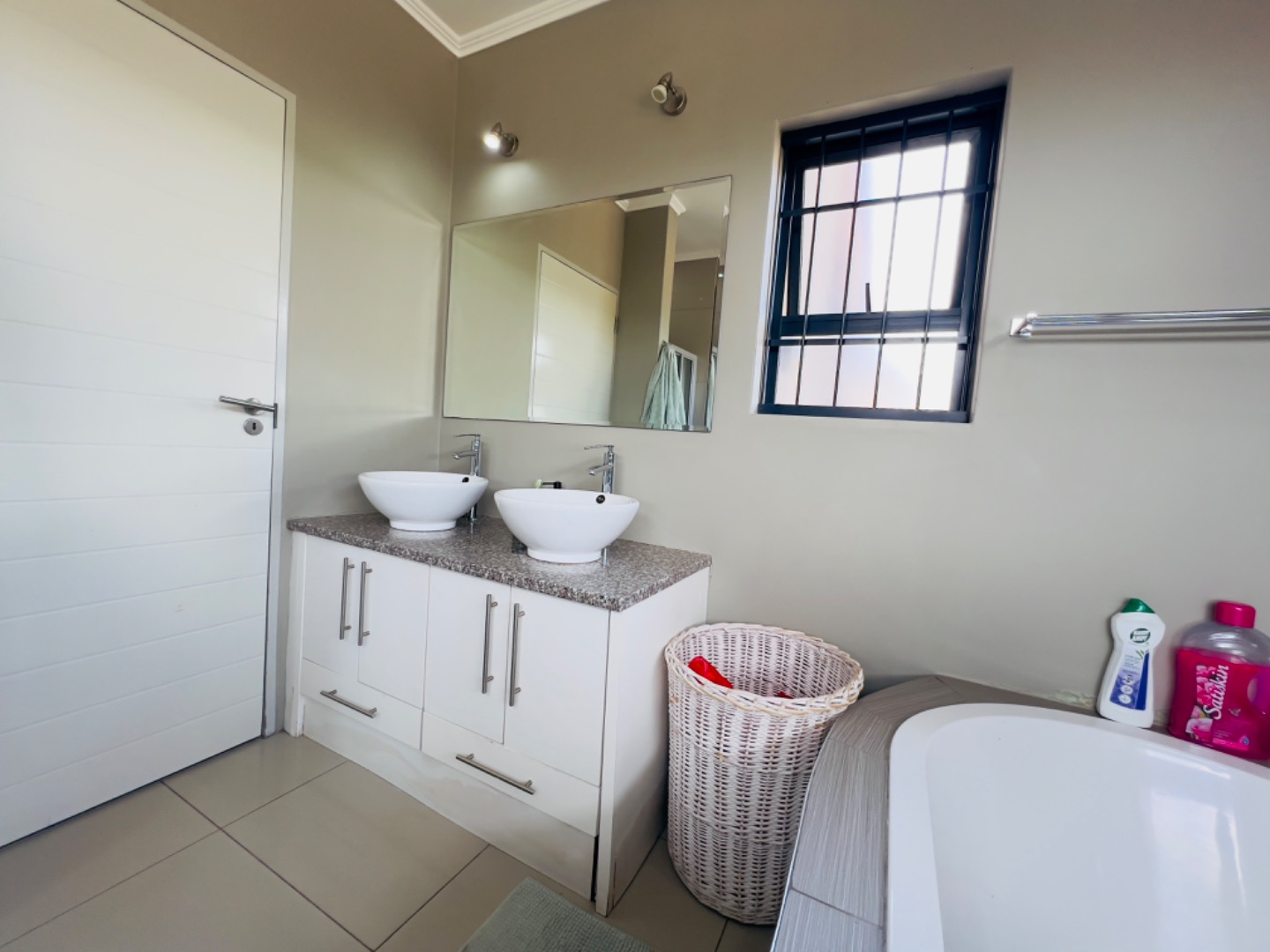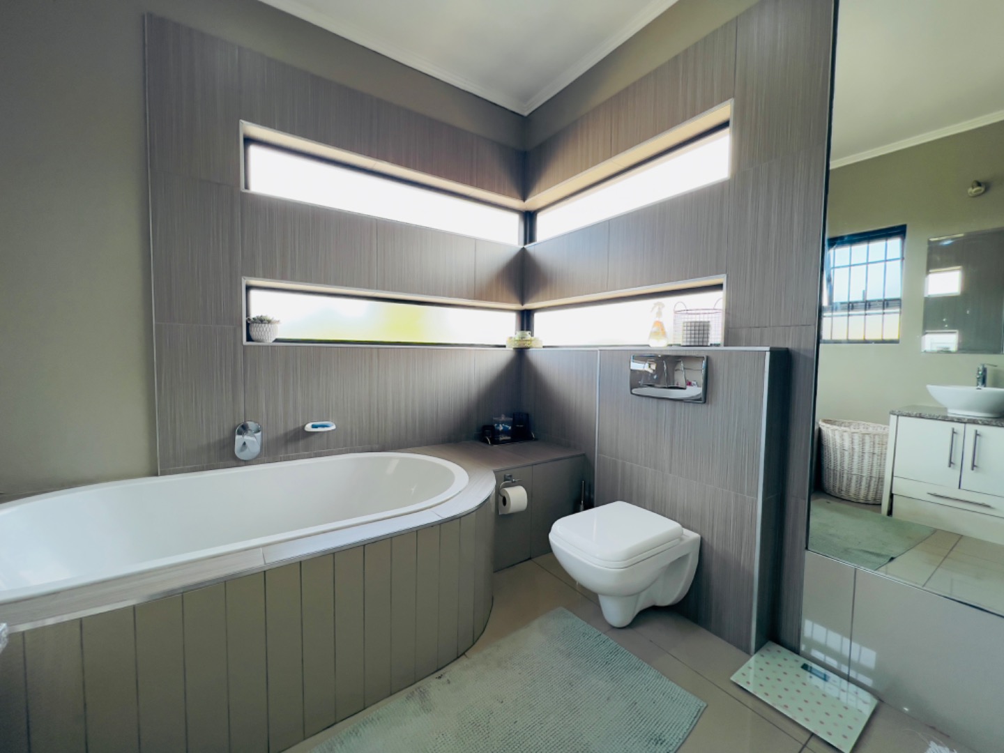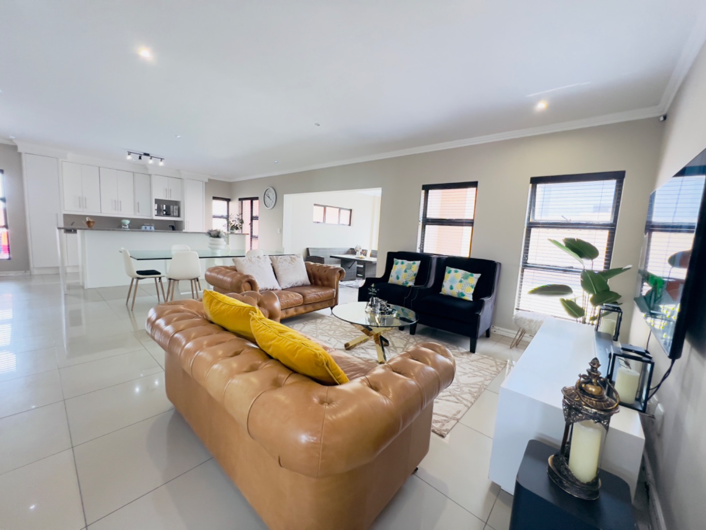 The property's interior is further enhanced by the indoor patio, which features a fixed braai and can be opened up to create a seamless indoor-outdoor living experience. A study room located downstairs provides a quiet space for work or study. The property also boasts a double garage and a beautiful garden area, perfect for outdoor relaxation. Located in a tight and secure area with 24-hour guarding, this property offers peace of mind and a safe living environment. With its perfect blend of style, functionality, and security, this property is a must-view for anyone looking to upgrade their lifestyle.