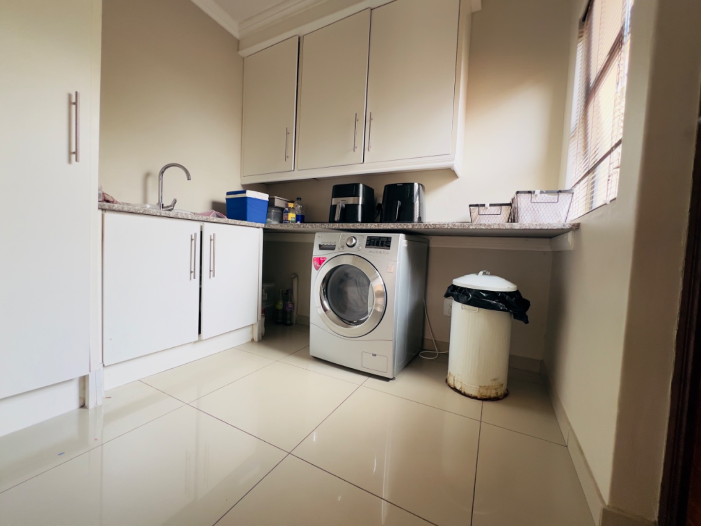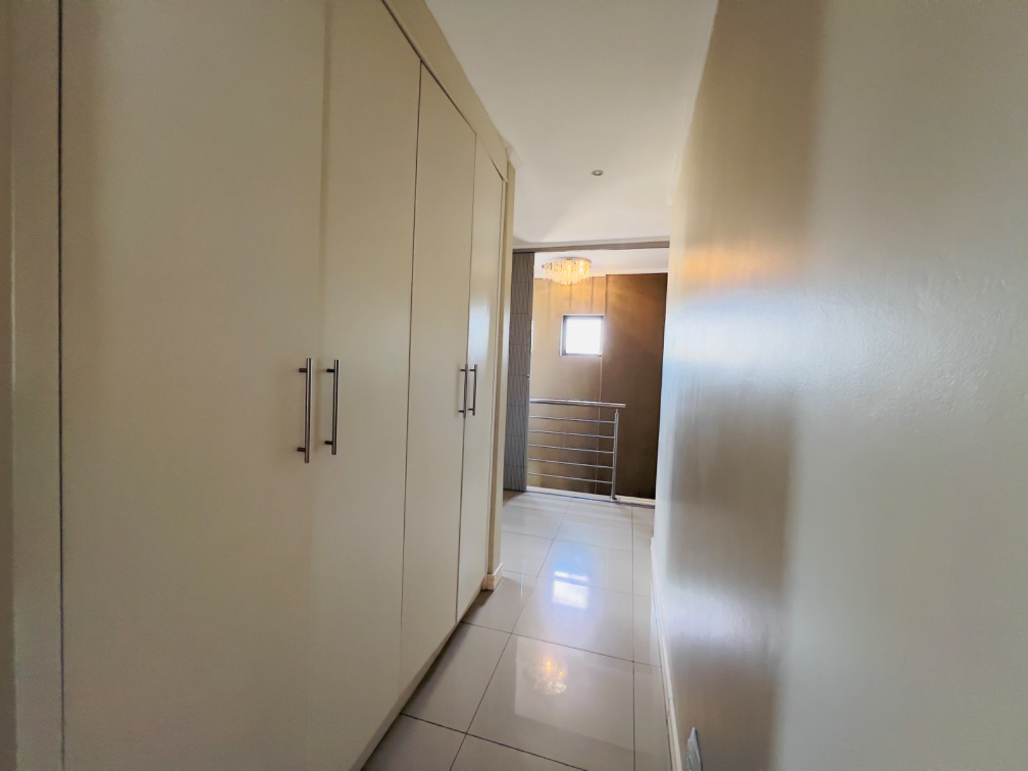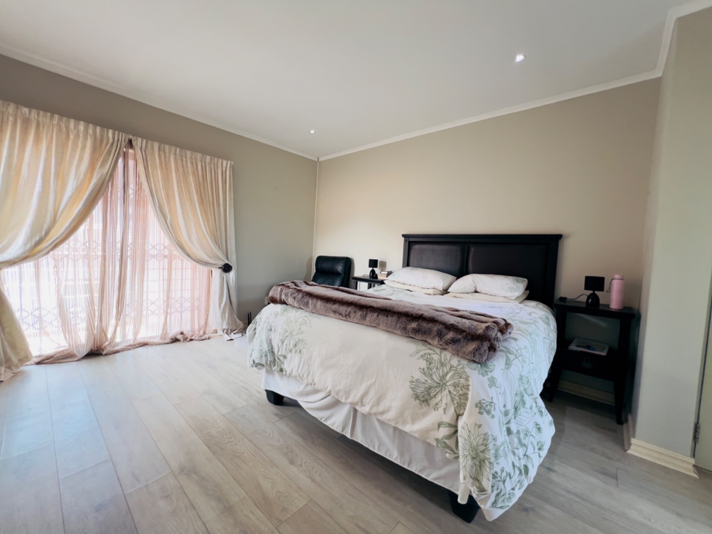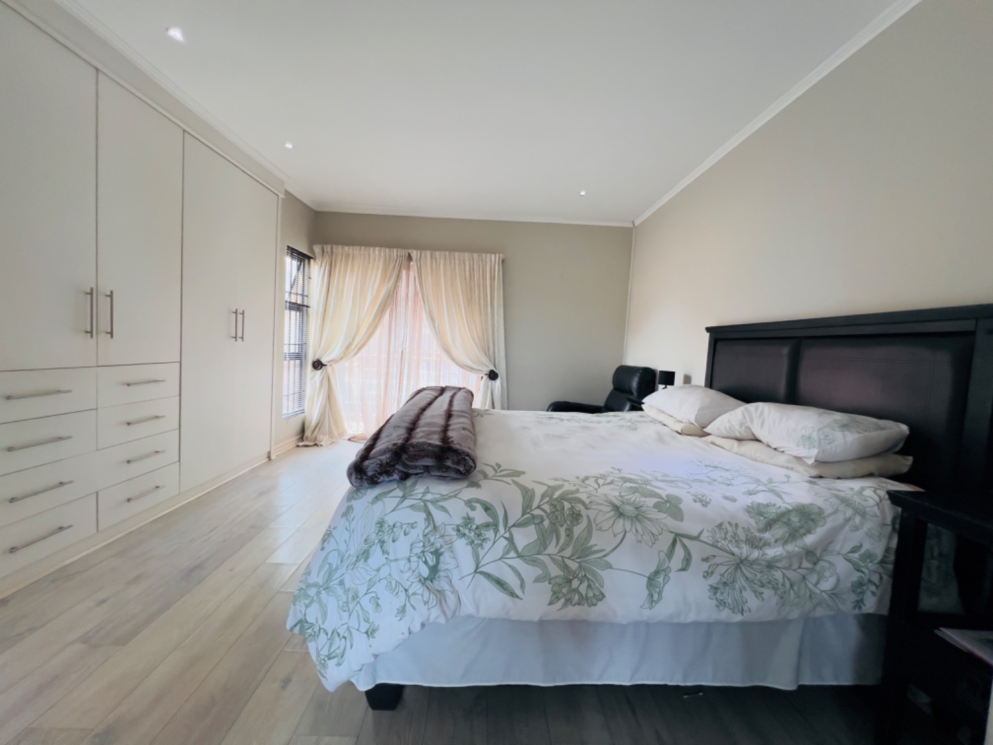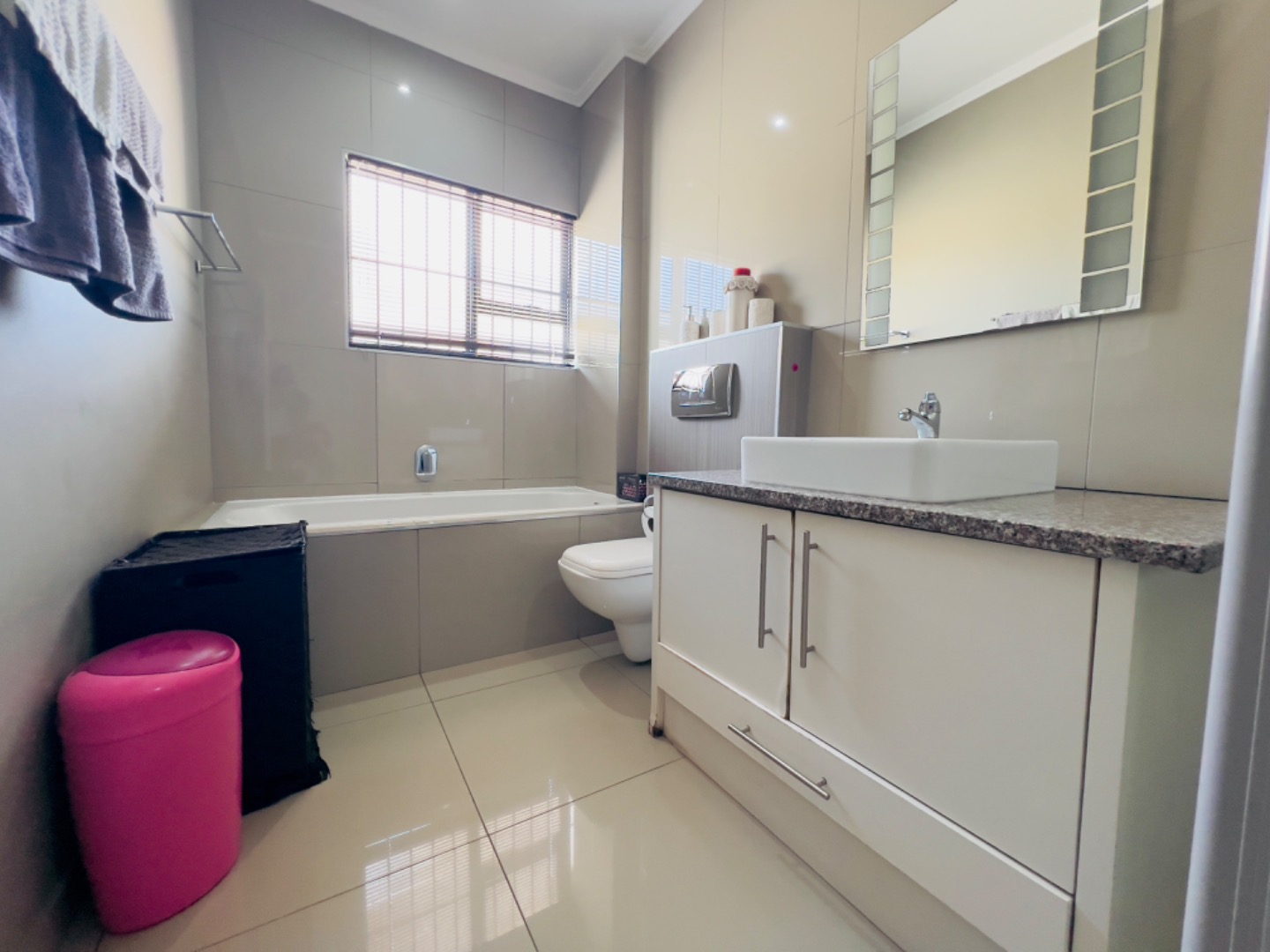This stunning double-storey property in Olympus offers the perfect blend of luxury and comfort. With 3 spacious bedrooms and 2.5 bathrooms, including an en-suite in the master bedroom, this home is ideal for families or professionals looking for a secure and stylish abode. The property also features a convenient maid's quarter, adding to its appeal. The open-plan living area flows seamlessly into the TV area, creating a perfect space for entertainment. The spacious kitchen is equipped with gas stoves, a pantry, and a scullery, making meal preparation a breeze.