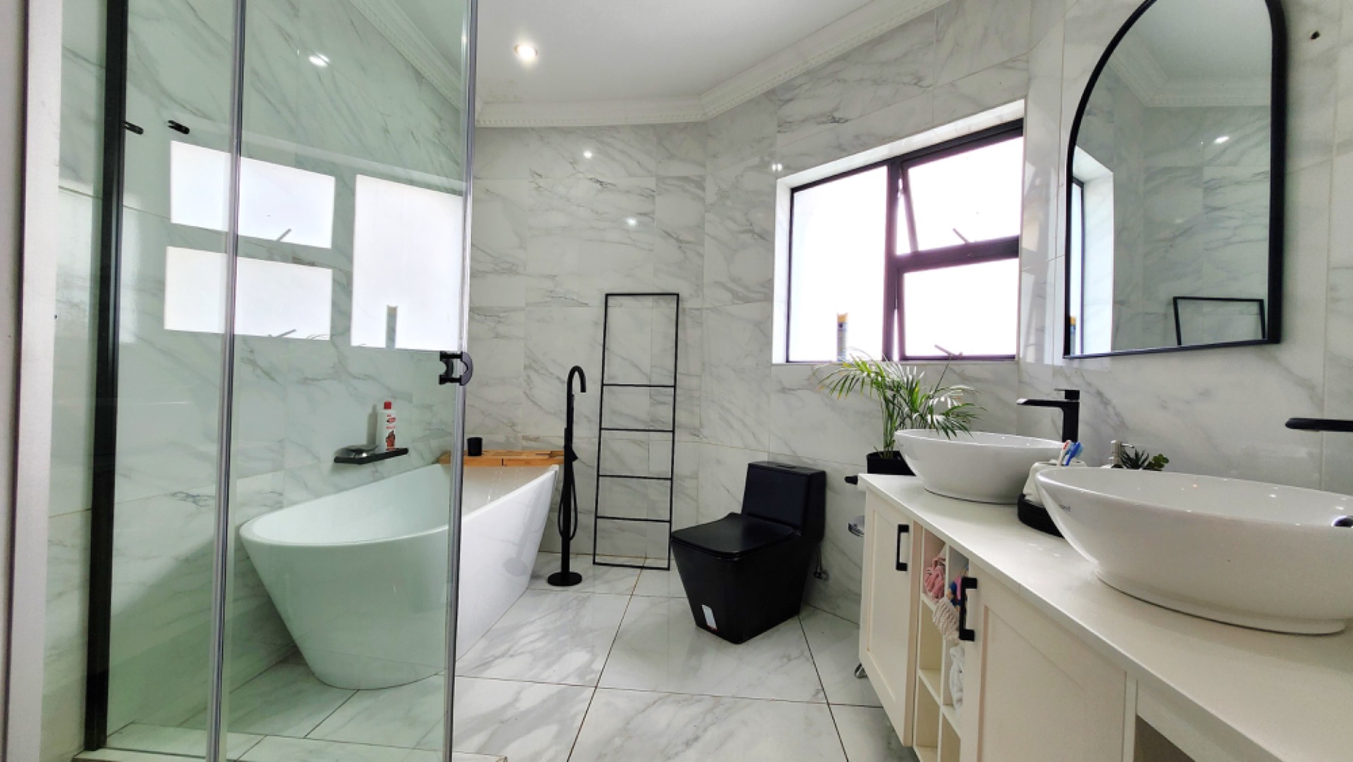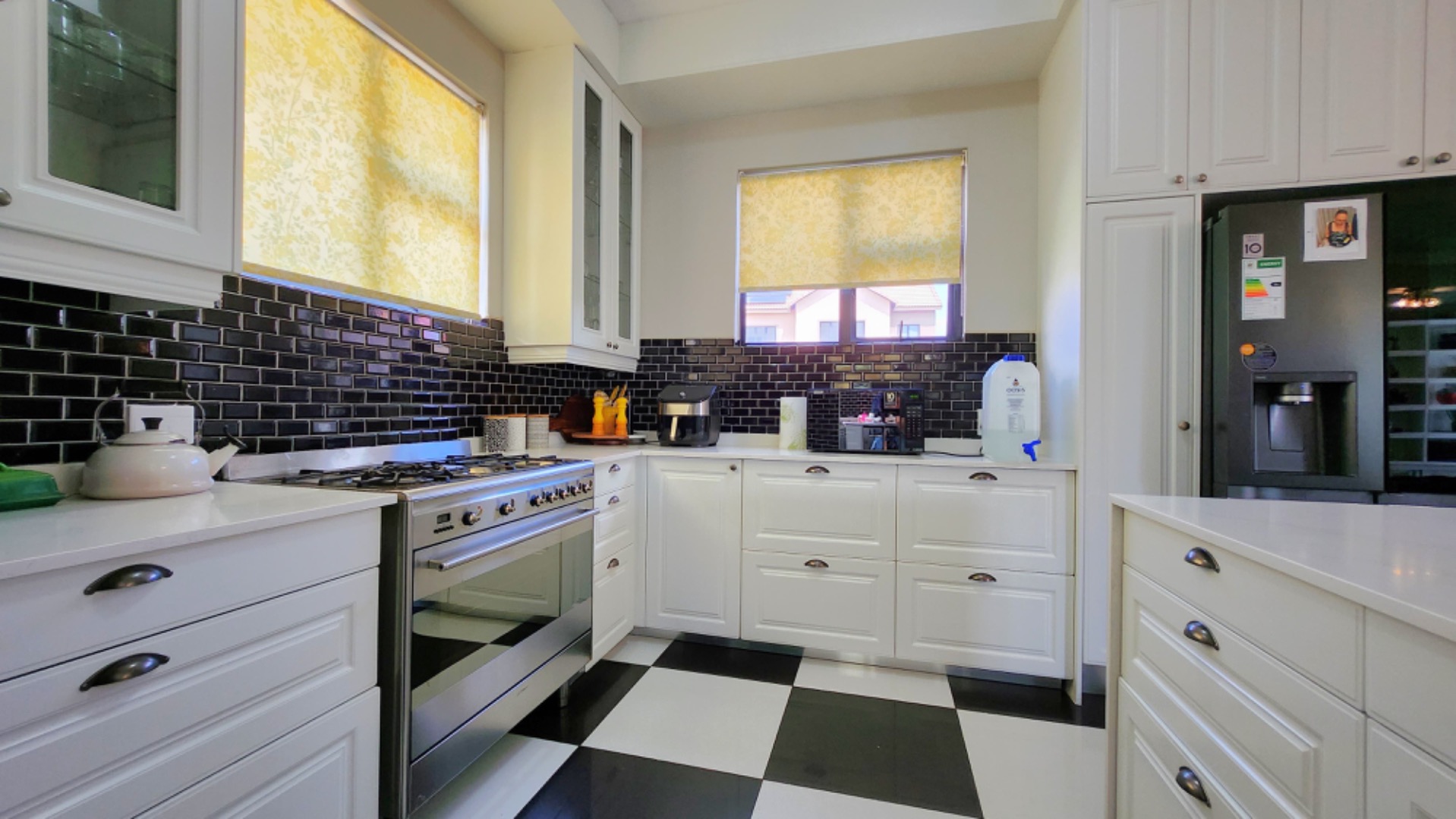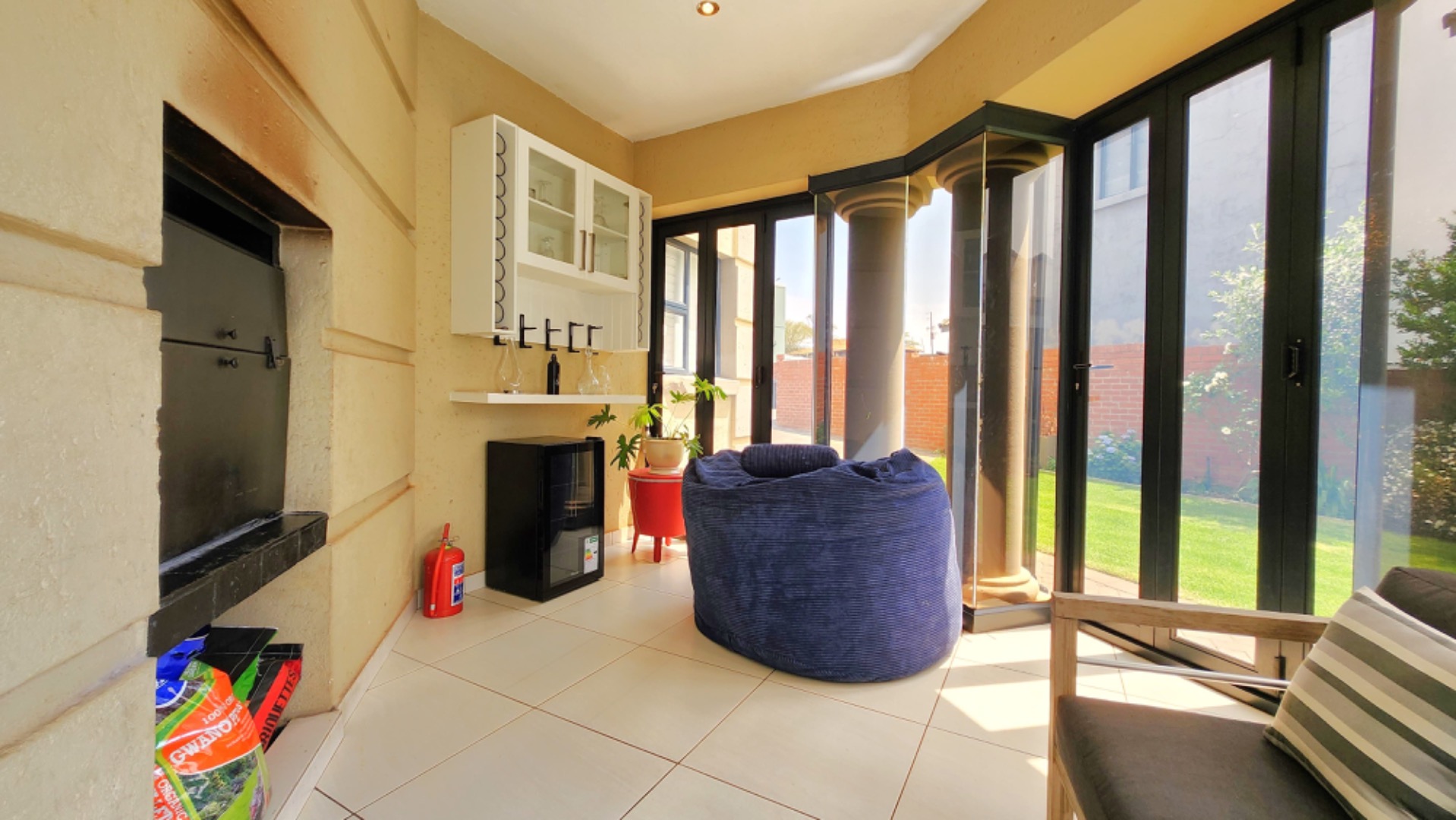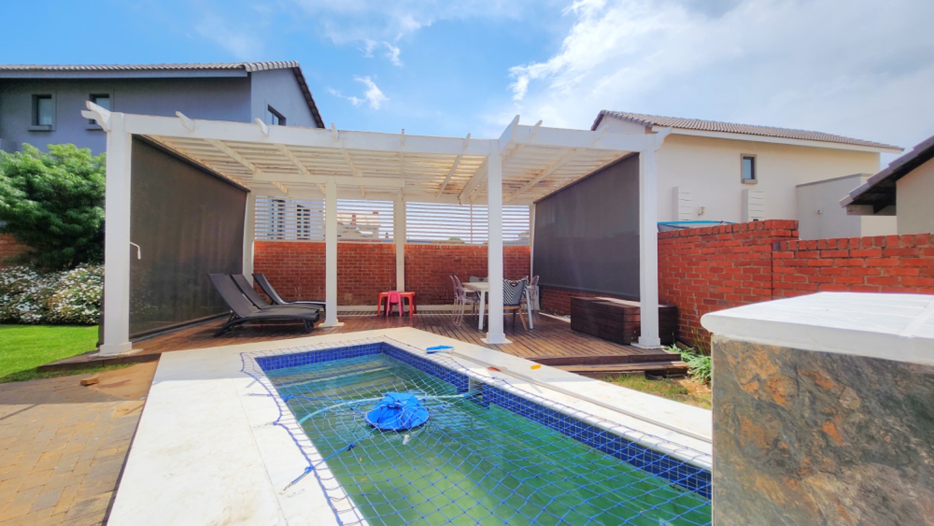 This stunning double-storey property in Olympus offers the perfect blend of comfort, style, and entertainment. The interior boasts 4 spacious bedrooms, 3 modern bathrooms, and a convenient maid's quarter, ensuring ample space for family and guests. The heart of the home is the beautiful kitchen, equipped with gas stoves and plenty of room for culinary creativity. Adjacent to the kitchen, the lovely TV area and dining space feature an electric fireplace, creating a cozy ambiance for relaxation and gatherings. The adjacent bar area is perfect for entertaining, seamlessly flowing into the expansive back garden, where the sparkling swimming pool and pergola area await.