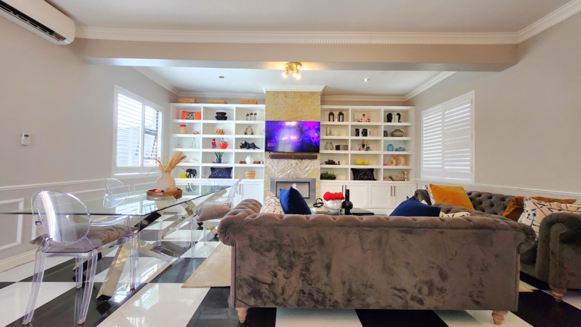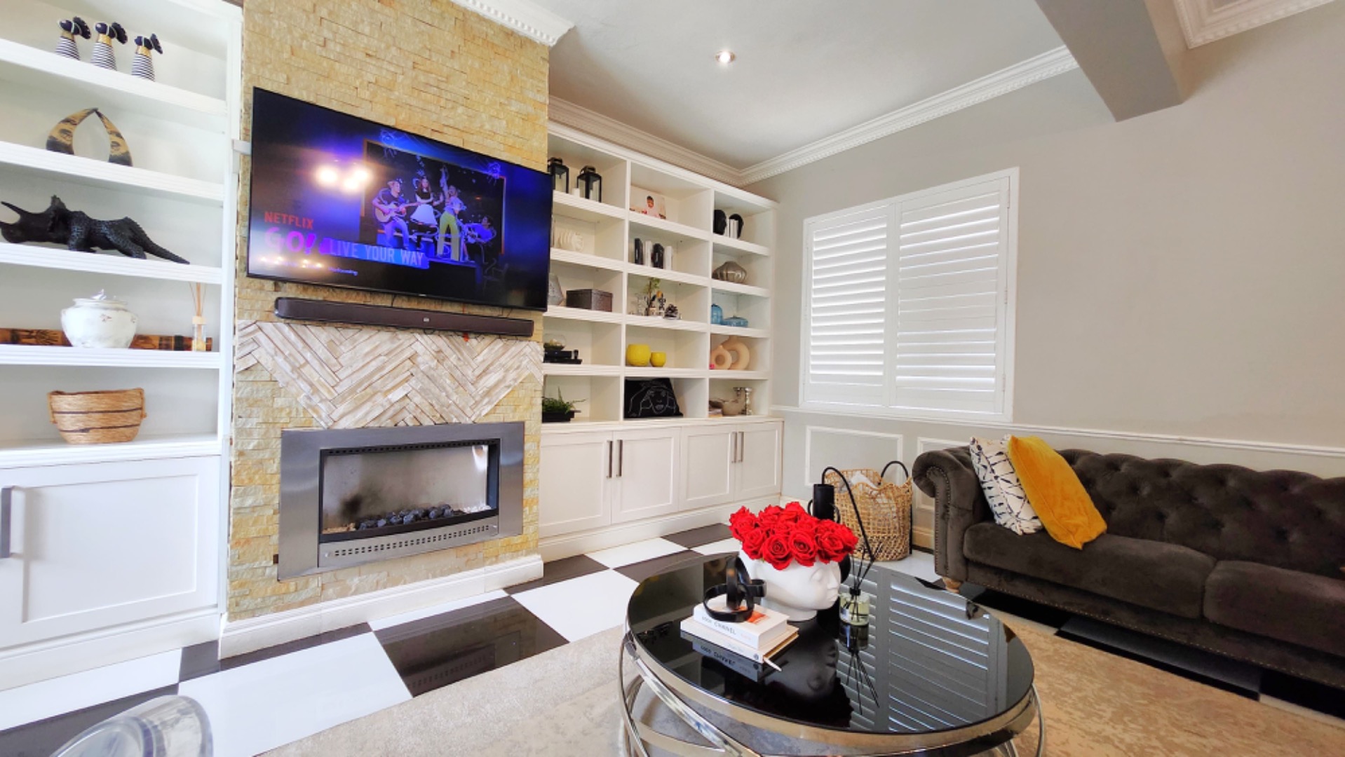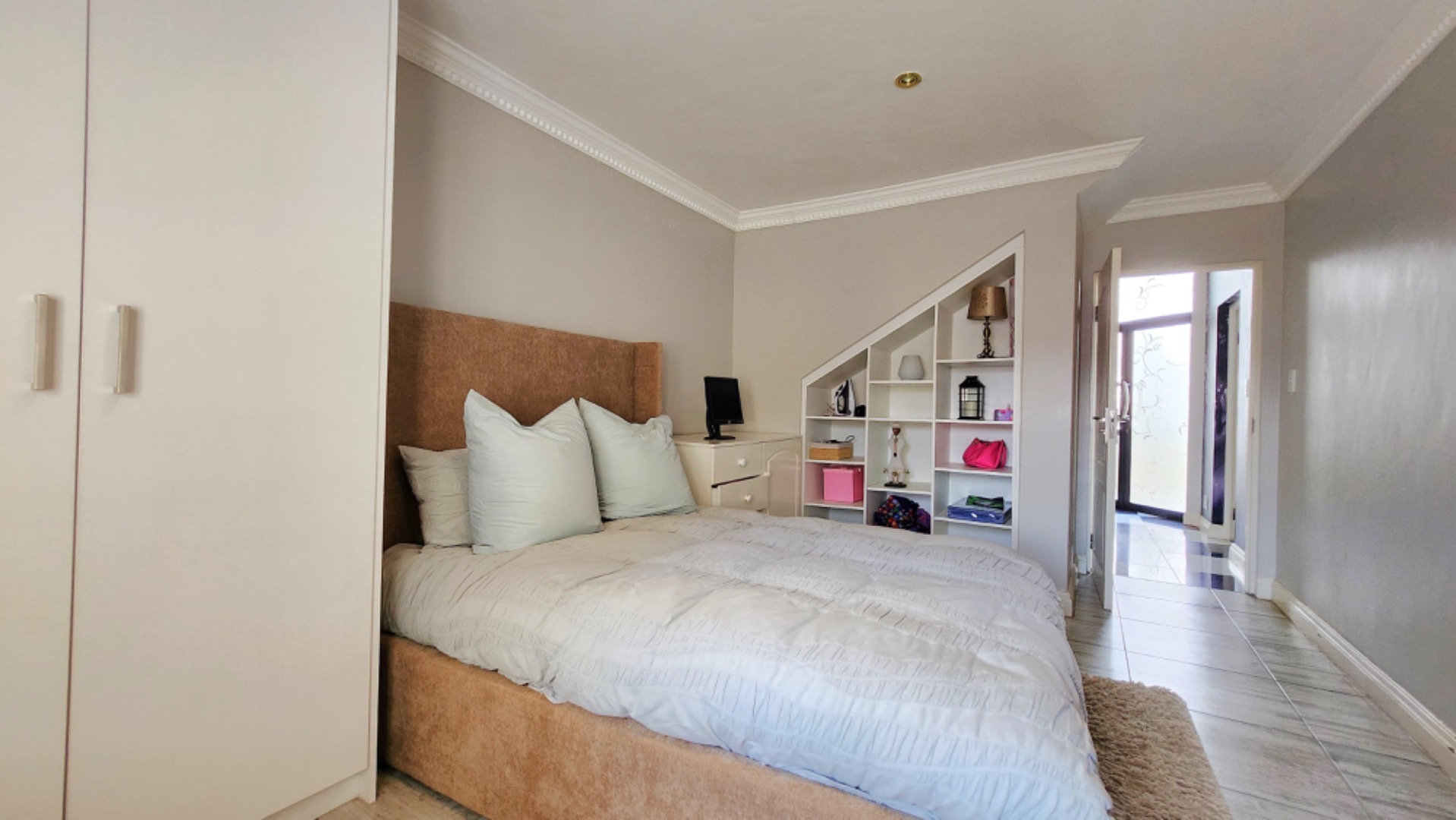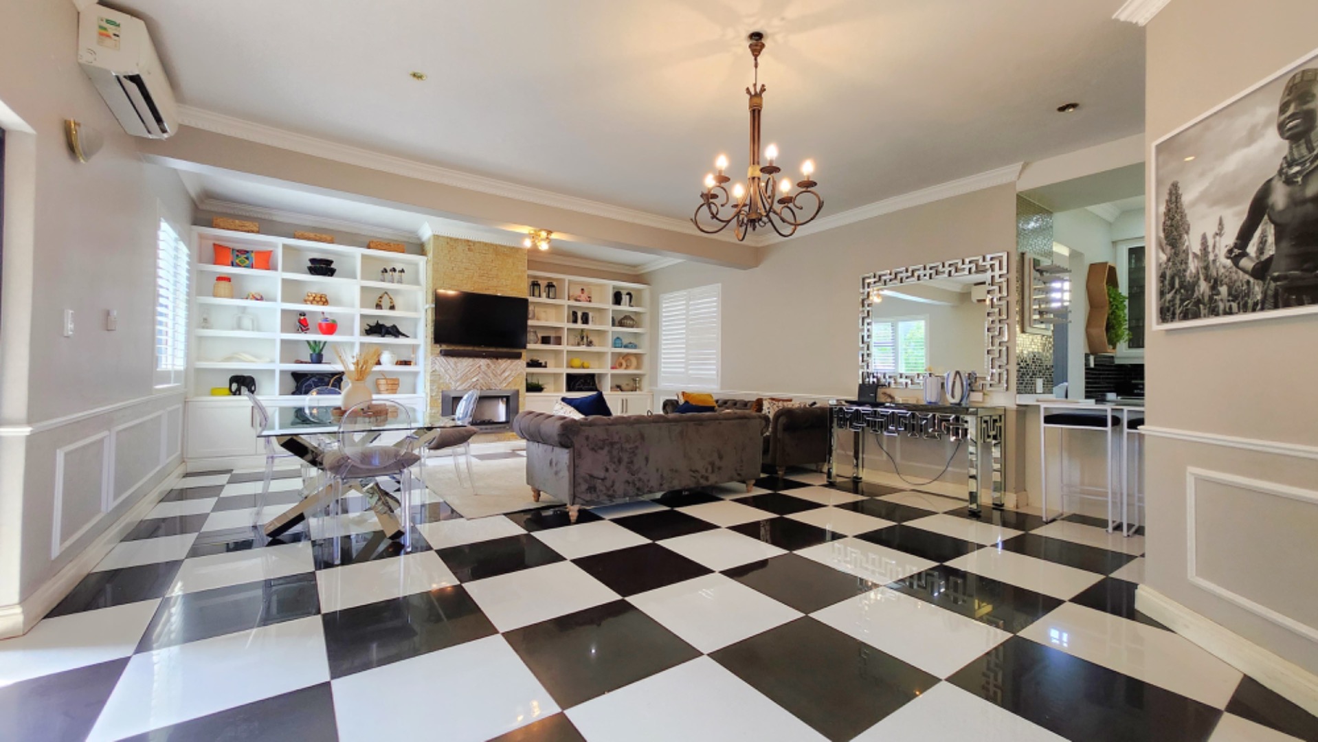 This stunning double-storey property in Olympus offers the perfect blend of comfort, style, and entertainment. The interior boasts 4 spacious bedrooms, 3 modern bathrooms, and a convenient maid's quarter, ensuring ample space for family and guests. The heart of the home is the beautiful kitchen, equipped with gas stoves and plenty of room for culinary creativity. Adjacent to the kitchen, the lovely TV area and dining space feature an electric fireplace, creating a cozy ambiance for relaxation and gatherings. The adjacent bar area is perfect for entertaining, seamlessly flowing into the expansive back garden, where the sparkling swimming pool and pergola area await.