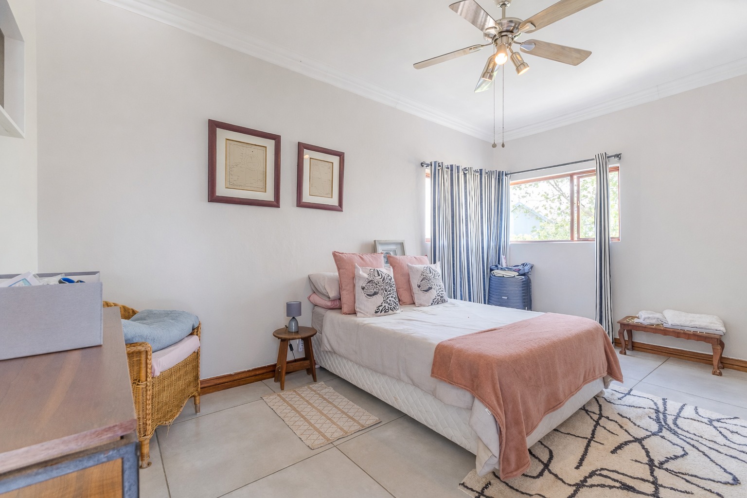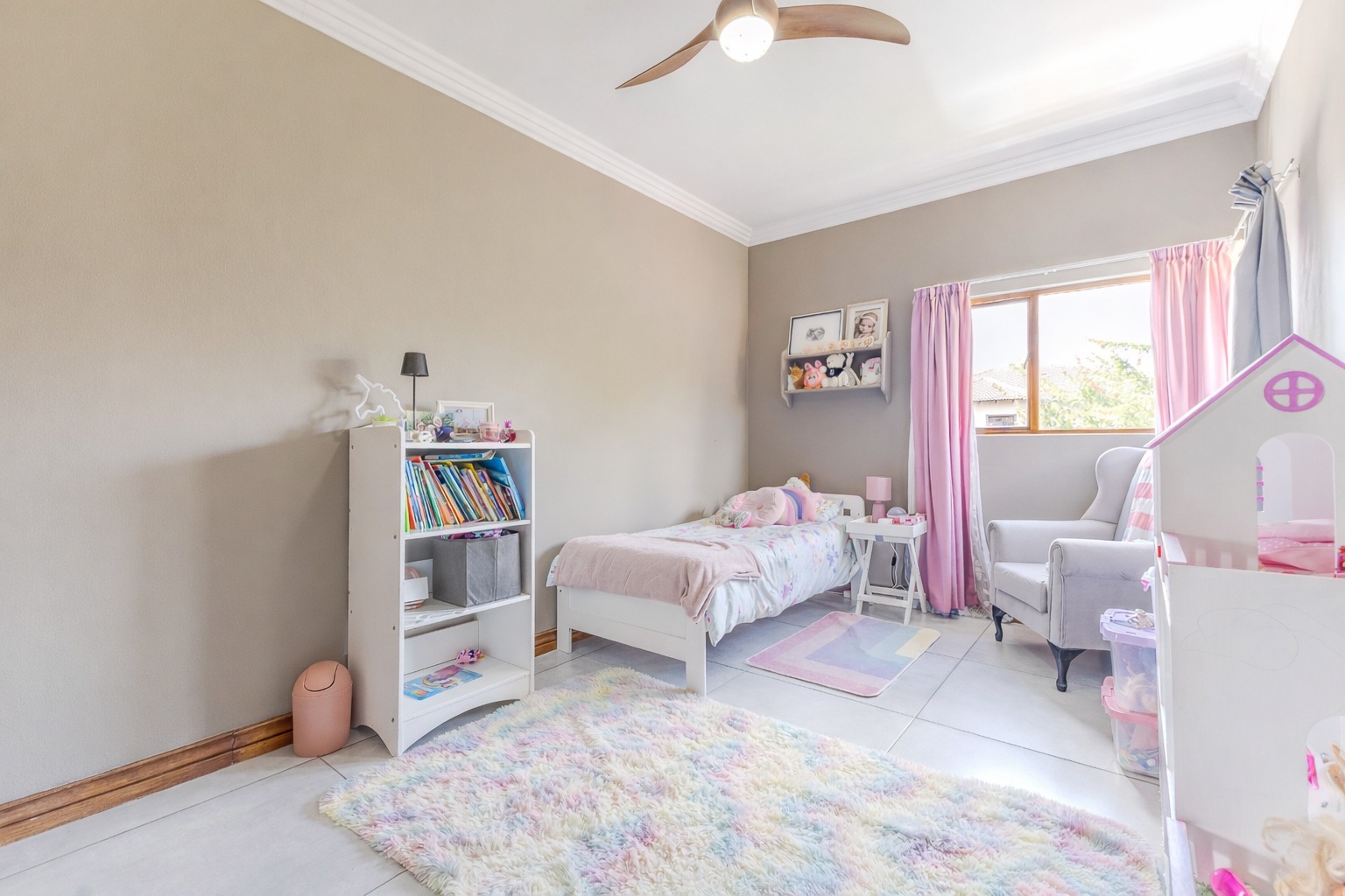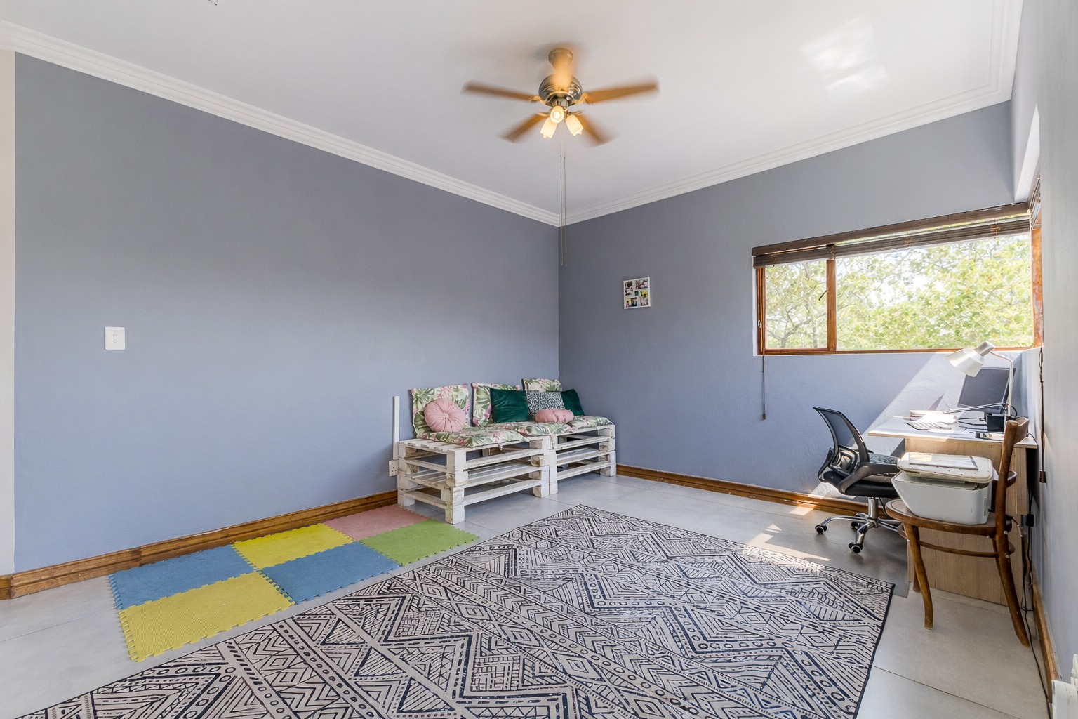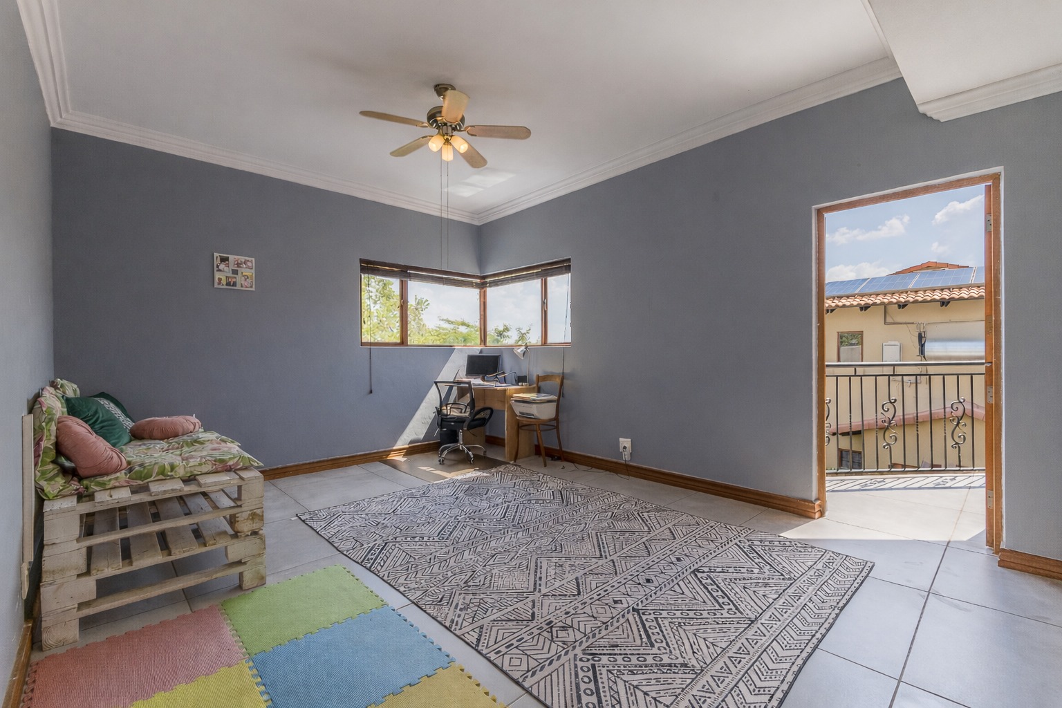 At the centre of it all is a striking designer kitchen, featuring a generous island, 5-burner gas stove, and butler’s sink. The kitchen extends naturally to a covered patio, making entertaining effortless. Host memorable summer braais enclosed by custom canvas blinds or enjoy relaxed evenings around the private fire-pit boma — this home was made for gathering.