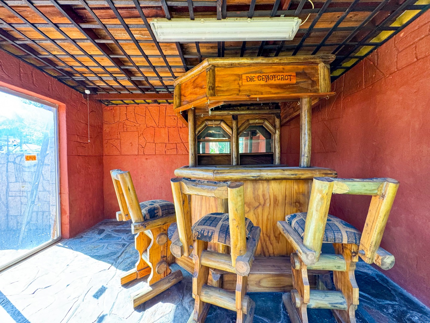 Entertainment is a breeze with the inclusion of a bar area, ideal for hosting gatherings with friends and loved ones. Adjacent to this entertaining space lies a splash pool, inviting you to unwind and relax on those warm summer days. Need storage space? No problem! This property features two convenient storage rooms, providing ample space for your belongings and ensuring a clutter-free environment. Additional conveniences include an outside toilet for added functionality and a 4,000 liter JoJo tank, ensuring a reliable water supply for your household needs. With its modest yet functional design and array of amenities, this property offers the perfect blend of comfort and practicality.