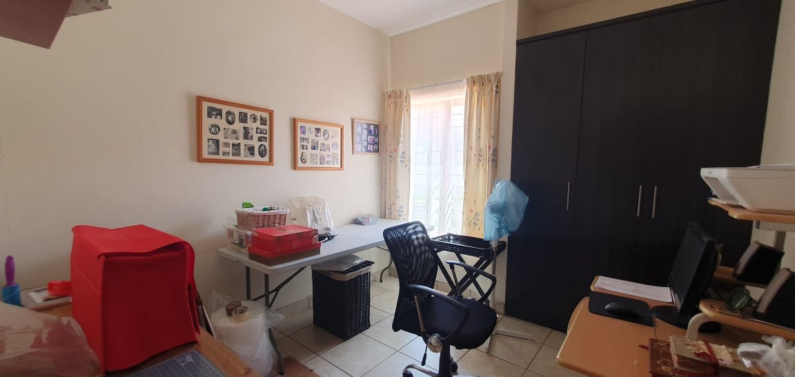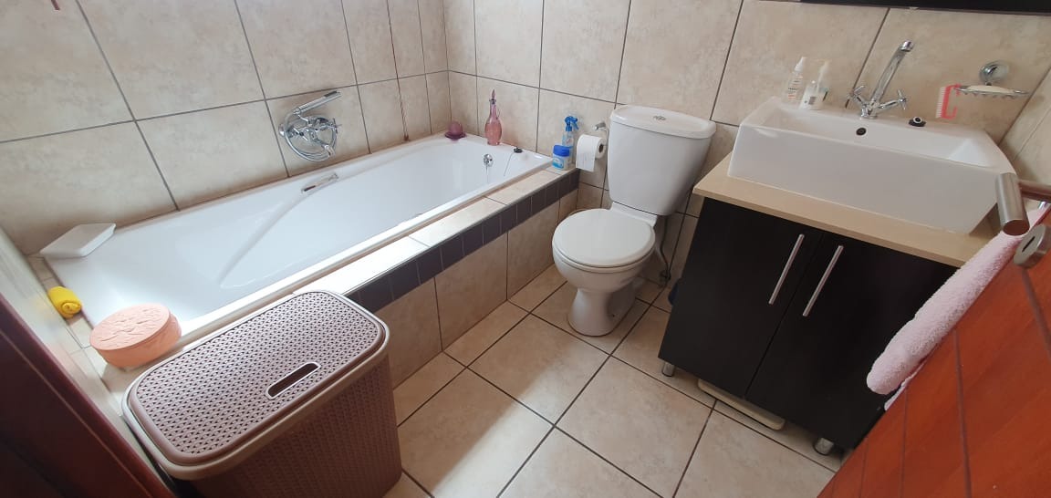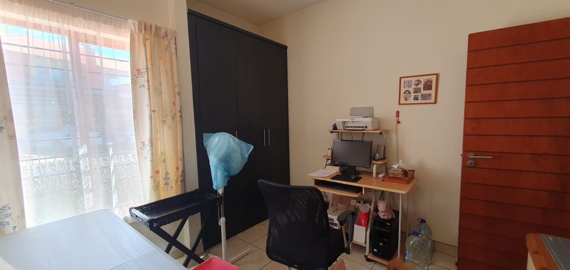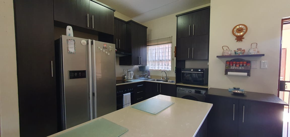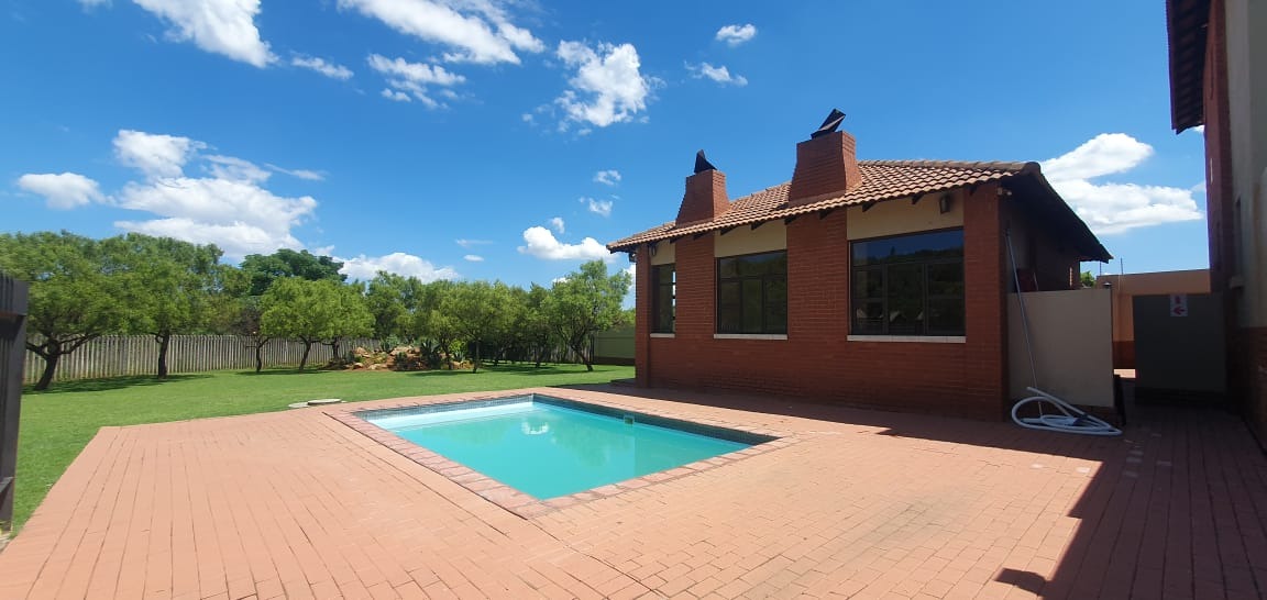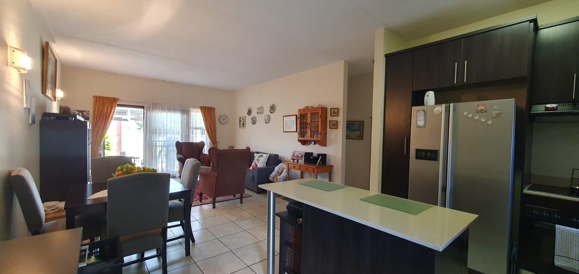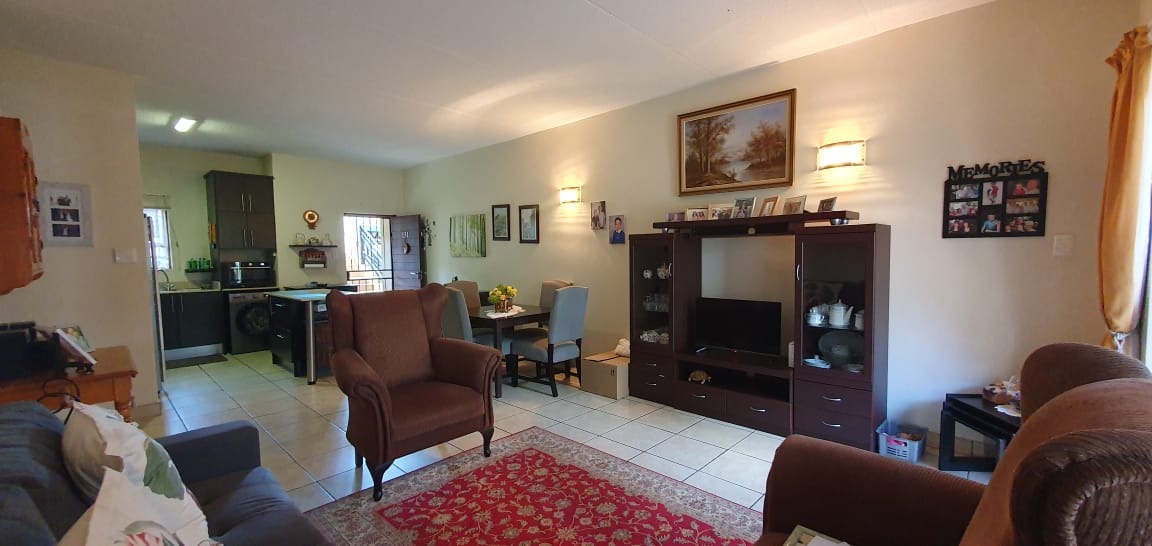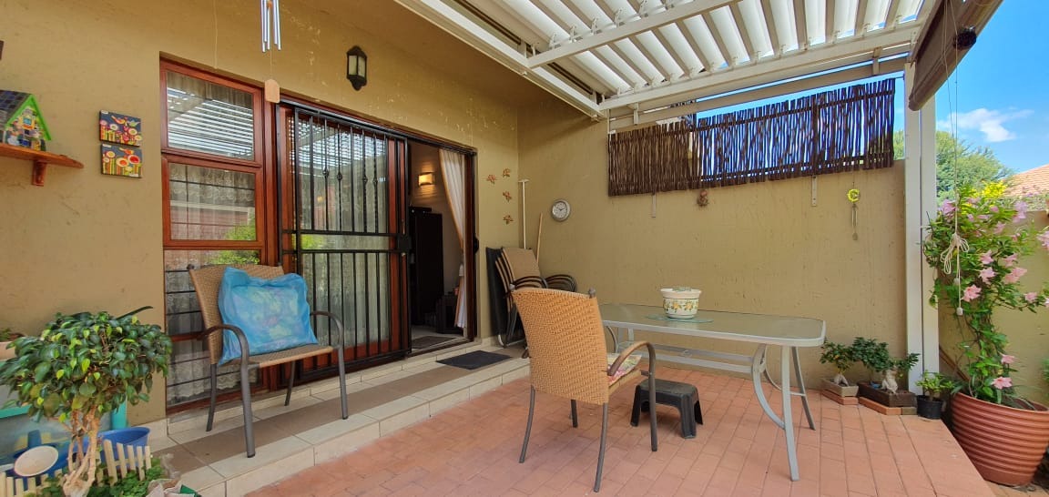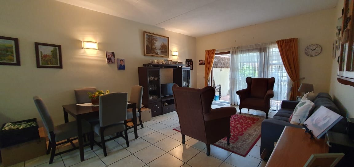 This contemporary residential unit, situated within a meticulously maintained security estate in Pretoriuspark, Pretoria, offers a sophisticated living experience. The exterior presents a modern aesthetic, characterized by a harmonious blend of brick and plaster finishes, complemented by well-kept landscaping and paved driveways. Dedicated covered parking for two vehicles ensures convenience and protection. Spanning 85 square meters, the interior features an intelligently designed open-plan layout, encompassing a spacious lounge, a dedicated dining area, and a functional kitchen. The neutral wall palette and tiled flooring throughout provide a versatile foundation for personalized decor, while sliding doors enhance natural light and connectivity to outdoor spaces. An inviting entrance hall sets a welcoming tone upon arrival. The residence comprises two well-proportioned bedrooms and two bathrooms, including a private en-suite. Bedrooms are equipped with integrated wardrobes, offering ample storage, and benefit from natural light. The bathrooms feature modern fixtures, with one showcasing a contemporary vessel sink on a floating vanity and thoughtful accessibility features, while the other includes a bathtub and a dark vanity for additional storage. Residents benefit from comprehensive security provisions, including 24-hour surveillance, CCTV, controlled access gates, and an intercom system, ensuring peace of mind. The estate further enhances lifestyle with communal amenities such as a clubhouse, squash court, and tennis court. Fibre connectivity is also available, catering to modern communication needs. Pretoriuspark stands as a desirable residential suburb in Pretoria, South Africa, renowned for its tranquil environment and convenient access to essential services and amenities, making this property an exemplary choice for discerning buyers. Key Features: * Two Bedrooms, Two Bathrooms (one en-suite) * 85 sqm Floor Size * Open-plan living areas with modern kitchen * Private patio and garden access * Two dedicated covered parking bays * Secure estate with 24-hour security and CCTV * Communal clubhouse, squash, and tennis courts * Fibre internet connectivity