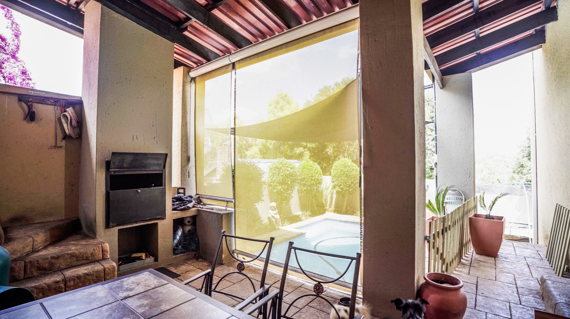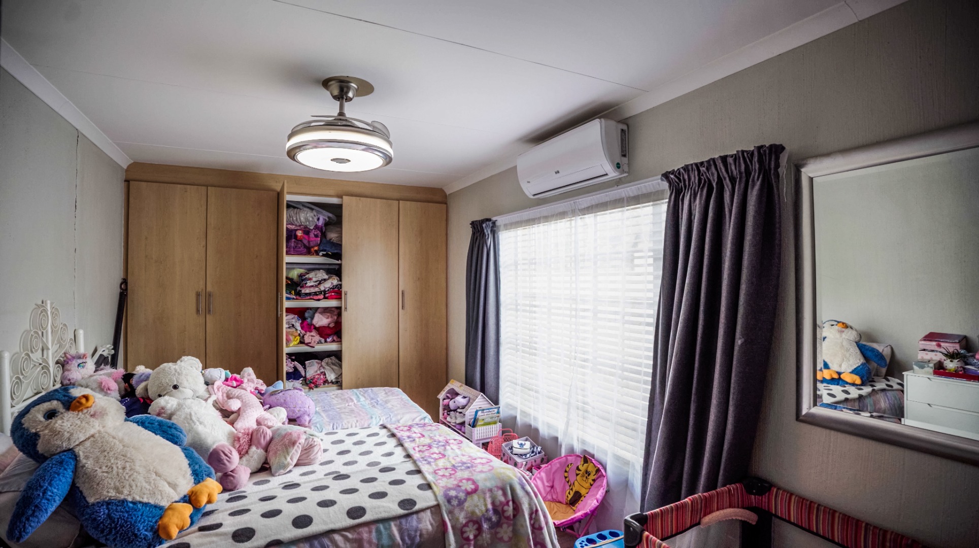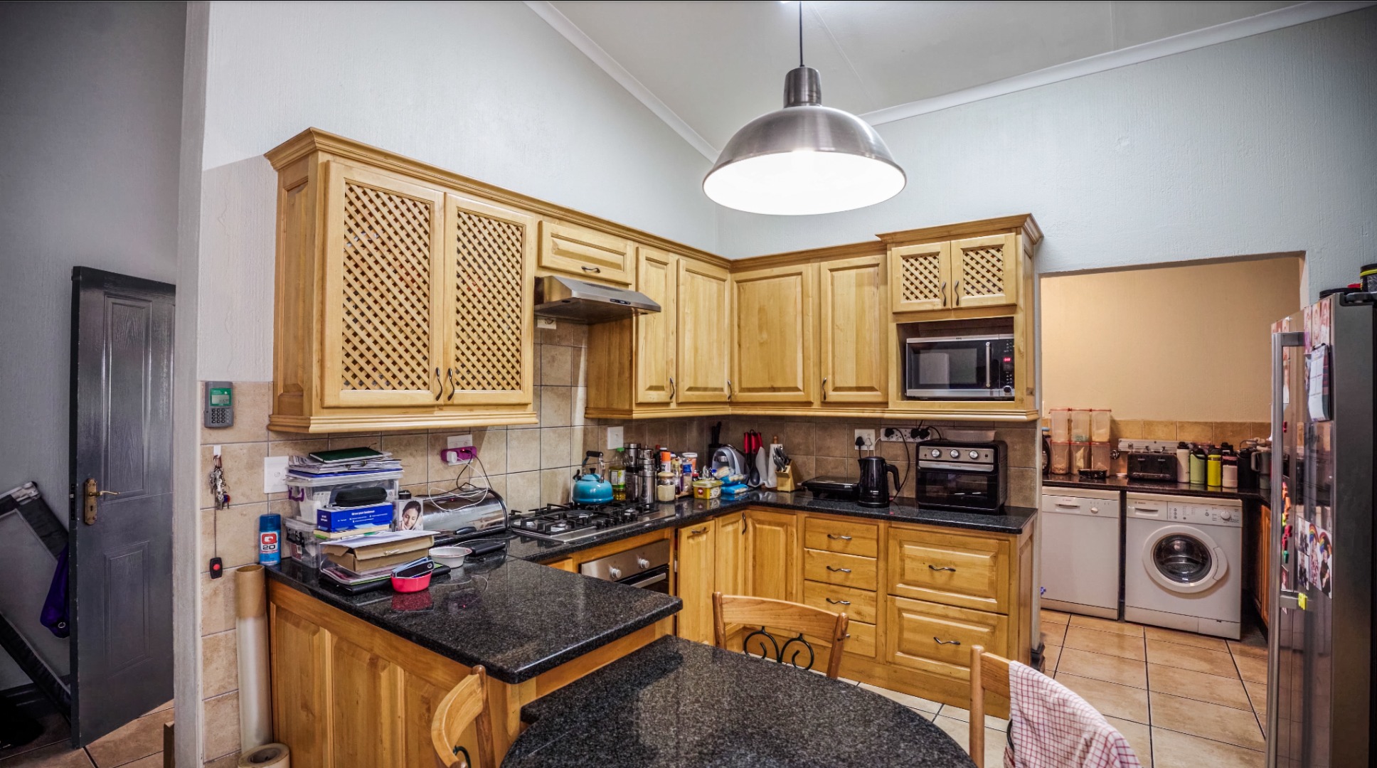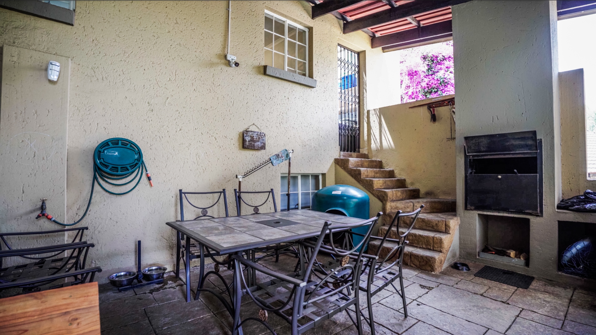 This family home provides four bedrooms and three bathrooms, including a private en-suite. Modern living is enhanced by solar panels, a battery inverter, and a gas geyser for energy efficiency. A backup generator ensures uninterrupted power, while security bars on windows offer peace of mind. Additional features include a dedicated study and a built-in braai.