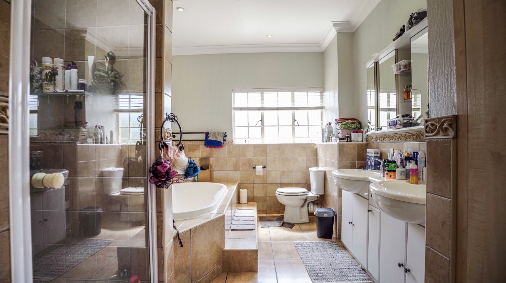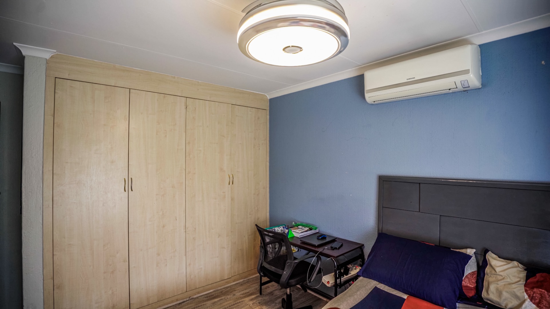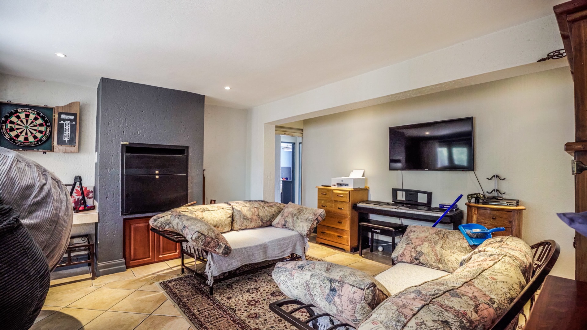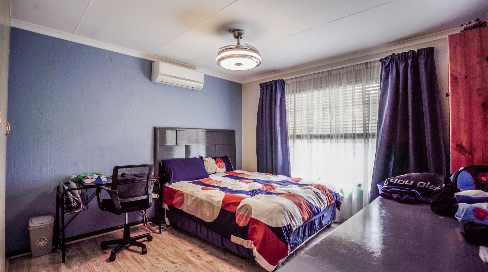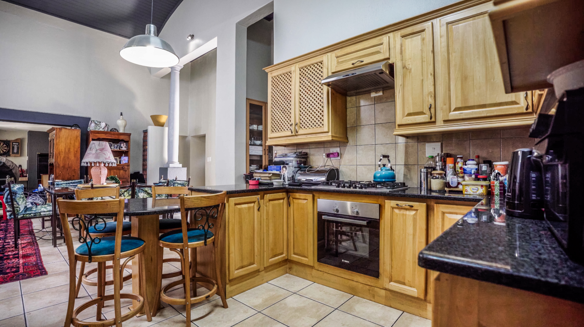 This family home provides four bedrooms and three bathrooms, including a private en-suite. Modern living is enhanced by solar panels, a battery inverter, and a gas geyser for energy efficiency. A backup generator ensures uninterrupted power, while security bars on windows offer peace of mind. Additional features include a dedicated study and a built-in braai.