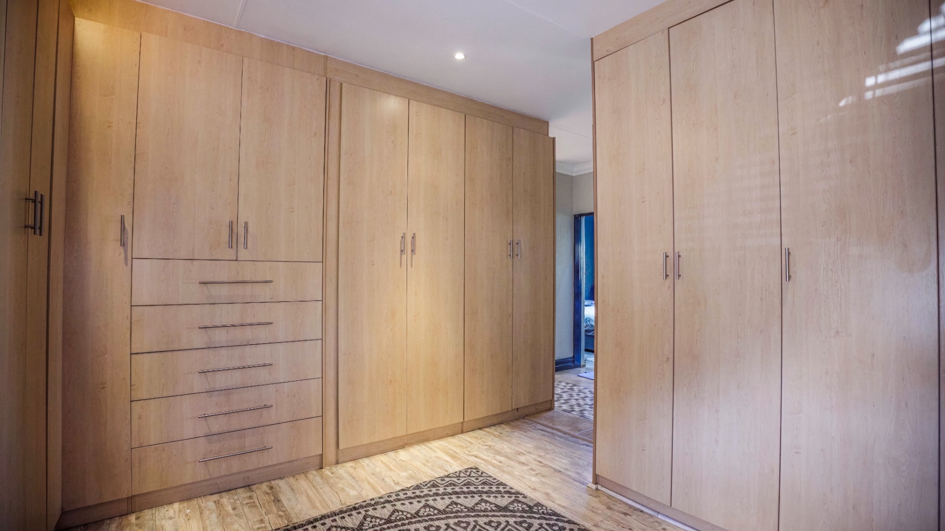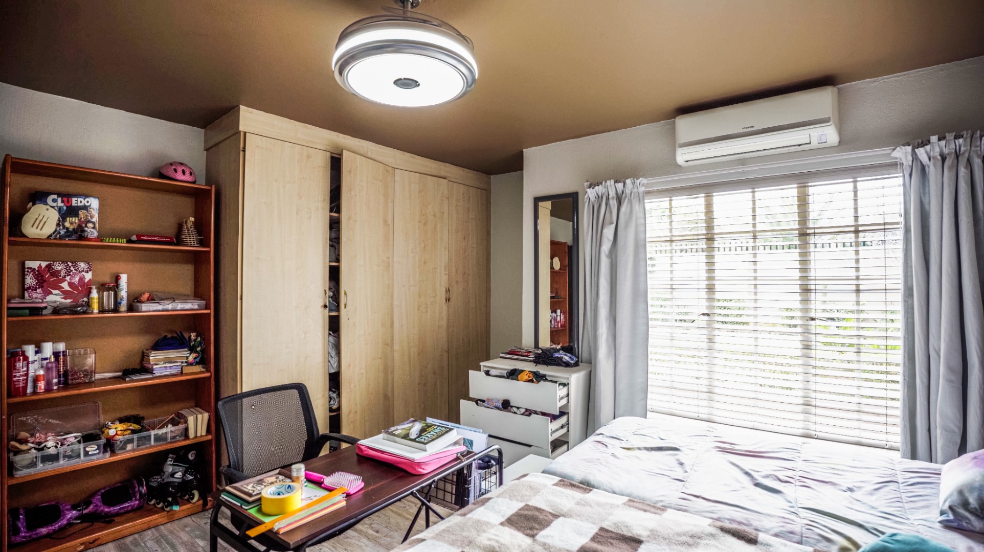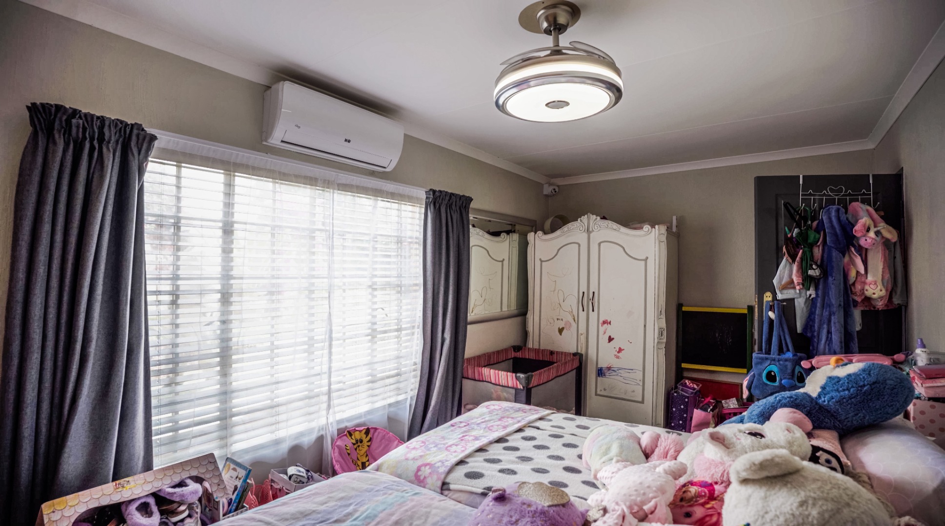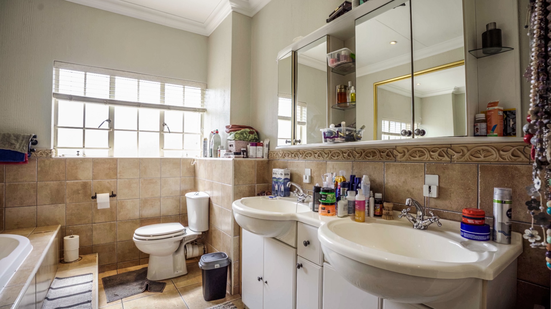 This family home provides four bedrooms and three bathrooms, including a private en-suite. Modern living is enhanced by solar panels, a battery inverter, and a gas geyser for energy efficiency. A backup generator ensures uninterrupted power, while security bars on windows offer peace of mind. Additional features include a dedicated study and a built-in braai.