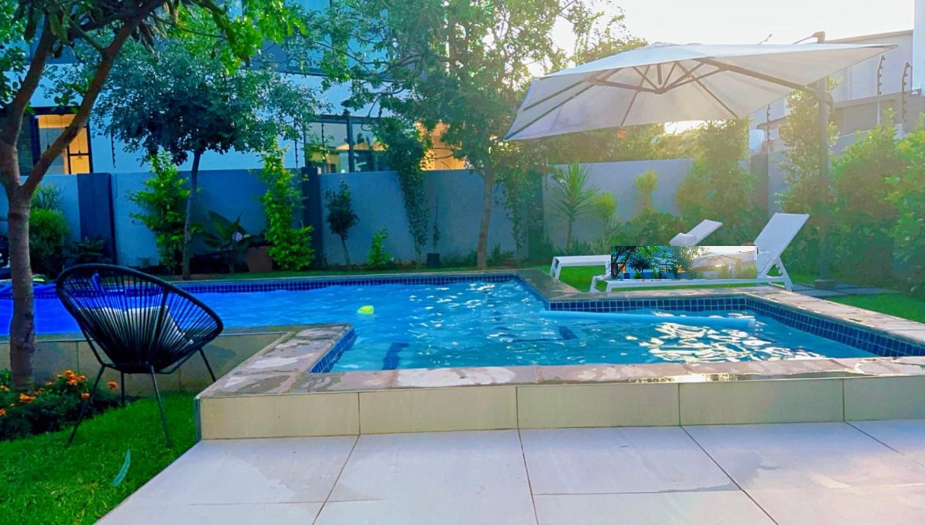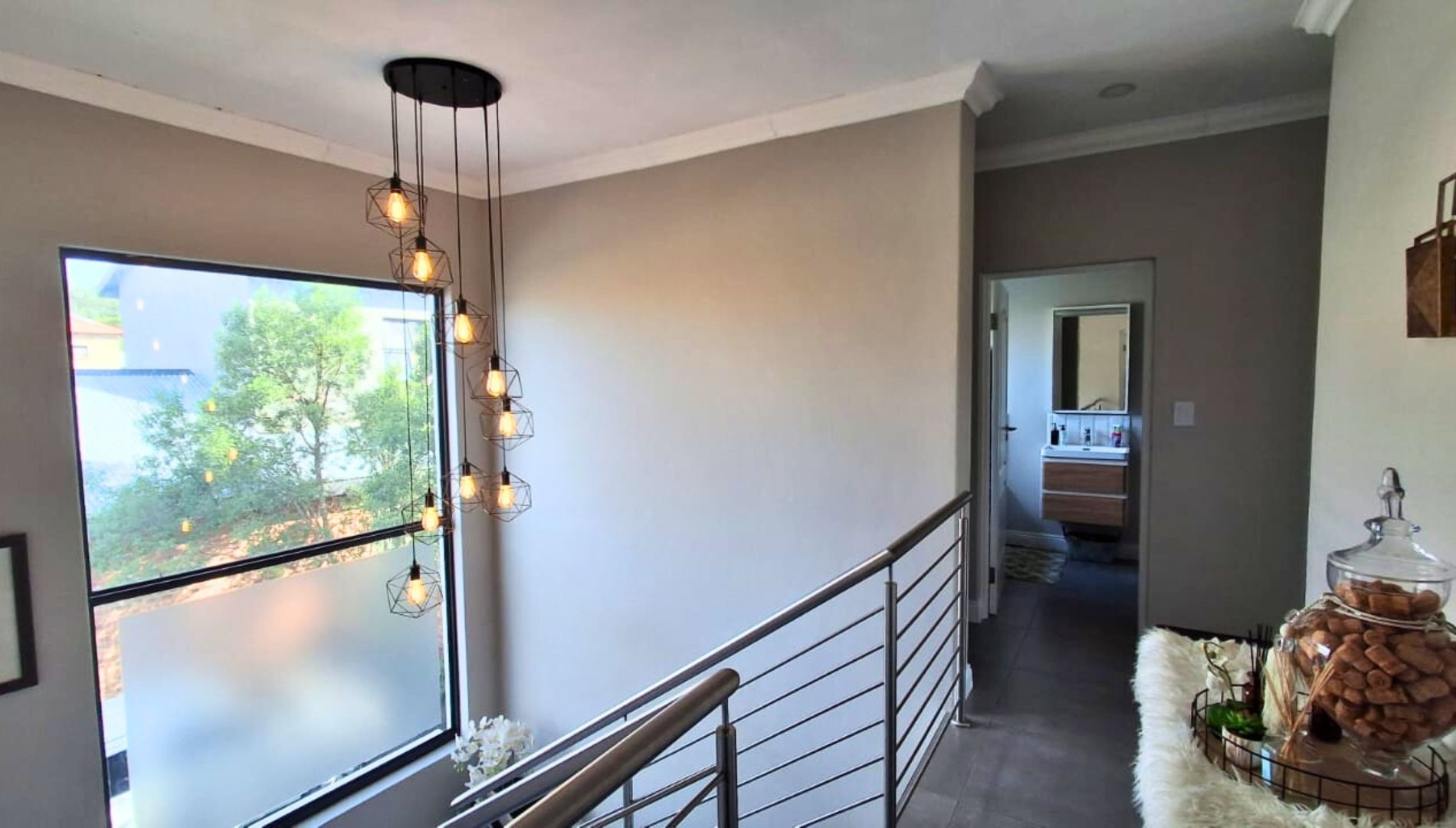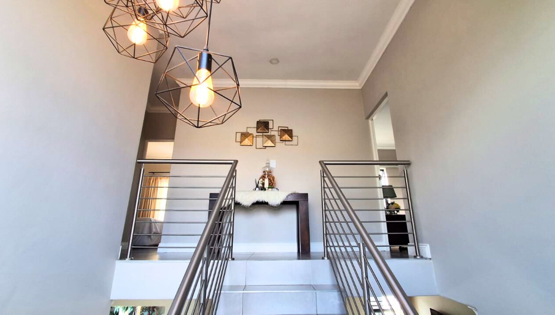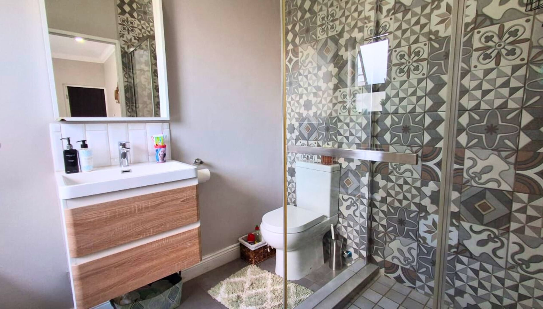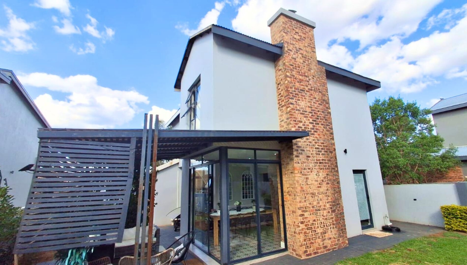 Discover an exquisite modern sanctuary nestled within a prestigious security estate in Roodeplaat, Pretoria. This sophisticated residence, spanning 164 sqm, epitomizes contemporary luxury with its sleek architectural lines and meticulously curated interiors. The open-plan design seamlessly integrates a chic lounge and elegant dining area, bathed in natural light from expansive glass doors that invite the outdoors in. The state-of-the-art kitchen is a culinary dream, featuring glossy white and wood-toned cabinetry, an integrated island cooktop, and a stylish subway tile backsplash, perfect for both intimate meals and grand entertaining.