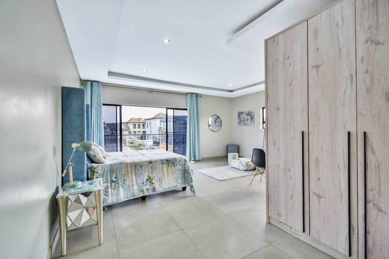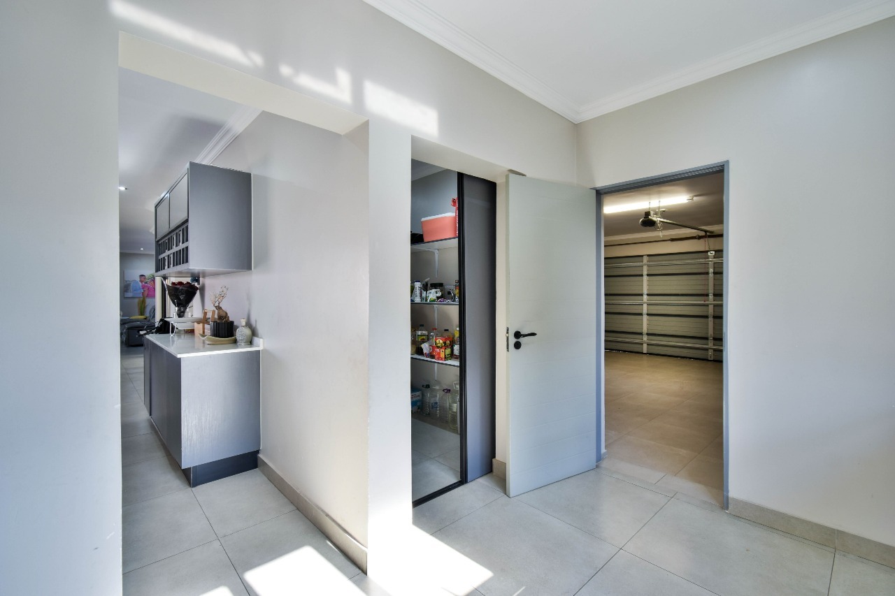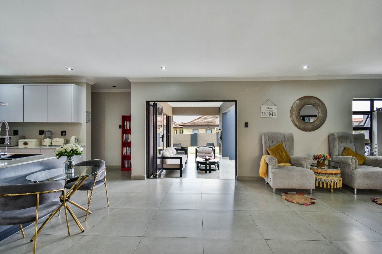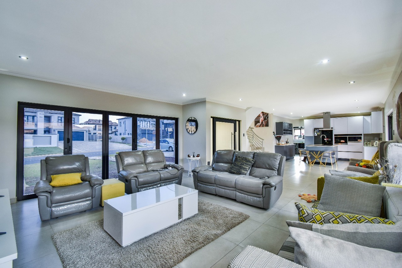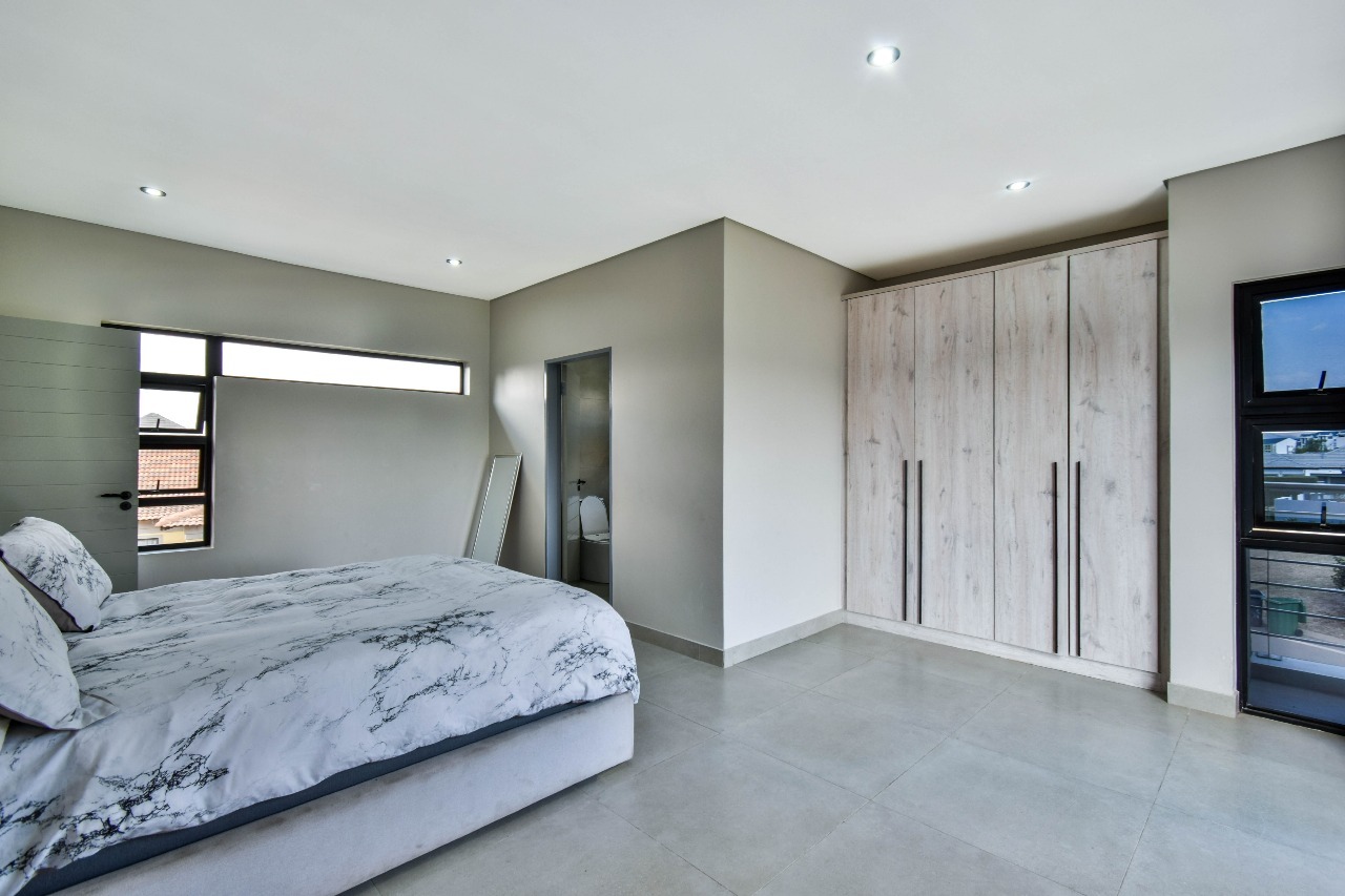 Discover modern living in this contemporary residence located within the desirable Savannah Country Estate in Pretoria, South Africa. This impressive home, set on a generous 1000 sqm erf, boasts a striking architectural design with excellent curb appeal, featuring a sleek facade, large windows, and multiple balconies that enhance its sophisticated presence. The interior is designed for both elegance and functionality, highlighted by an open-plan layout that seamlessly connects living spaces. The heart of the home is a sleek, fully equipped kitchen with high-gloss cabinetry, integrated appliances, and a spacious island, perfect for culinary enthusiasts. A stylish spiral staircase with integrated lighting serves as a captivating focal point, leading to the upper level. The property includes a dedicated dining room and a comfortable lounge, providing ample space for relaxation and entertaining. Accommodation comprises five generously sized bedrooms, ensuring comfort and privacy for all residents. With five well-appointed bathrooms, including four ensuites, convenience is paramount. The design emphasizes natural light, creating bright and inviting atmospheres throughout the home. Outdoor amenities include extensive paved driveways and an impressive six garages, complemented by six additional parking spaces, offering abundant secure parking and storage solutions. The property benefits from well-maintained lawns and the overall neatness of the affluent residential area, contributing to a pleasant living environment. Savannah Country Estate is known for its organized layouts and modern homes, providing a tranquil yet connected lifestyle in Pretoria. Key Features: * Modern Architectural Design * 5 Bedrooms, 5 Bathrooms (4 Ensuites) * Sleek, Open-Plan Kitchen with Island * Stylish Spiral Staircase * Dedicated Dining Room and Lounge * Six Garages and Six Parking Spaces * 1000 sqm Erf Size * Located in Savannah Country Estate