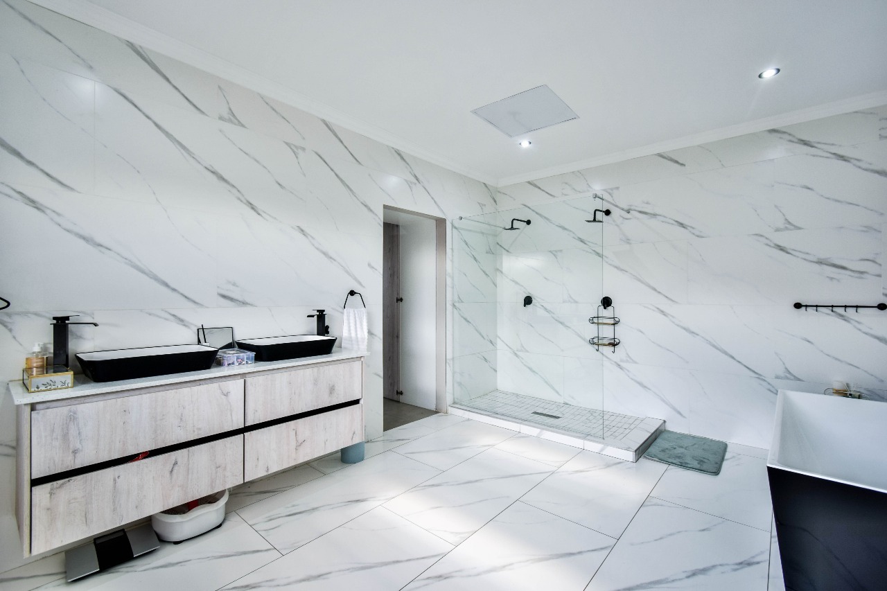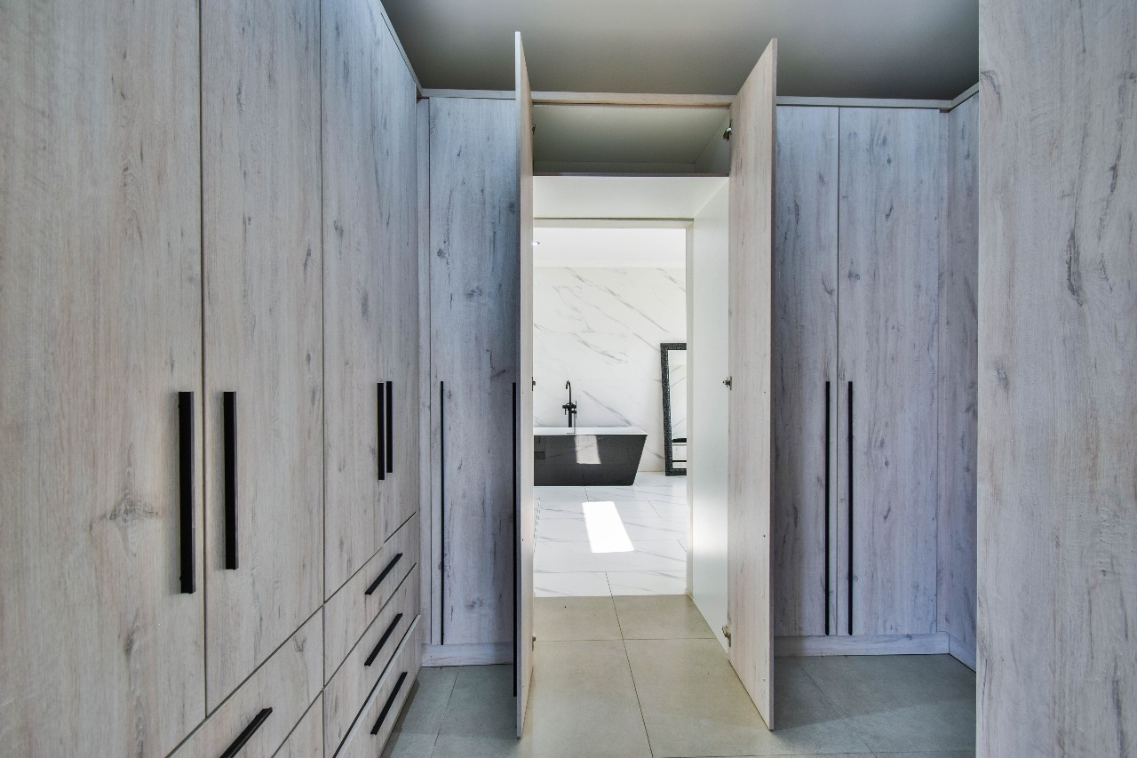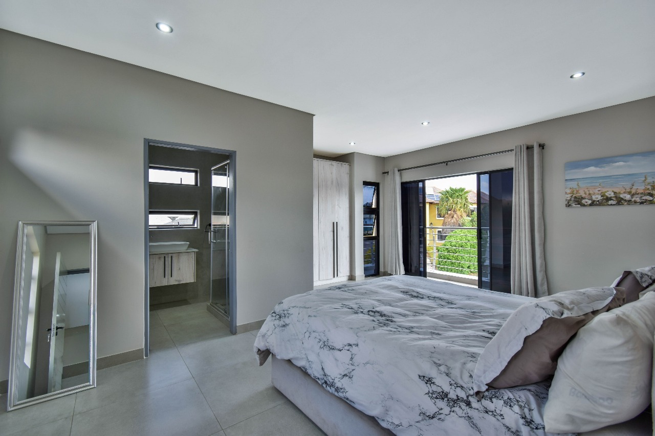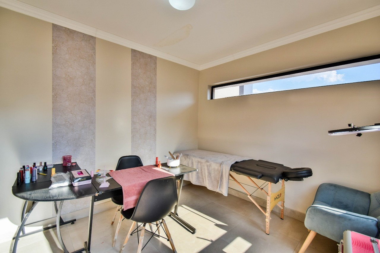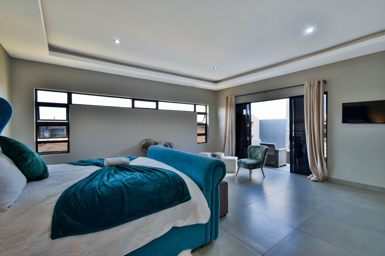 Discover modern living in this contemporary residence located within the desirable Savannah Country Estate in Pretoria, South Africa. This impressive home, set on a generous 1000 sqm erf, boasts a striking architectural design with excellent curb appeal, featuring a sleek facade, large windows, and multiple balconies that enhance its sophisticated presence. The interior is designed for both elegance and functionality, highlighted by an open-plan layout that seamlessly connects living spaces. The heart of the home is a sleek, fully equipped kitchen with high-gloss cabinetry, integrated appliances, and a spacious island, perfect for culinary enthusiasts. A stylish spiral staircase with integrated lighting serves as a captivating focal point, leading to the upper level. The property includes a dedicated dining room and a comfortable lounge, providing ample space for relaxation and entertaining. Accommodation comprises five generously sized bedrooms, ensuring comfort and privacy for all residents. With five well-appointed bathrooms, including four ensuites, convenience is paramount. The design emphasizes natural light, creating bright and inviting atmospheres throughout the home. Outdoor amenities include extensive paved driveways and an impressive six garages, complemented by six additional parking spaces, offering abundant secure parking and storage solutions. The property benefits from well-maintained lawns and the overall neatness of the affluent residential area, contributing to a pleasant living environment. Savannah Country Estate is known for its organized layouts and modern homes, providing a tranquil yet connected lifestyle in Pretoria. Key Features: * Modern Architectural Design * 5 Bedrooms, 5 Bathrooms (4 Ensuites) * Sleek, Open-Plan Kitchen with Island * Stylish Spiral Staircase * Dedicated Dining Room and Lounge * Six Garages and Six Parking Spaces * 1000 sqm Erf Size * Located in Savannah Country Estate