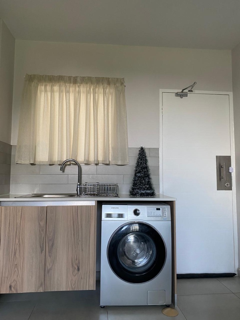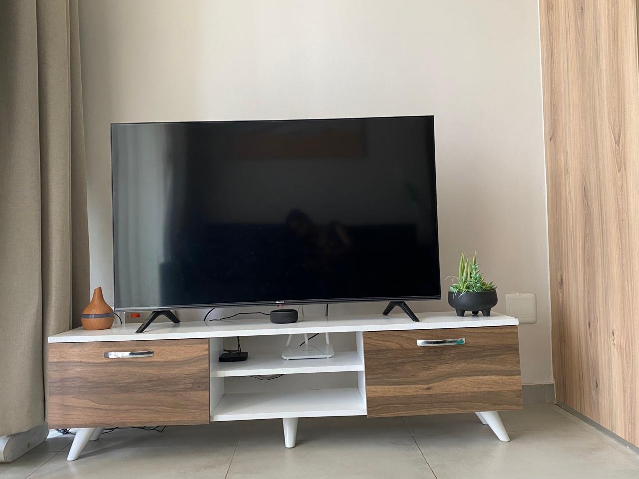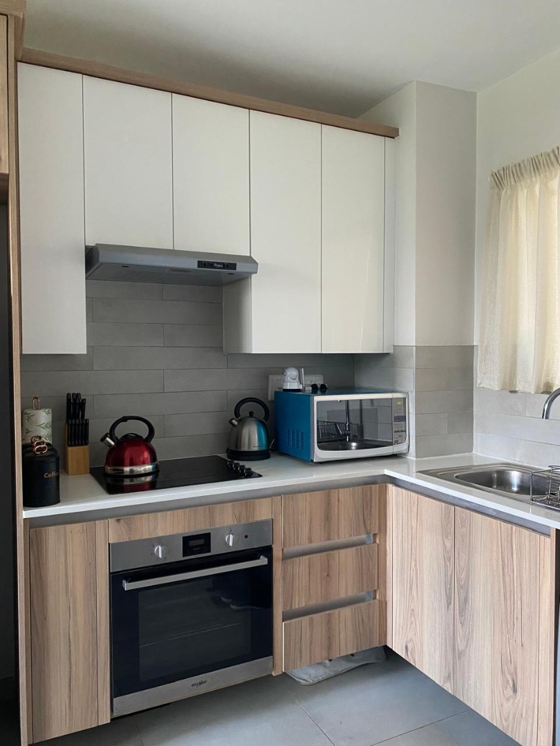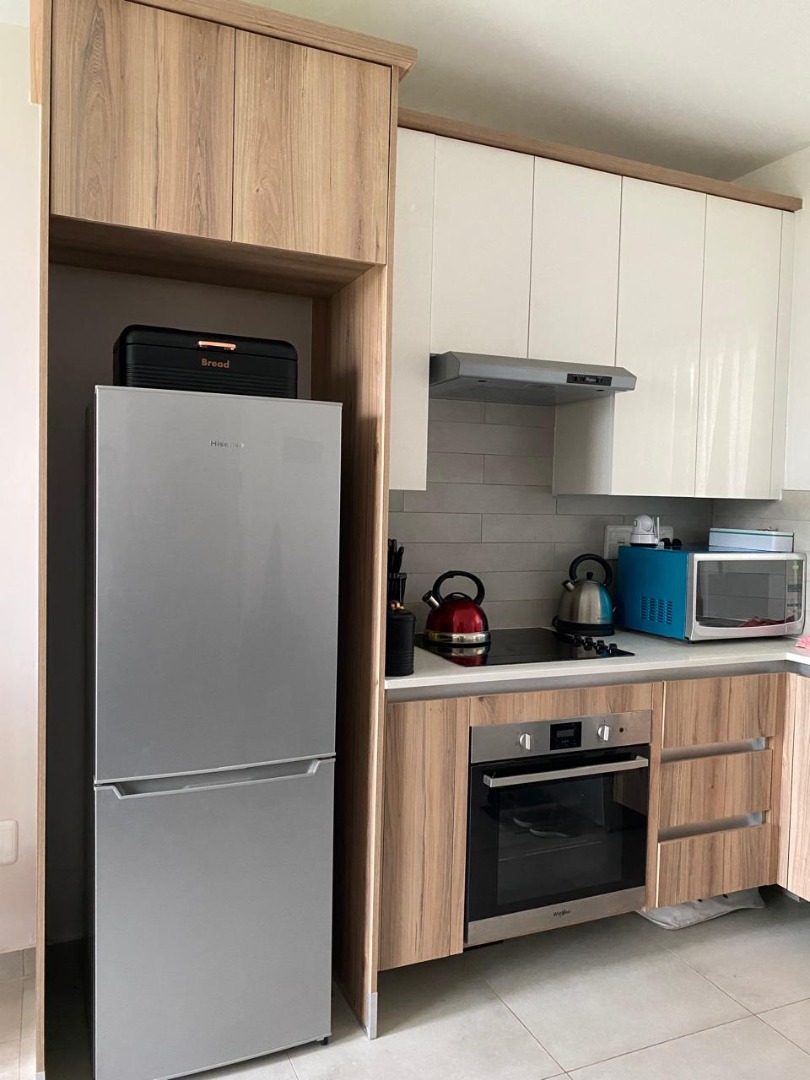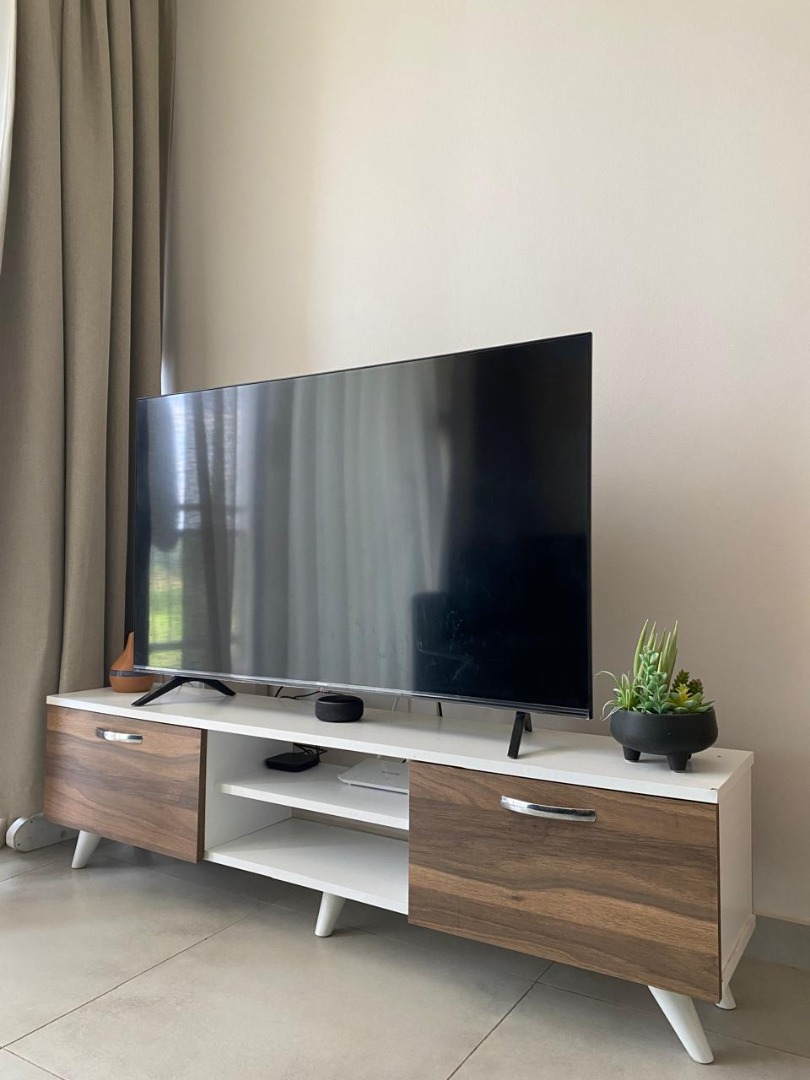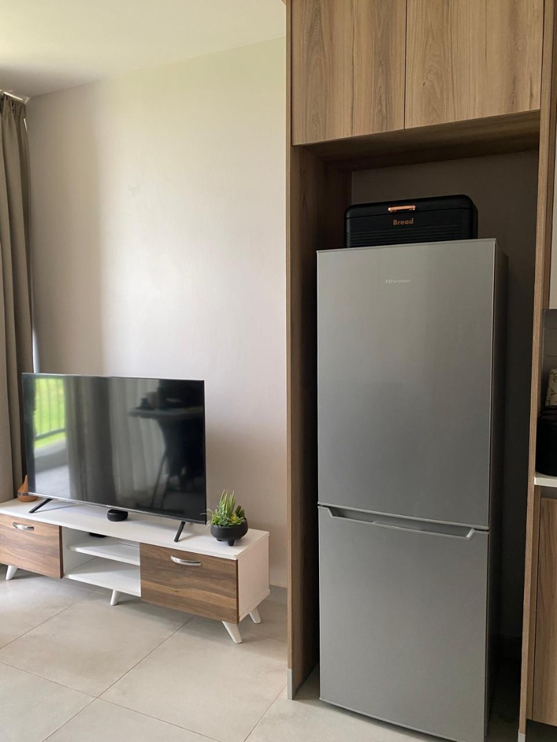 Step inside and you'll find a cozy open-plan layout that makes the most of the space. There's a neat kitchen where you can whip up your favourite meals, and a comfy lounge area, complete with a family TV room vibe, to kick back and relax. Plus, you've got a lovely balcony with sliding doors, perfect for enjoying those scenic views and a breath of fresh air. Special doors add a nice touch to the interior.