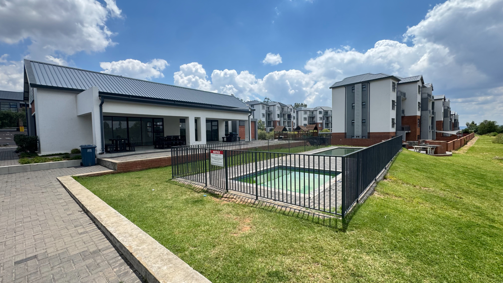 Discover modern living in this contemporary 2-bedroom, 2-bathroom apartment located within a secure estate in Shere, Pretoria. Spanning 80 square meters, this residence features an inviting open-plan layout seamlessly connecting the lounge, dining area, and kitchen. The interior boasts modern finishes, including sleek wood-look and white cabinetry, durable tiled flooring throughout, and a stylish dark accent wall. Large sliding doors enhance natural light and provide access to a private balcony and patio, perfect for relaxation. The two well-appointed bedrooms offer comfortable accommodation, with the main bedroom benefiting from an en-suite bathroom. Both bathrooms are designed with modern fixtures, including floating vanities, large grey tiles, and a rain shower in one, and a bathtub in the other. Built-in wardrobes provide ample storage, complementing the clean, neutral aesthetic of the living spaces. Residents of this complex enjoy access to a range of communal amenities designed for a vibrant lifestyle. These include a clubhouse, a refreshing swimming pool, a children's playground, and well-maintained gardens with paved pathways and braai facilities. The property also offers two dedicated parking spaces and is pet-friendly. Security is paramount within this gated community, featuring 24-hour security, CCTV surveillance, an access gate, electric fencing, and an intercom system, ensuring peace of mind. The apartment is also fibre-ready, providing high-speed internet connectivity. The modern architectural design of the complex, with its white and grey facades and landscaped grounds, creates an appealing environment. Situated in Shere, Pretoria, this property offers a desirable address with convenient access to local amenities and transport routes, making it an ideal choice for those seeking a balanced lifestyle. Key Features: * 2 Bedrooms, 2 Bathrooms (1 En-suite) * 80 sqm Floor Size * Open-Plan Living, Dining & Kitchen * Modern Finishes & Tiled Flooring * Private Balcony & Patio * Communal Pool, Clubhouse & Gardens * 2 Parking Spaces * 24-Hour Security Estate with CCTV & Fibre * Pets Allowed