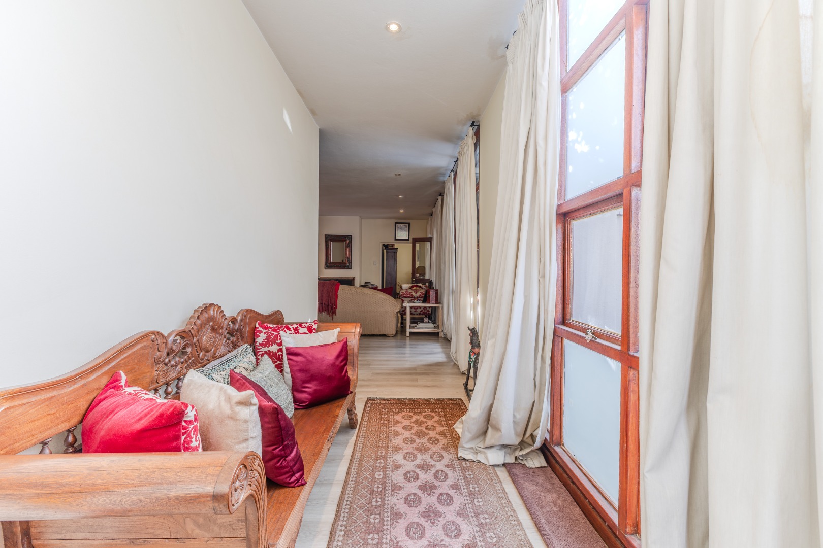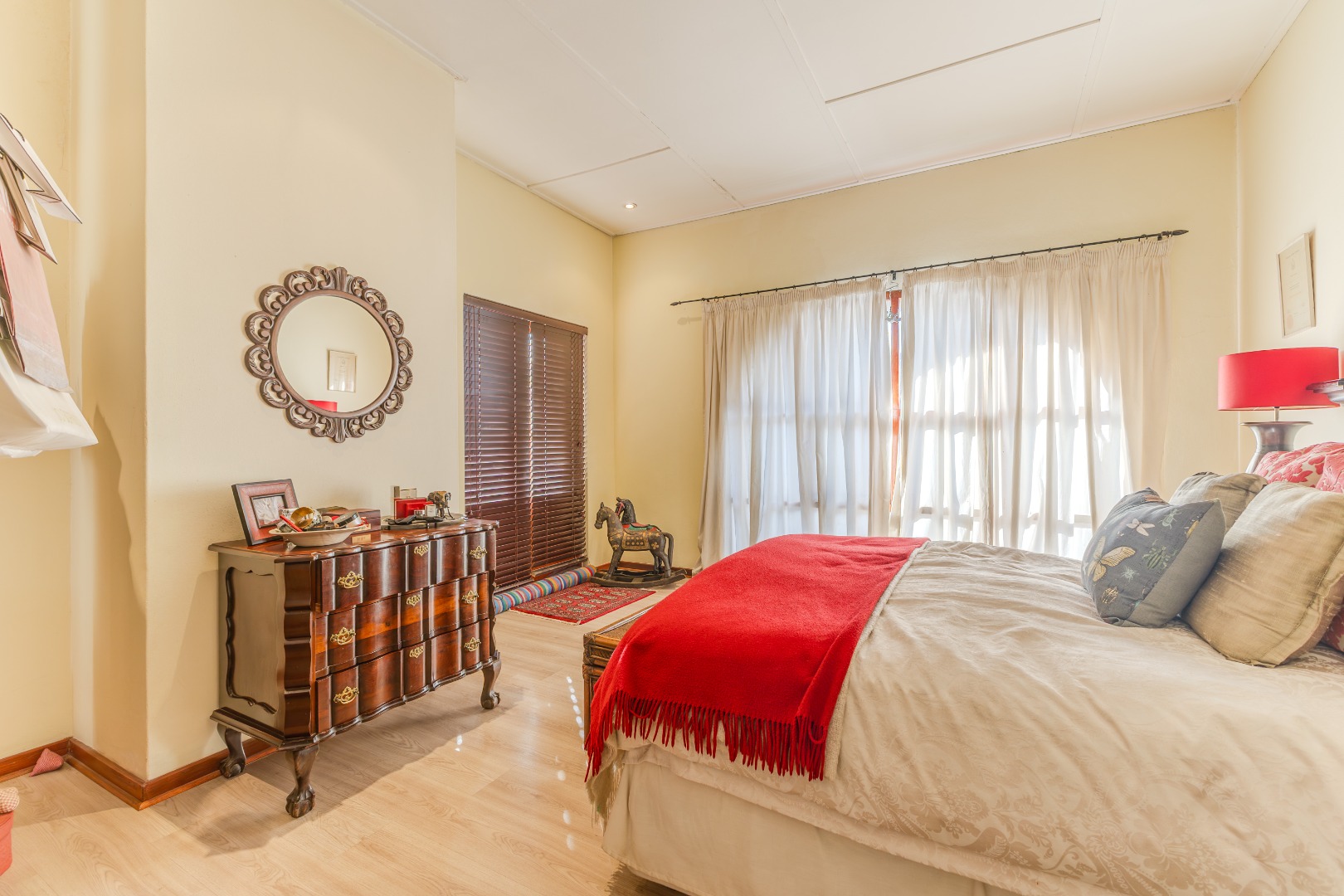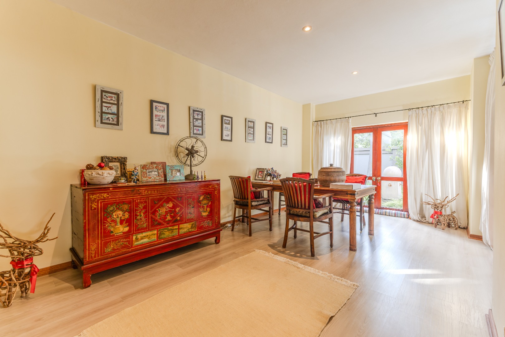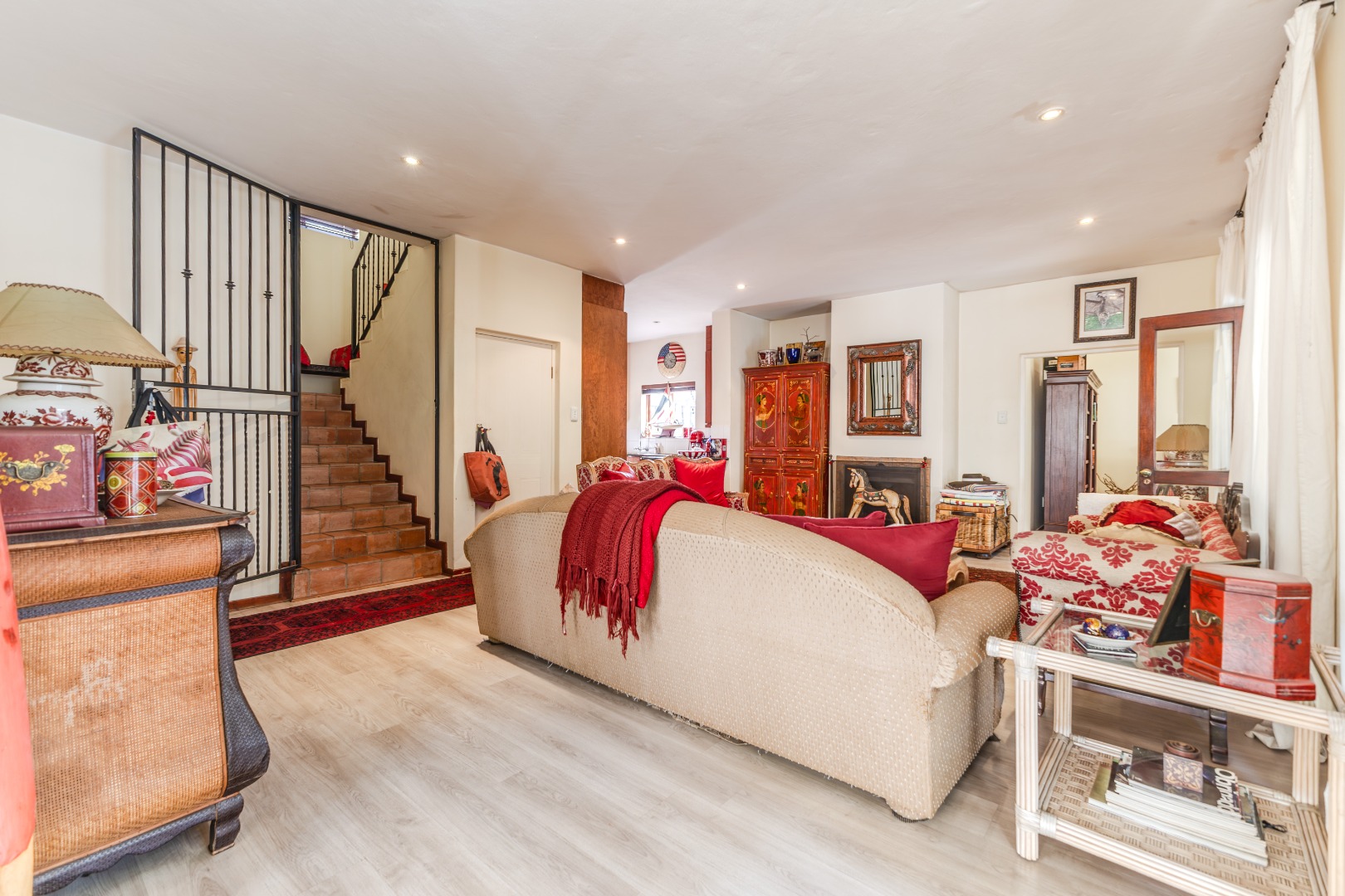 Step into a home where everyday living feels both relaxed and refined. The ground floor is designed for connection, featuring generous open-plan spaces that flow out to a lush, tree-framed garden. A sparkling pool takes center stage outdoors, with a covered patio that invites long summer lunches, evening braais, or quiet moments by the water. The seamless indoor-outdoor transition makes entertaining effortless while still preserving a sense of calm retreat.