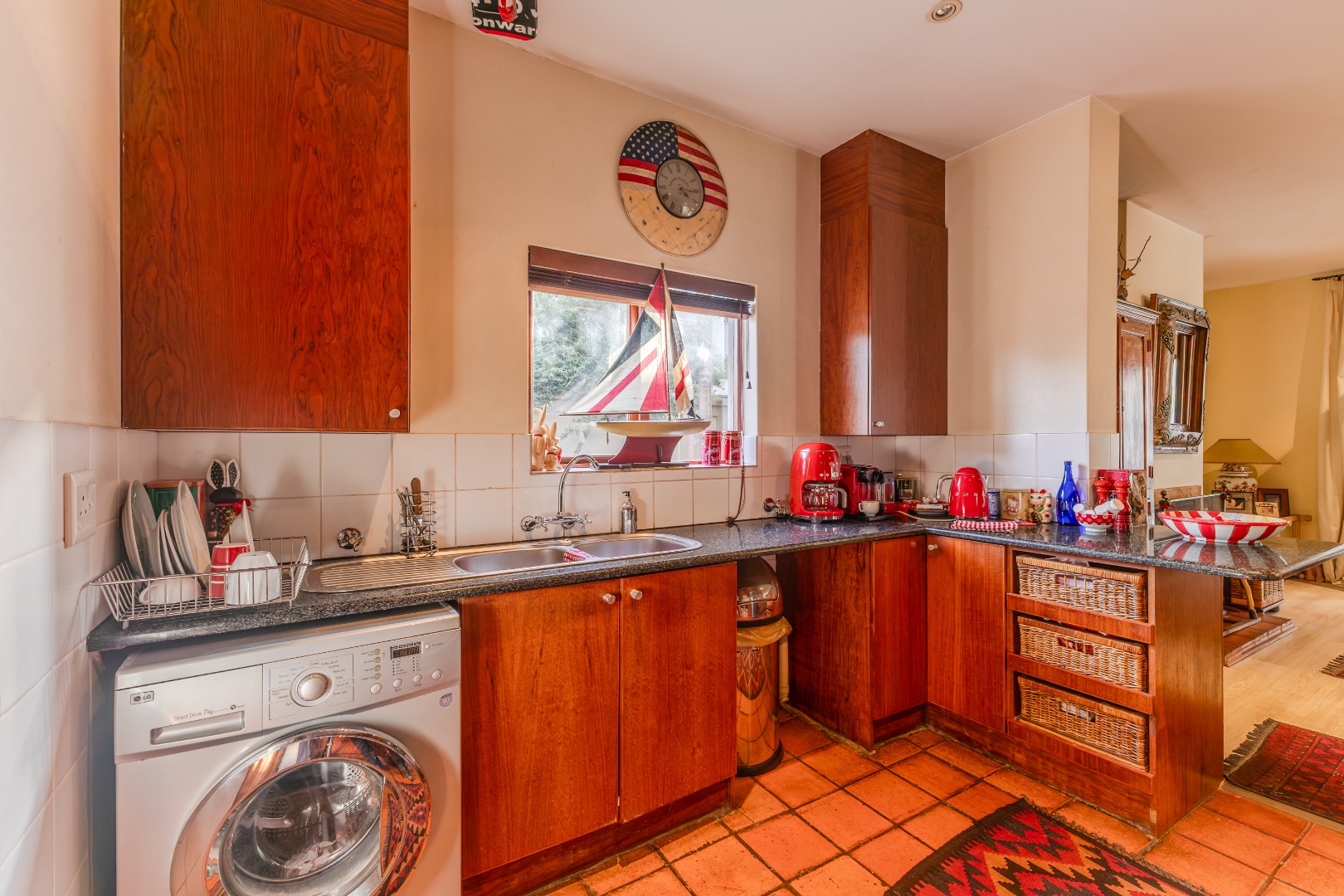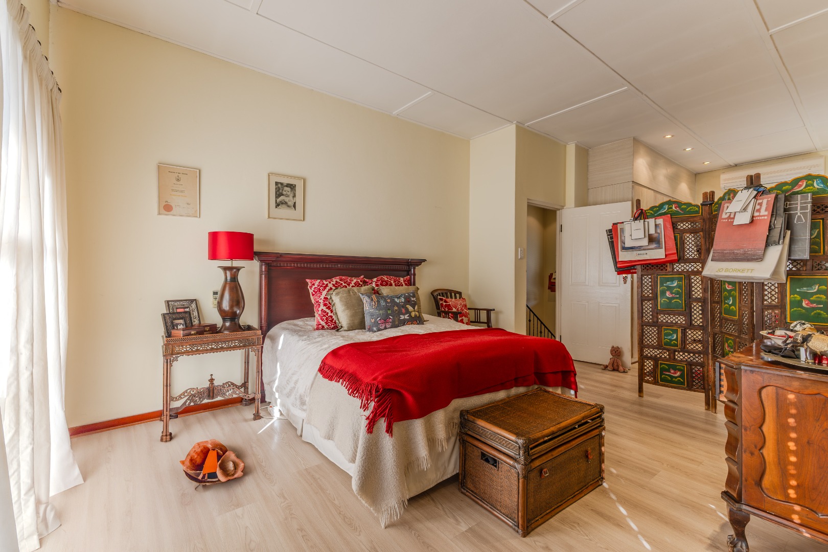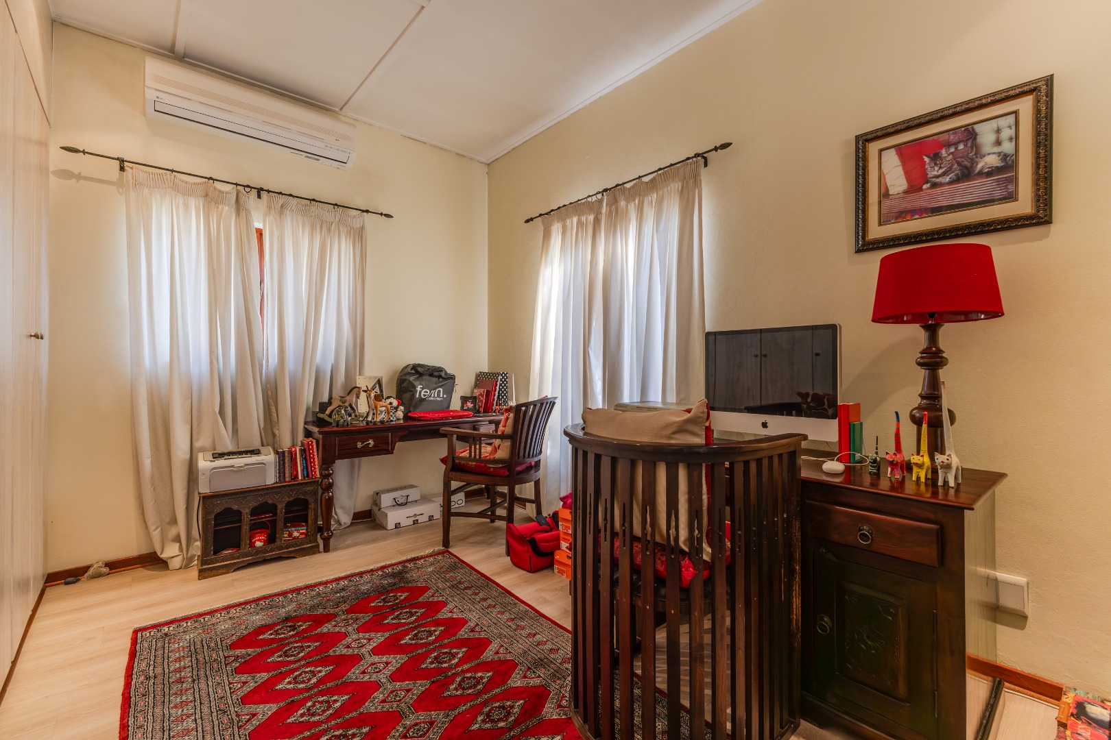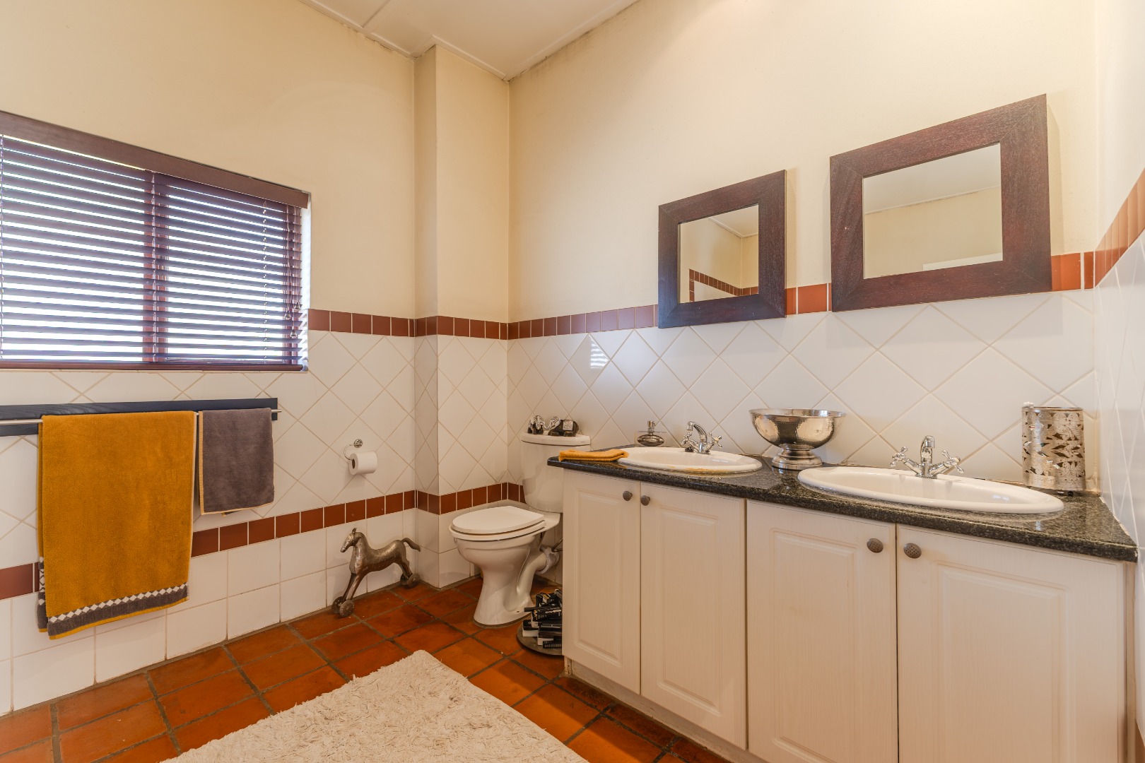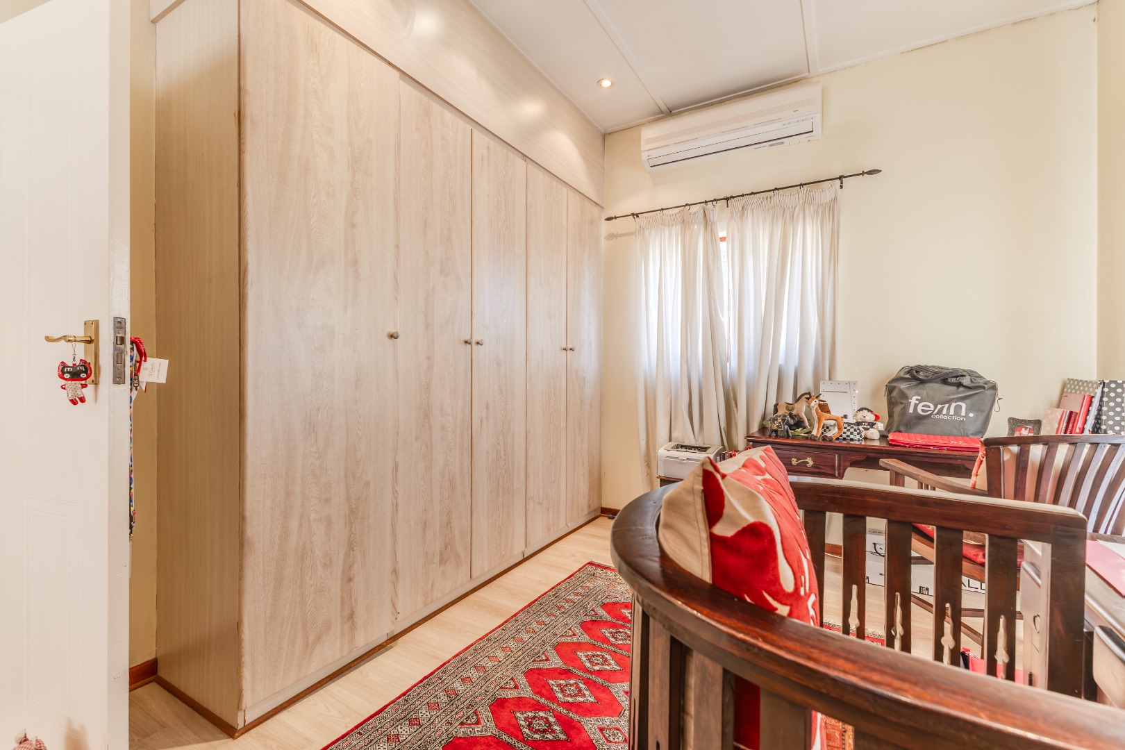 Upstairs, the home’s private quarters are thoughtfully laid out for comfort and practicality. The main suite is tucked away for added privacy, complete with its own en-suite bathroom and double basins for convenience. Two additional bedrooms share a classic full bathroom, each offering tranquil views through large windows that bring the greenery inside. With abundant built-in storage, timeless finishes, and a floor plan that blends style with functionality, this residence offers an inviting balance of family living and quiet sanctuary.