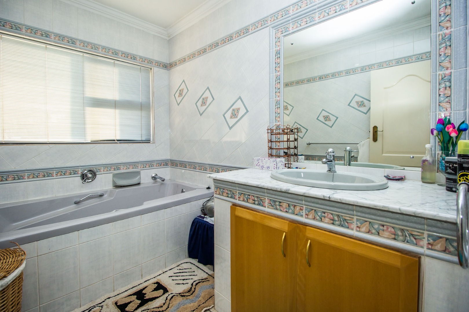 Discover this modern residential sale property nestled within the prestigious Silver Lakes Golf Estate in Pretoria, South Africa. The home boasts exceptional kerb appeal with its clean architectural lines, a beautifully manicured front lawn featuring a decorative fountain, and mature trees. A paved double driveway leads to an integrated double garage with elegant wooden doors, complemented by a welcoming covered entryway with integrated lighting and a glass skylight. The interior offers a spacious and airy ambiance, highlighted by an entrance hall and large glass doors that invite natural light and provide seamless indoor-outdoor flow. The layout includes a comfortable lounge, a dedicated dining room, and a well-appointed kitchen with a pantry. For year-round comfort, the home features air conditioning, a cozy fireplace, and an integrated indoor braai, perfect for entertaining. This residence comprises three well-sized bedrooms and three bathrooms, along with a convenient guest toilet. Additional practical spaces include a dedicated study and staff quarters, catering to diverse lifestyle needs. Step outside to a private oasis featuring a swimming pool and a tiled patio, ideal for relaxation and outdoor gatherings. The lush, well-maintained garden spans a generous 1000 sqm erf and benefits from an irrigation system. As part of a secure golf estate, residents enjoy 24-hour security, access gates, security gates, and a totally walled perimeter. The estate itself offers a golf course, club house, and tennis court, embodying an eco-friendly and fishing estate lifestyle. Fibre connectivity is also available. Key Features: * 3 Bedrooms, 3 Bathrooms, Guest Toilet * Double Garage & Double Parking * Private Swimming Pool & Landscaped Garden * Study, Staff Quarters, Pantry * Indoor Braai & Fireplace * Air Conditioning & Fibre Connectivity * Balcony & Patio * 24-Hour Security in a Golf Estate