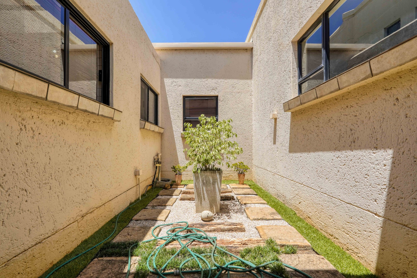 Set in a quiet street within the prestigious Silver Lakes Golf Estate, this architect designed home of approximately 512 sqm offers a beautiful balance of space, light, and timeless comfort. From the moment you step inside, skylights and an indoor garden feature create a bright and airy atmosphere that flows through the open living areas and sets the tone for relaxed, elegant living.