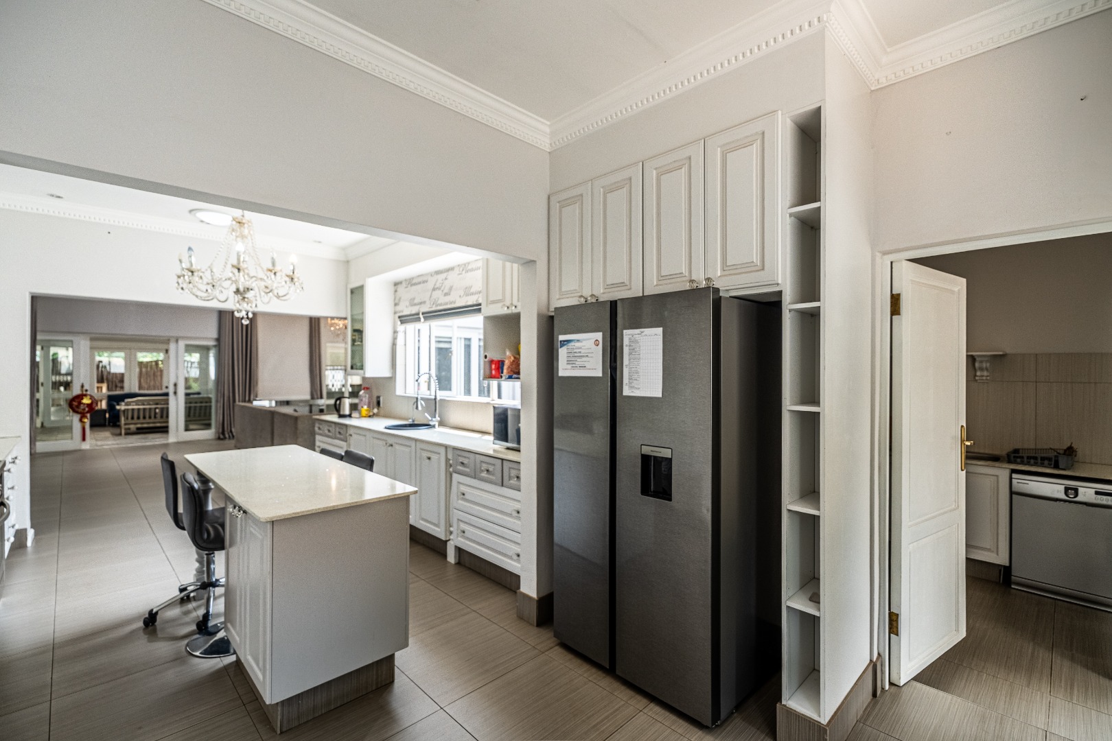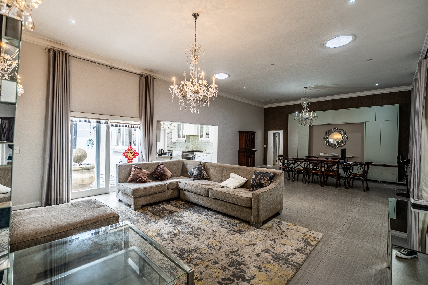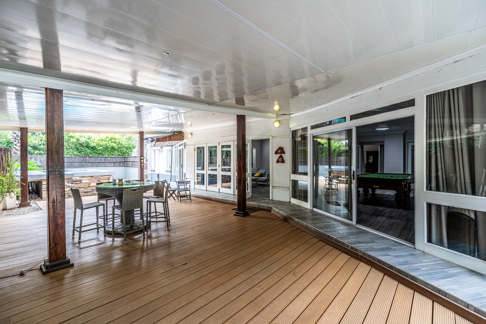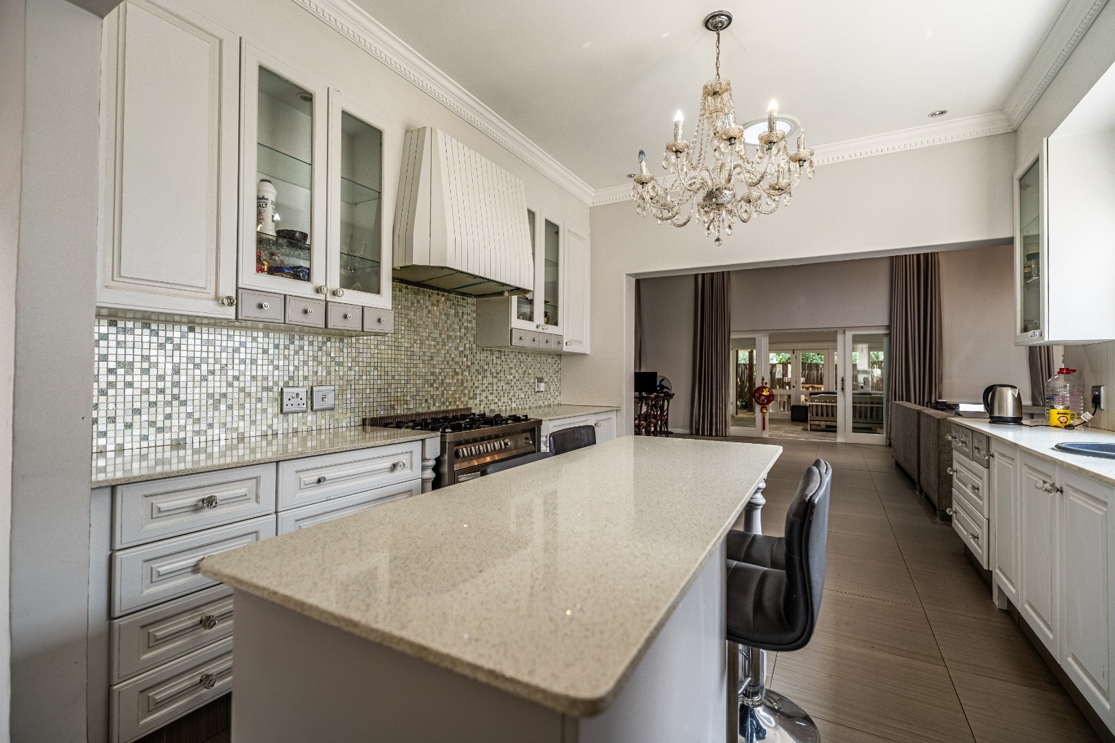 The grand entrance leads into an inviting open-plan living, dining, and entertainment area. Undercover patio, bar area with built-in bar and braai with sliding doors opening to pool area as well as additional private entertainment area with fireplace and outside boma.