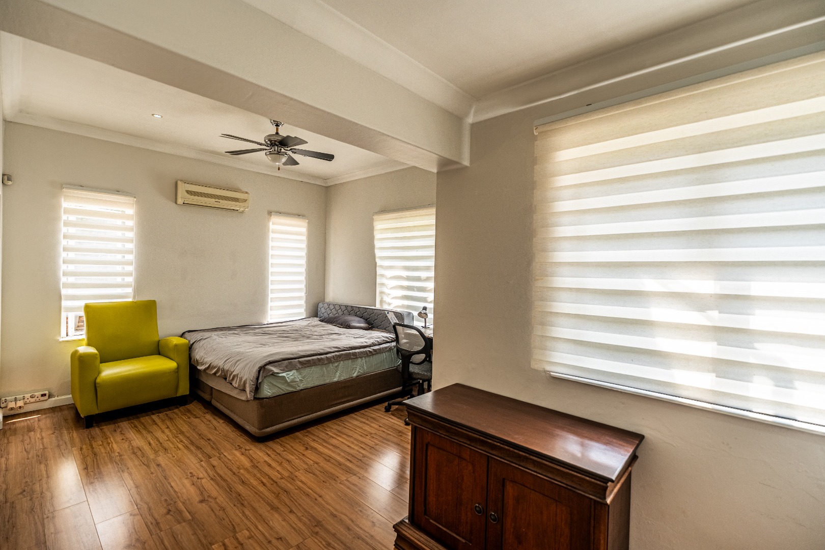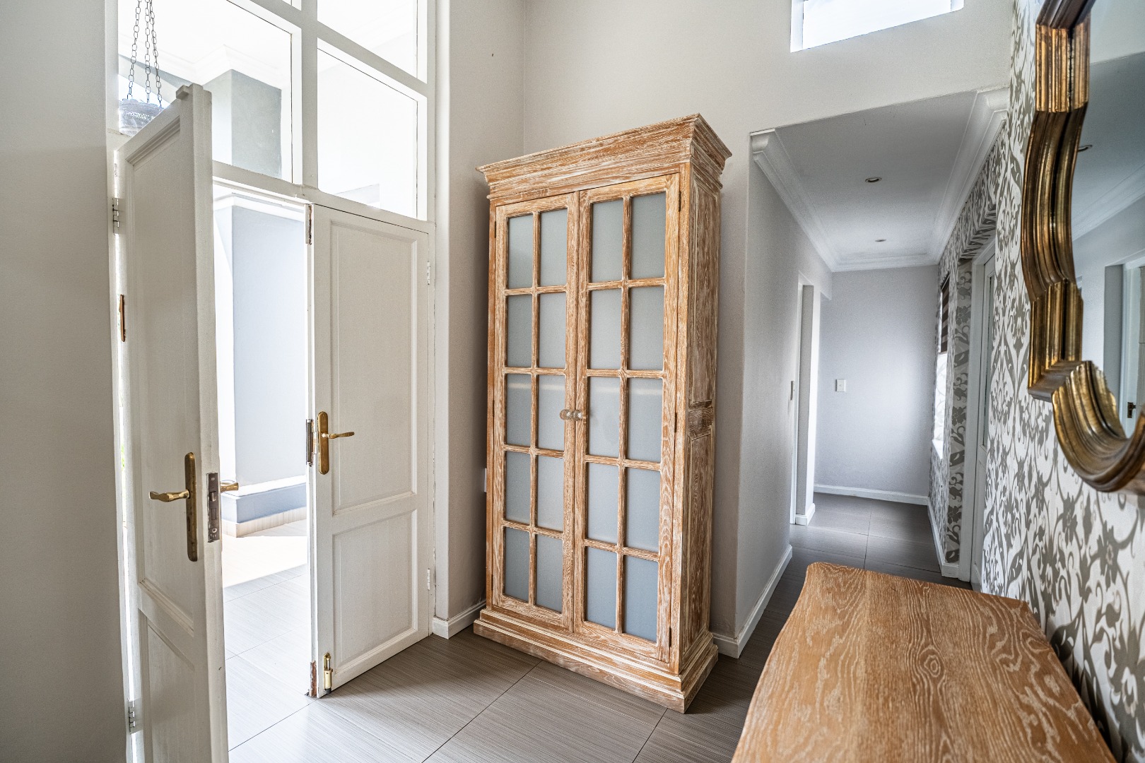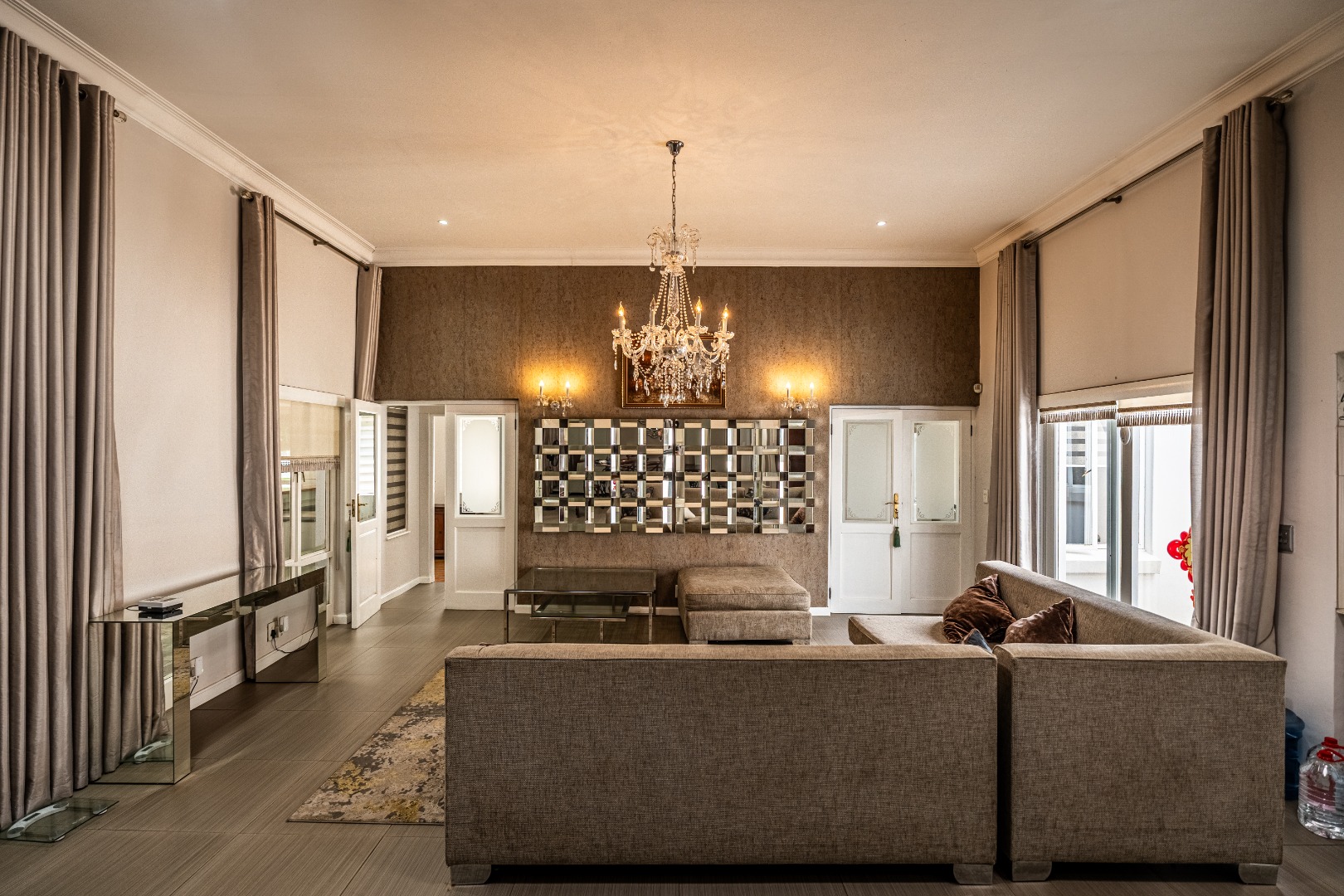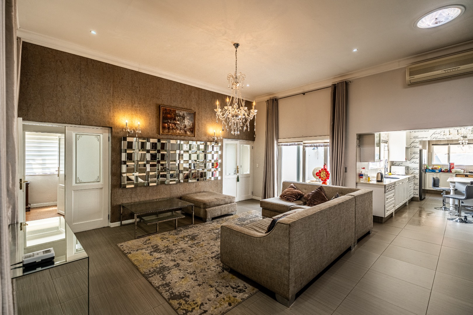 The grand entrance leads into an inviting open-plan living, dining, and entertainment area. Undercover patio, bar area with built-in bar and braai with sliding doors opening to pool area as well as additional private entertainment area with fireplace and outside boma.