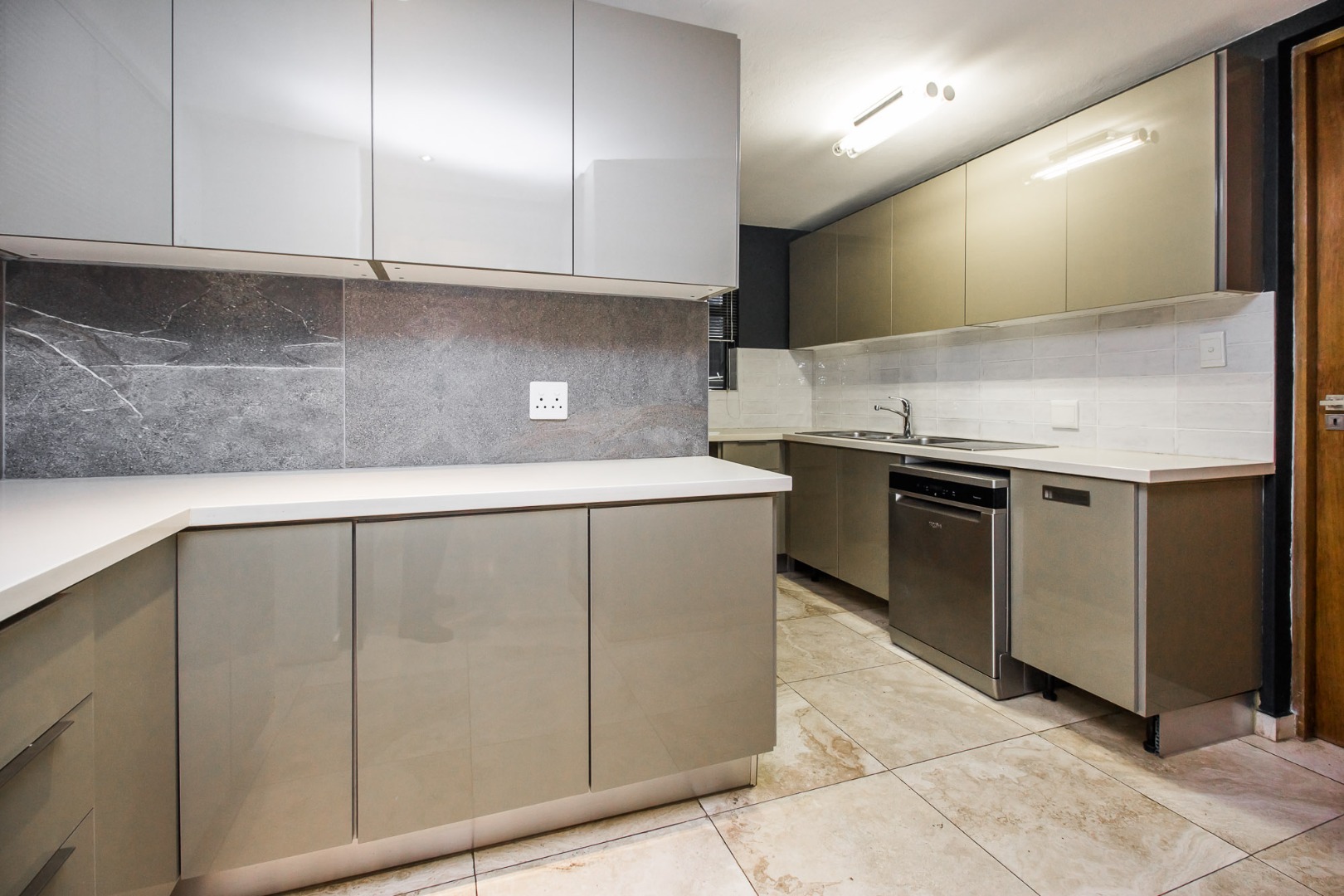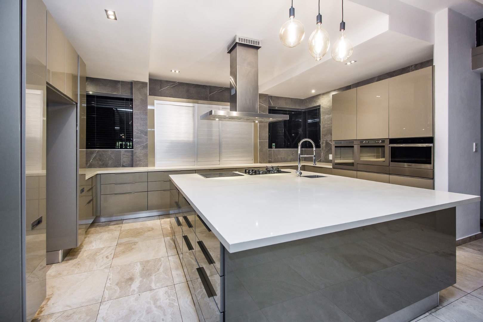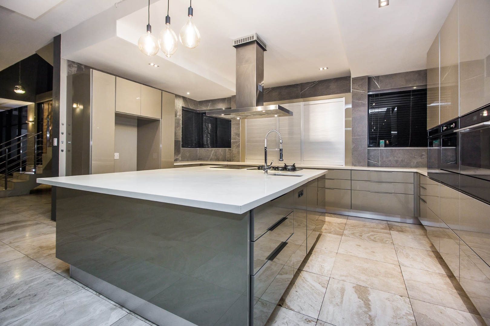 The modern kitchen is designed for both functionality and style, making meal preparation a delight.