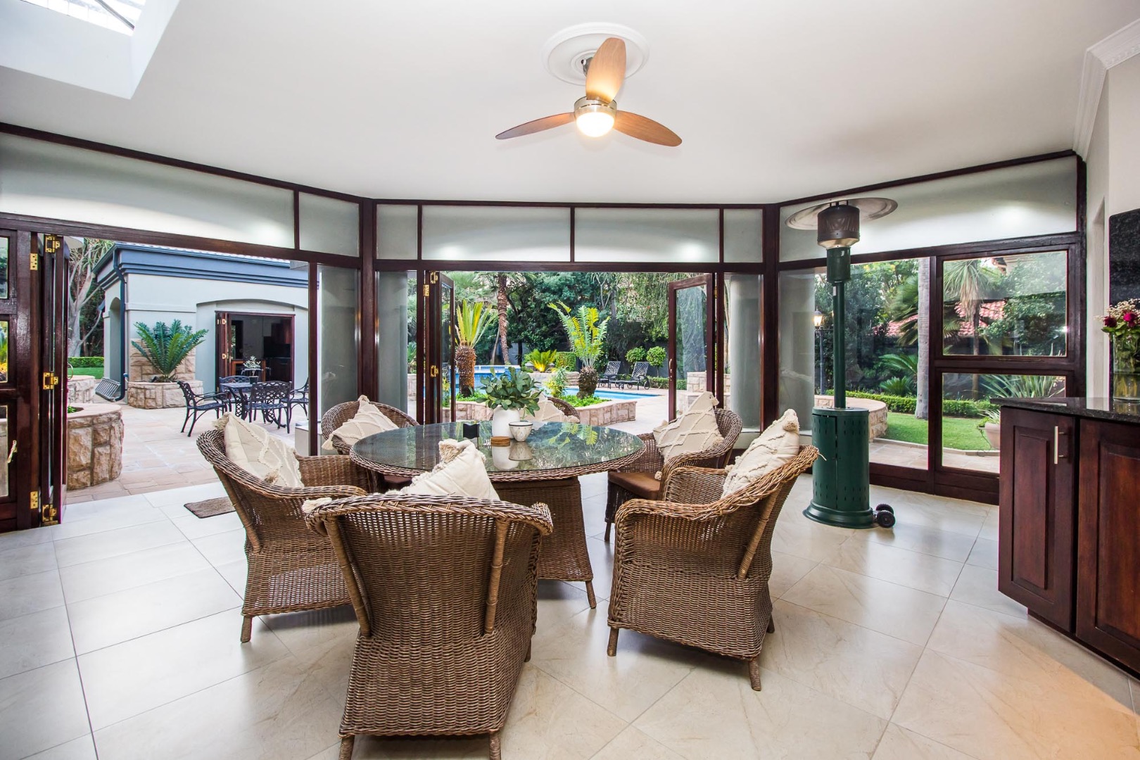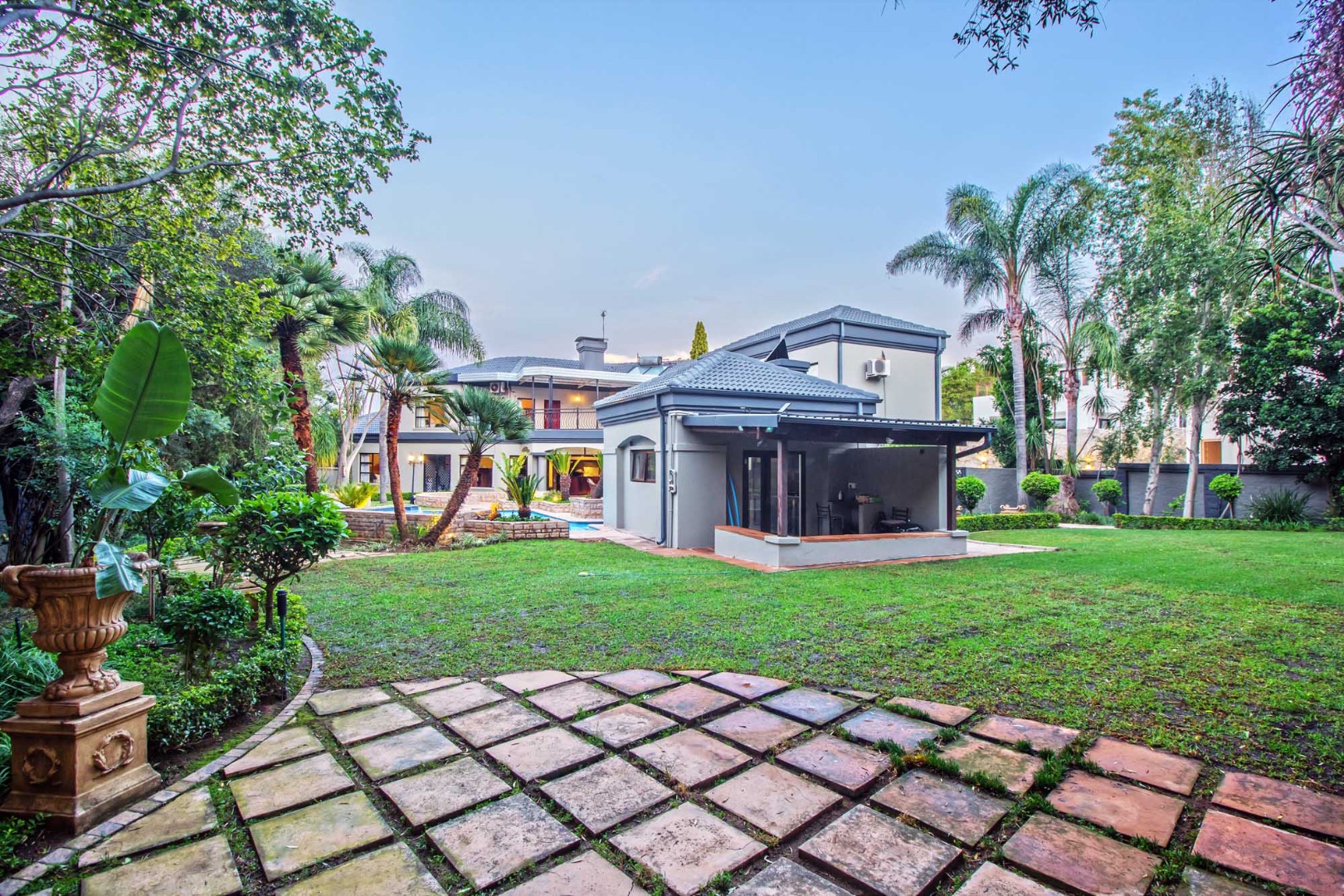 Includes ample entertainment options, spacious garden and extravagant pool with a boat and separate break facility making every day feel like a holiday. This retreat boast spacious and sunny bedrooms, exquisite bathroom and a 3 part gourmet kitchen enjoying practical space, a gas hob, breakfast nook, a separate laundry and scullery all fitted with caesar stone tops.