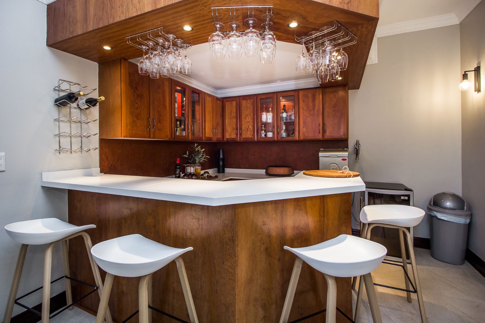 The ground floor welcomes by a cheerful and double volumed entrance hall leading towards the open plan living rooms linked to an easy flowing spacious kitchen and the covered and enclosed patio overlooking the sparkling pool and privat garden. The entertainment options include a built in gas barbecue at the patio, a dinks serving area at the second lounge, a guest toilet and a separate guest bedroom downstairs with an extra beautiful bathroom en-suite. The study downstairs are close to the entrance hall also interleaving towards the patio area.