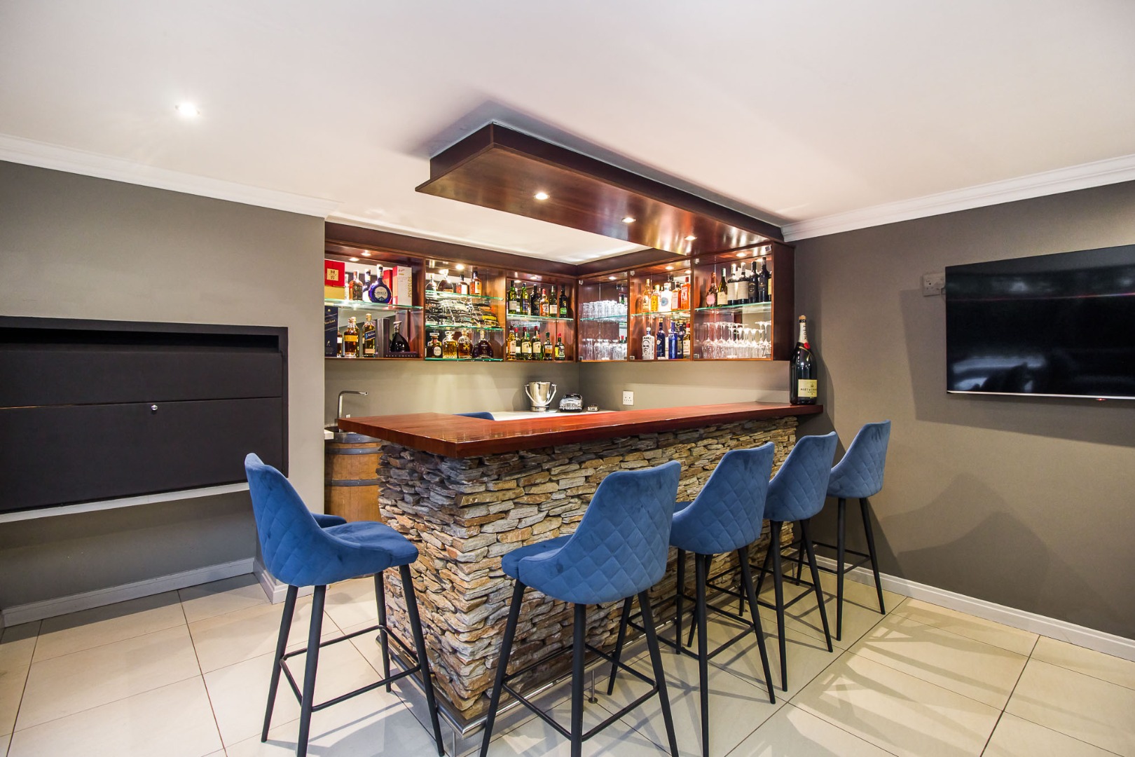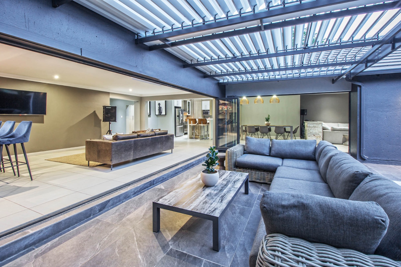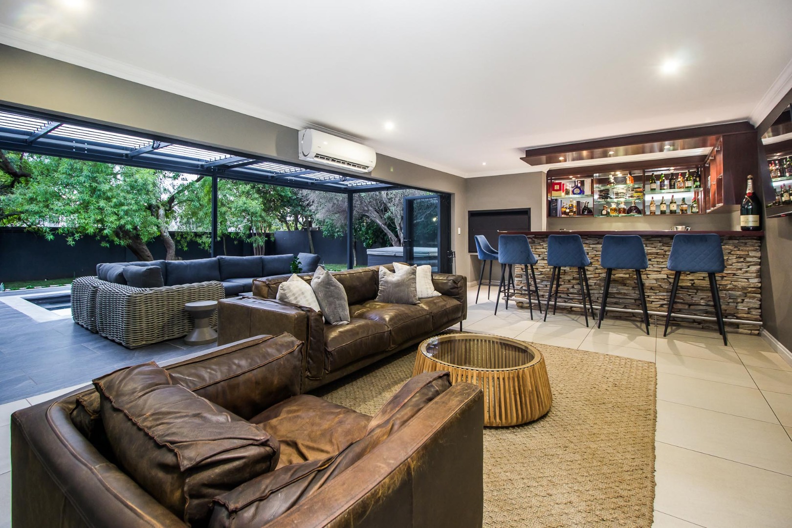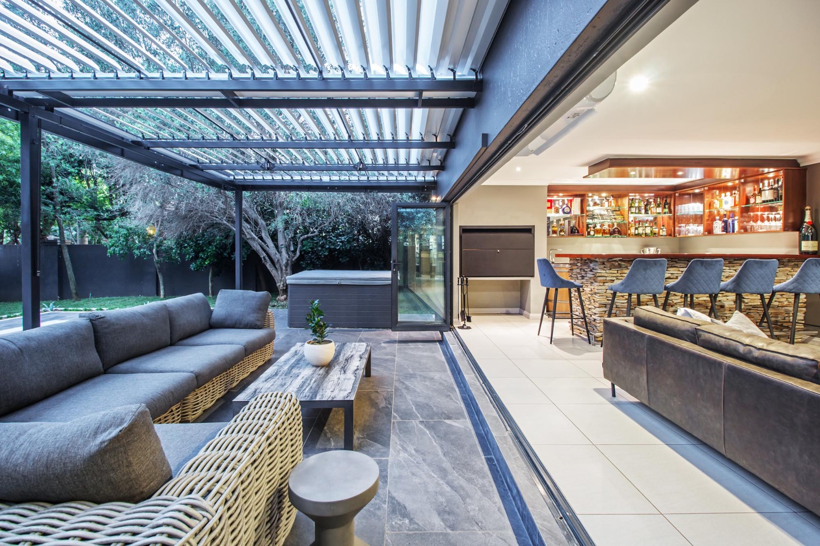 * Covered patio with integrated braai and outdoor bar