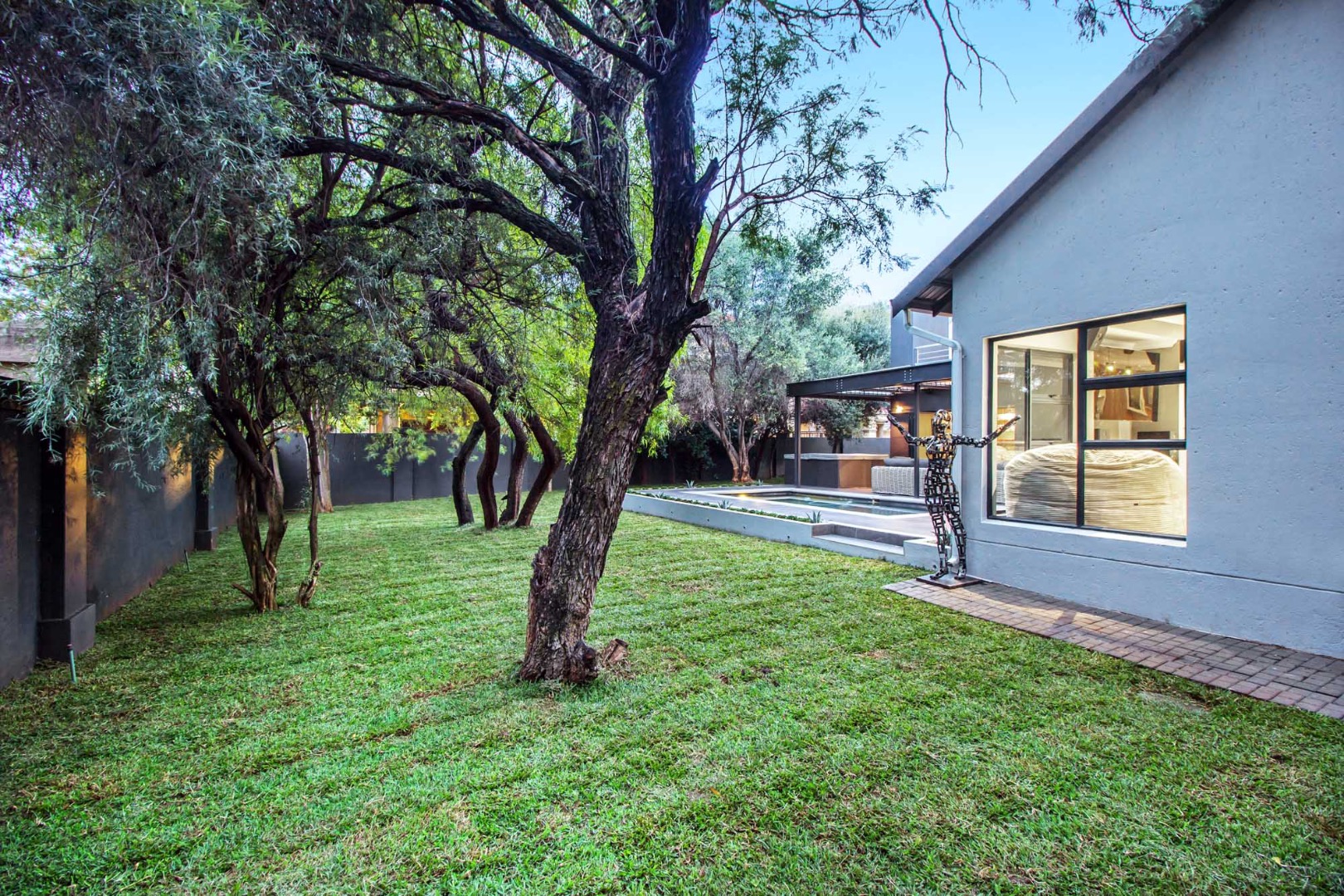 The true highlight of this property is its exceptional outdoor lifestyle offering. Entertain with ease on the covered patio with a built-in braai and stylish outdoor bar, overlooking a private swimming pool. Unwind in your own hot tub, surrounded by a meticulously maintained garden that creates a serene and private retreat—perfect for both quiet evenings and vibrant gatherings.