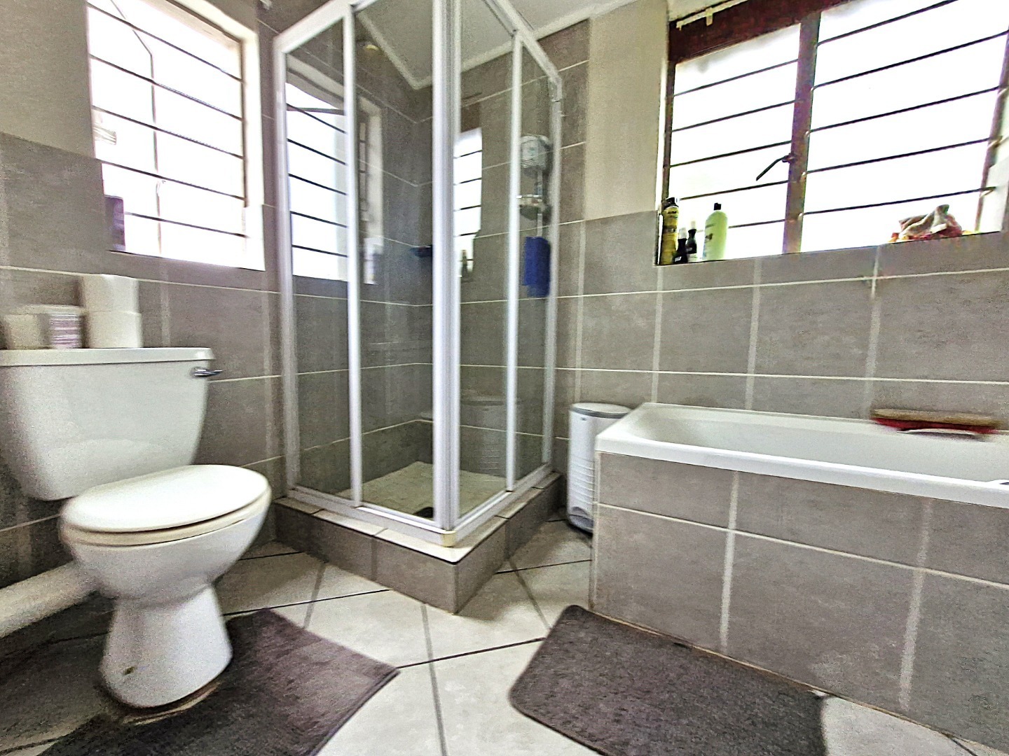 Key Features include: Double Garage: Ample space to park your vehicles, Three Bedrooms: Spacious and comfortable bedrooms, ideal for families or those seeking extra space. Two Bathrooms: A convenient guest toilet located on the ground floor, tucked neatly under the stairs. A full guest bathroom on the first floor, servicing two bedrooms. A master en-suite bathroom featuring a shower. Open-Plan Living: Enjoy a generously sized living area, perfect for entertaining and relaxation. Tiled Throughout: Easy-to-maintain tiled flooring throughout the entire home. Modern Amenities consist of: Pre-paid electricity for efficient energy management. Impact water meters for accurate water usage tracking. Fibre connection for high-speed internet access. A hybrid geyser for energy efficiency.