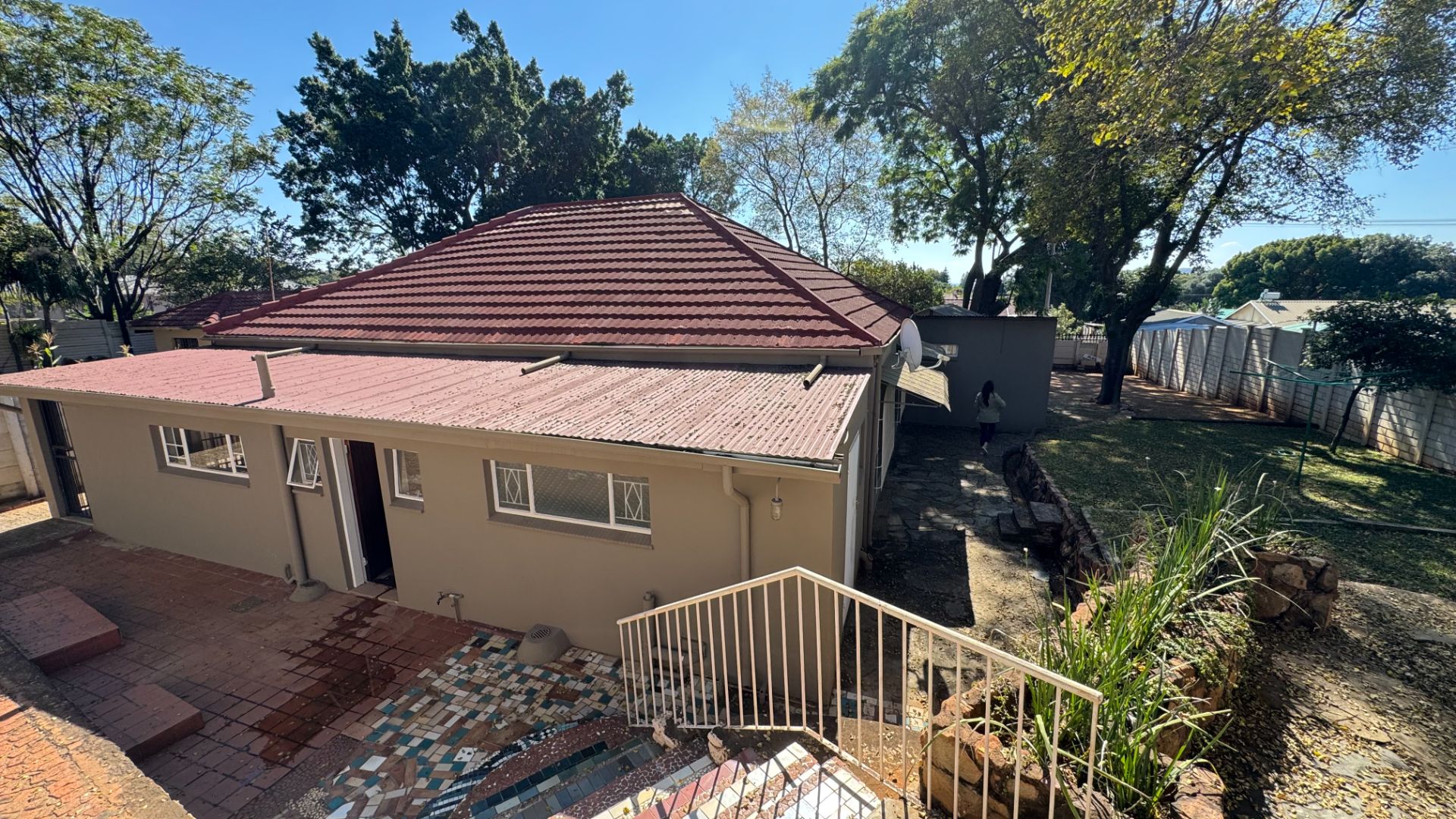 Discover this spacious 5-bedroom, 3-bathroom residence situated on a generous 1000 sqm erf in the suburban heart of Silverton, Pretoria. This property offers ample living space with a floor size of 260 sqm, presenting a solid foundation for a family home with significant potential for modernisation and personalisation. Upon arrival, the property immediately impresses with its extensive brick-paved yard, providing abundant parking for up to four vehicles and enhancing kerb appeal. Mature trees offer natural shade, complementing the secure concrete boundary wall and red-tiled roof. An inviting entrance hall leads into the home, which features a dedicated lounge and dining room, providing distinct areas for relaxation and entertaining. The kitchen, complete with a pantry, awaits your personal touch to transform it into a contemporary culinary space. While the wooden floors throughout the main living areas and bedrooms show signs of wear, they offer a charming base for restoration, promising warmth and character. The five bedrooms are well-proportioned, with two benefiting from private en-suite bathrooms, ensuring comfort and convenience. Built-in wardrobes in several rooms provide practical storage solutions. The bathrooms, including one with both a glass-enclosed shower and a bathtub, offer functional spaces, with some featuring modern grey tiling. Natural light floods the interiors through large windows, many fitted with security bars for peace of mind. Outdoor living is catered for with a private patio and a well-maintained garden, perfect for leisure. The property also includes staff quarters and a separate flatlet, offering versatile options for extended family or rental income. Security is enhanced with an access gate, burglar bars, and security gates. Fibre connectivity is available, ensuring modern communication needs are met. This property is pet-friendly and boasts a scenic view, making it an ideal setting for family life. Key Features: * 5 Bedrooms, 3 Bathrooms (2 En-suite) * 1 Lounge, 1 Dining Room, 1 Kitchen with Pantry * 4 Parking Spaces * 1000 sqm Erf, 260 sqm Floor Size * Patio, Garden, Staff Quarters, Flatlet * Fibre Ready, Pet-Friendly * Access Gate, Burglar Bars, Security Gate * Scenic View