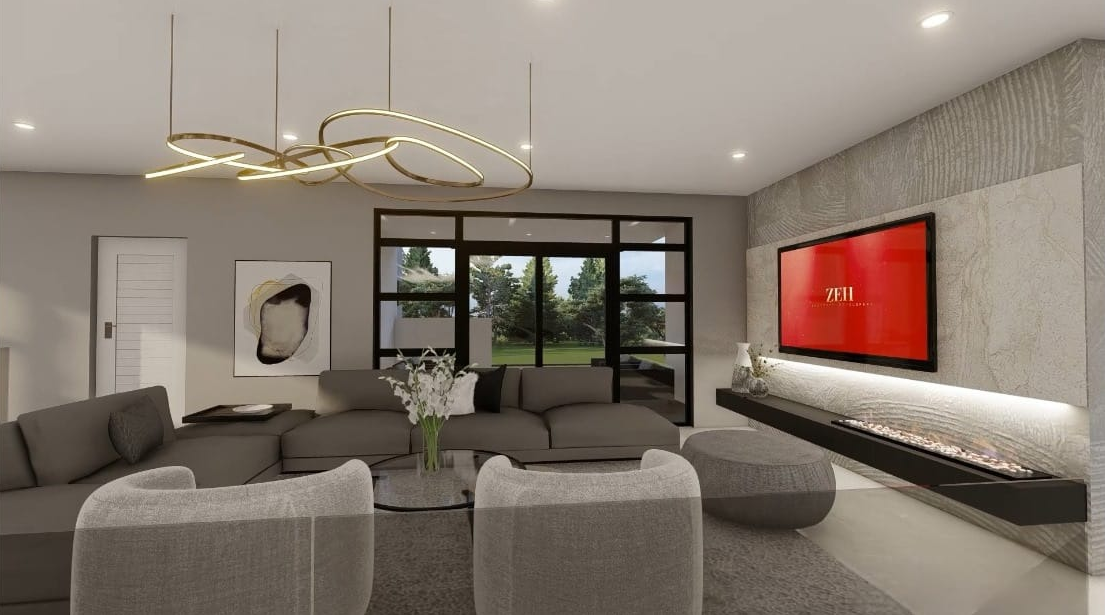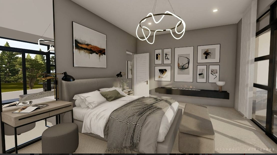 - Upstairs pyjama lounge with a fireplace, opening onto a spacious entertainment balcony