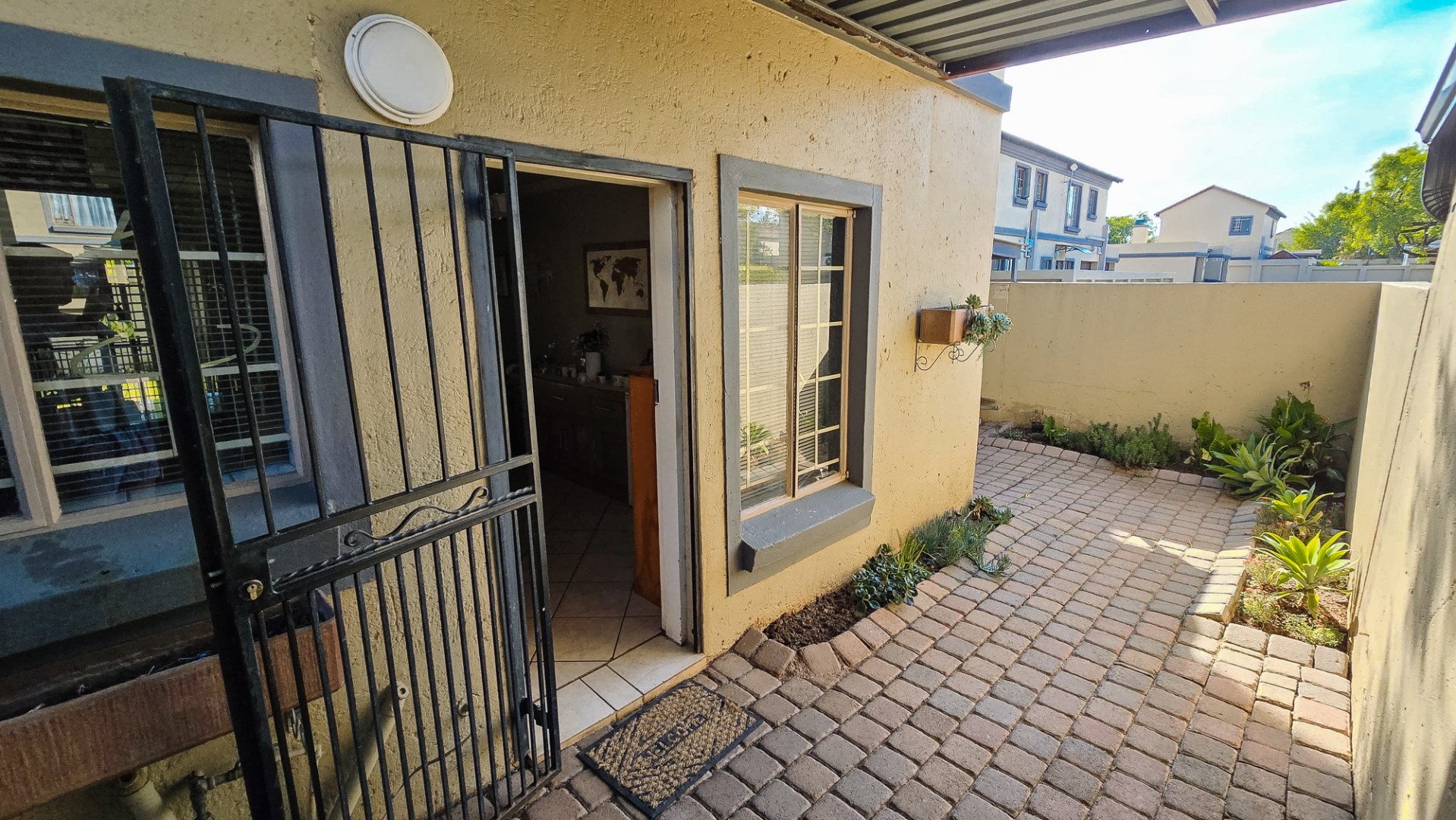 The home enjoys a unique position within the complex, with neighbouring units only on either side. The rear of the property is open, creating a wonderful sense of space and privacy, with no direct neighbours behind you. The boundary backs onto the Wonderboom Airport perimeter, which is secured with a security fence and monitored by 24-hour security patrols, providing exceptional peace of mind.