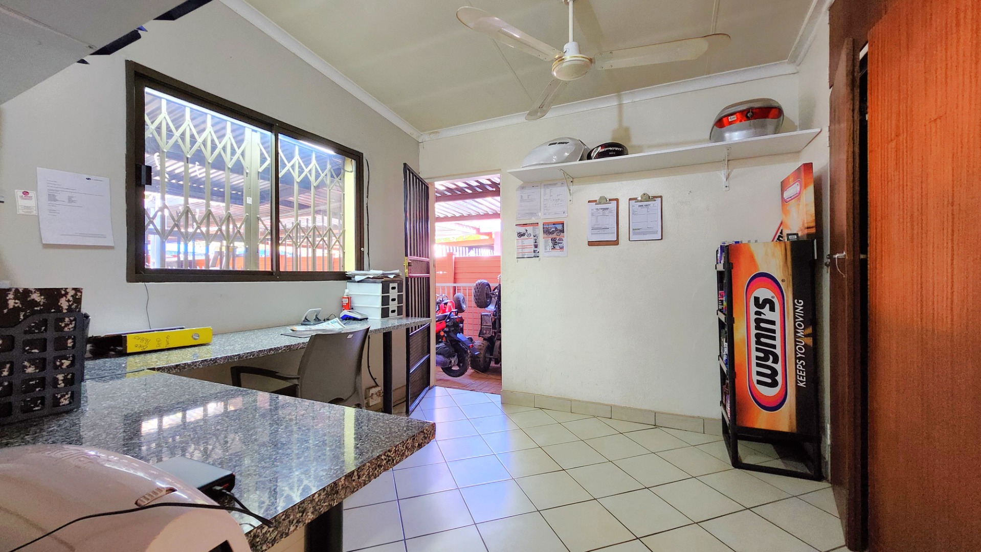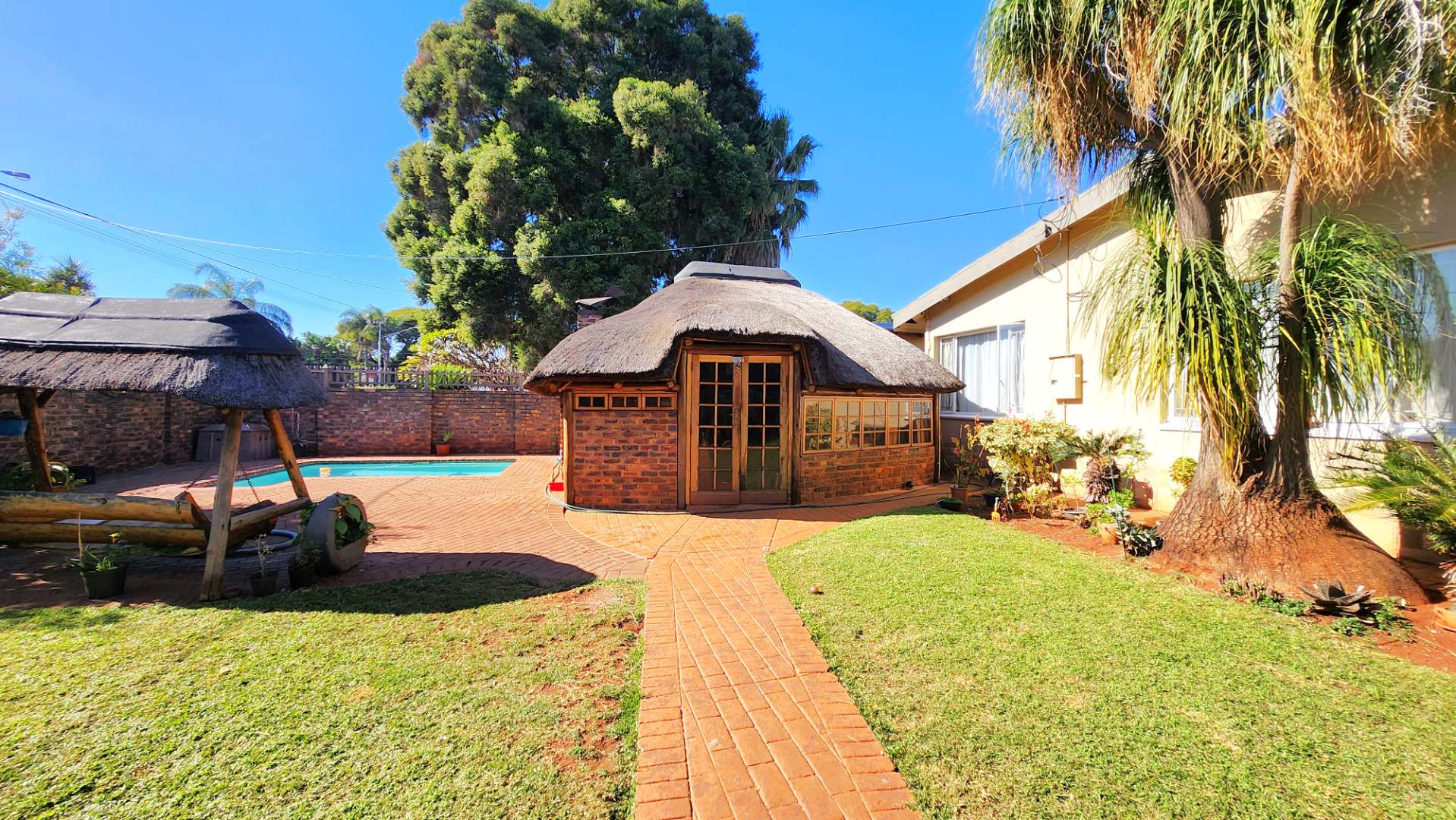 - Spacious 3-Bedroom Residence (with rental income potential): At the rear of the bike shop, a well-maintained 3-bedroom house offers 2 bathrooms (one en-suite), a refreshing swimming pool, a charming closed lapa with a bar, and a tranquil fish pond. This residential component currently generates a significant rental income of R15,000 per month, providing an immediate return on investment.