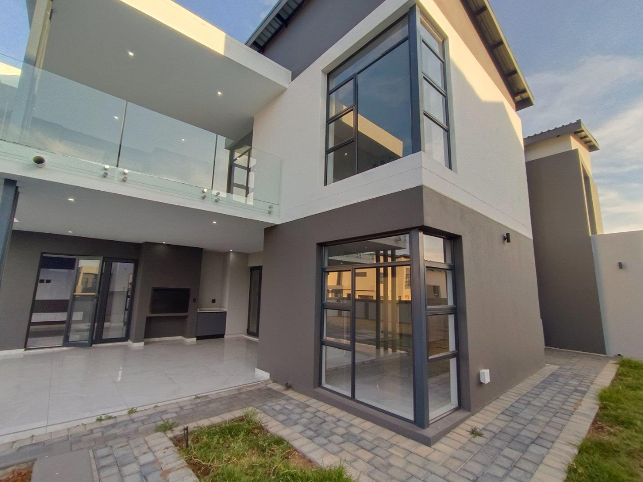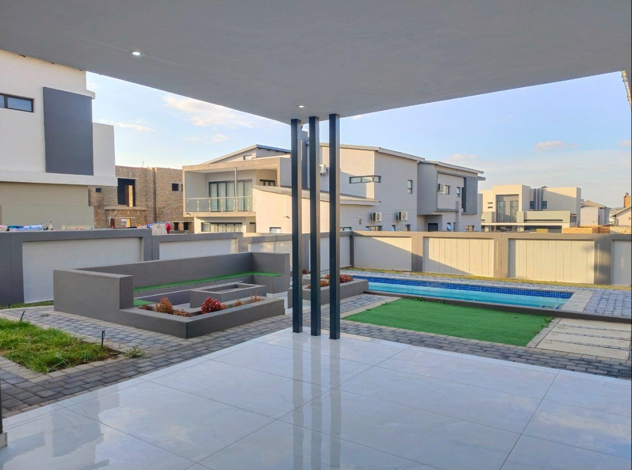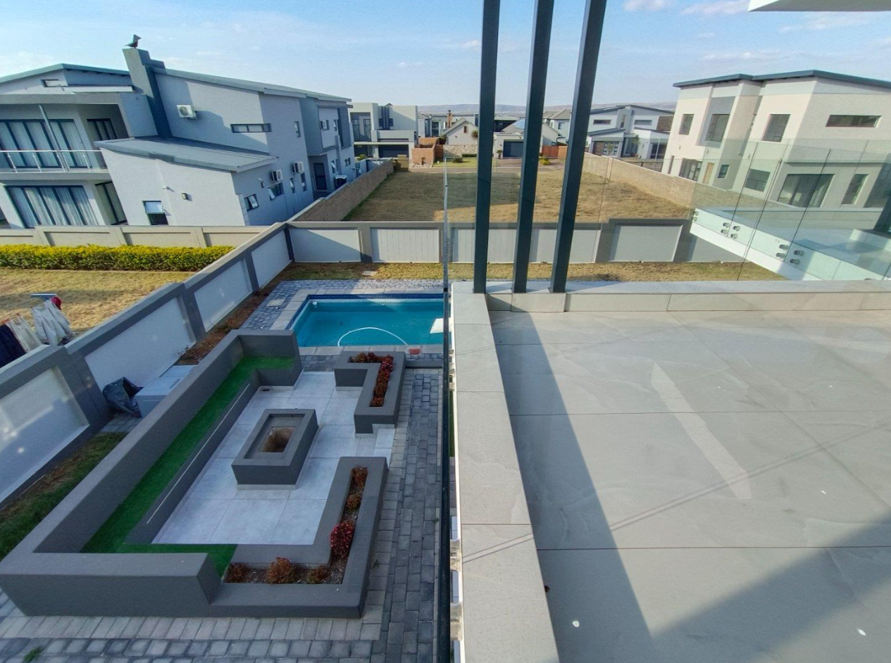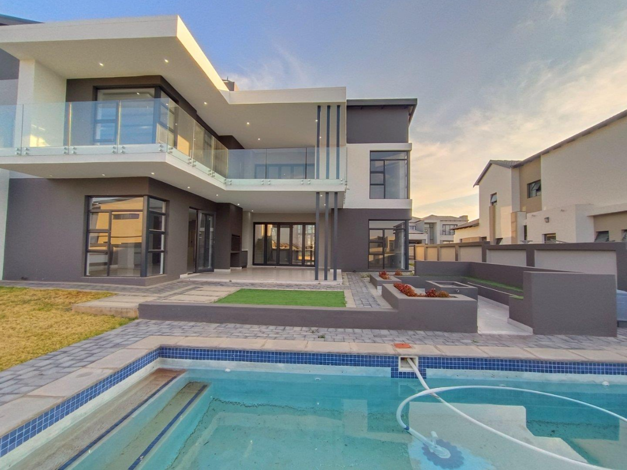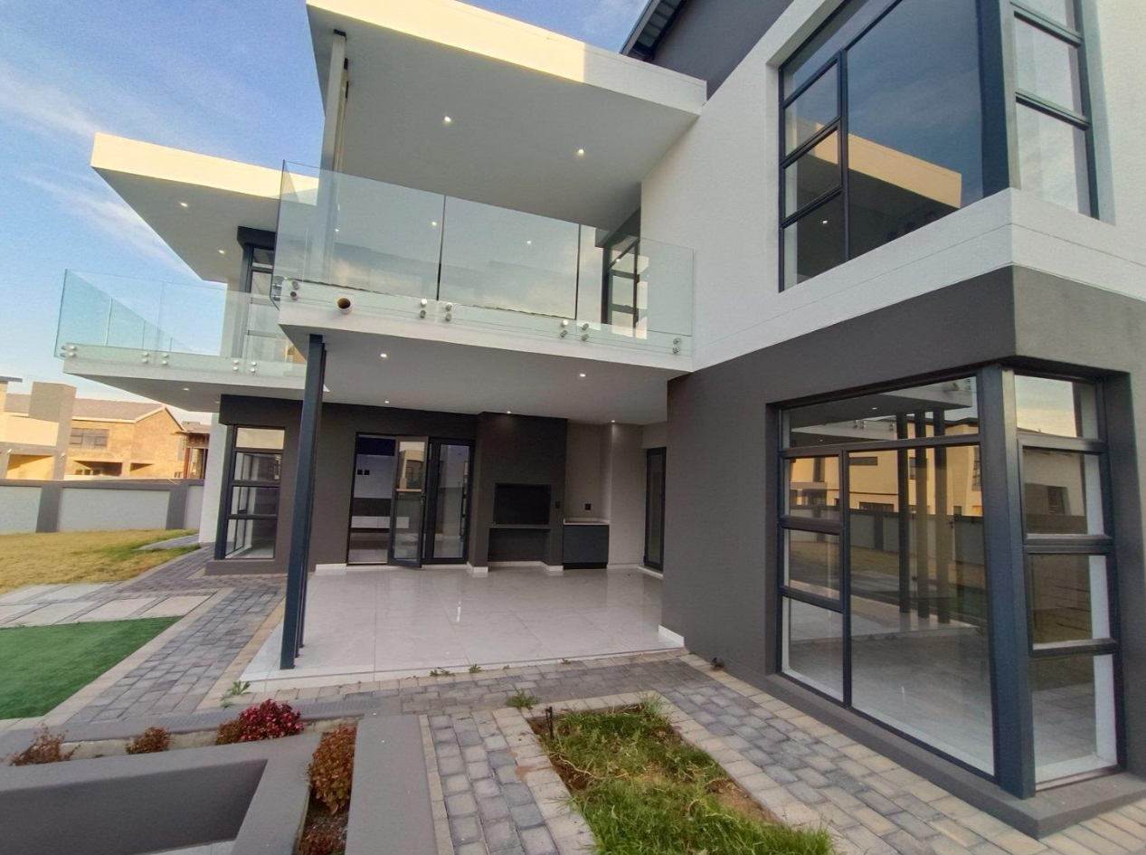 Discover contemporary luxury within the prestigious Six Fountains Residential Estate in Pretoria. This striking 5-bedroom, 5-bathroom residence boasts a modern architectural design with a sophisticated grey and white facade, large windows, and elegant glass balcony railings, creating an impressive kerb appeal. Spanning a generous 504 sqm on a 756 sqm erf, this home offers ample space for discerning families. The interior unfolds into expansive open-plan living areas, featuring two lounges and a dedicated dining room, perfect for both intimate gatherings and grand entertaining. The heart of the home is a sleek, modern kitchen, equipped with high-gloss cabinetry, a large island with integrated appliances, and polished tiled flooring throughout. Enhanced by special lighting, air conditioning, and a cozy fireplace, comfort and style are paramount. Accommodation includes five well-appointed bedrooms and five bathrooms, with three offering private en-suite facilities, alongside a convenient guest toilet. A dedicated study provides an ideal space for remote work or quiet contemplation, ensuring functionality for every lifestyle need. Outdoor amenities comprise a well-maintained garden, extensive paving, and a private driveway leading to three integrated garages, offering secure parking and storage. As part of an exclusive estate, residents benefit from 24-hour security, an access gate, and a clubhouse, fostering a secure and vibrant community atmosphere. Enjoy scenic views and seamless connectivity with fibre internet access. Key Features: * 5 Bedrooms, 5 Bathrooms (3 En-suite) * Modern Open-Plan Living Areas (2 Lounges, 1 Dining Room) * Sleek Kitchen with Integrated Appliances * Dedicated Study * 3 Garages and Paved Driveway * Air Conditioning and Fireplace * Estate Living with 24-Hour Security and Access Gate * Clubhouse Access * Fibre Connectivity * Scenic Views